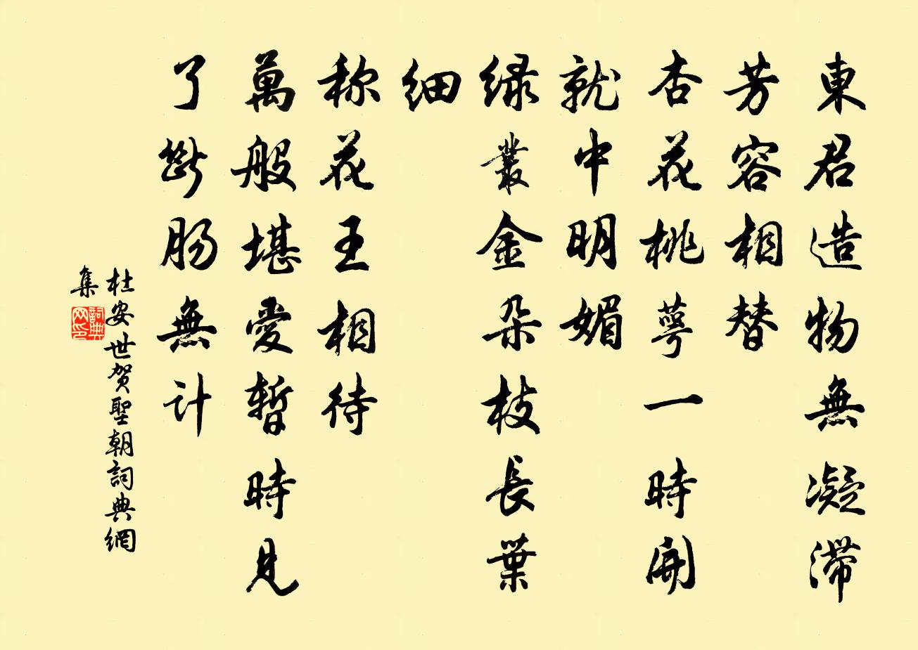 - 淡黃楊柳暗棲鴉。玉人和月摘梅花。
