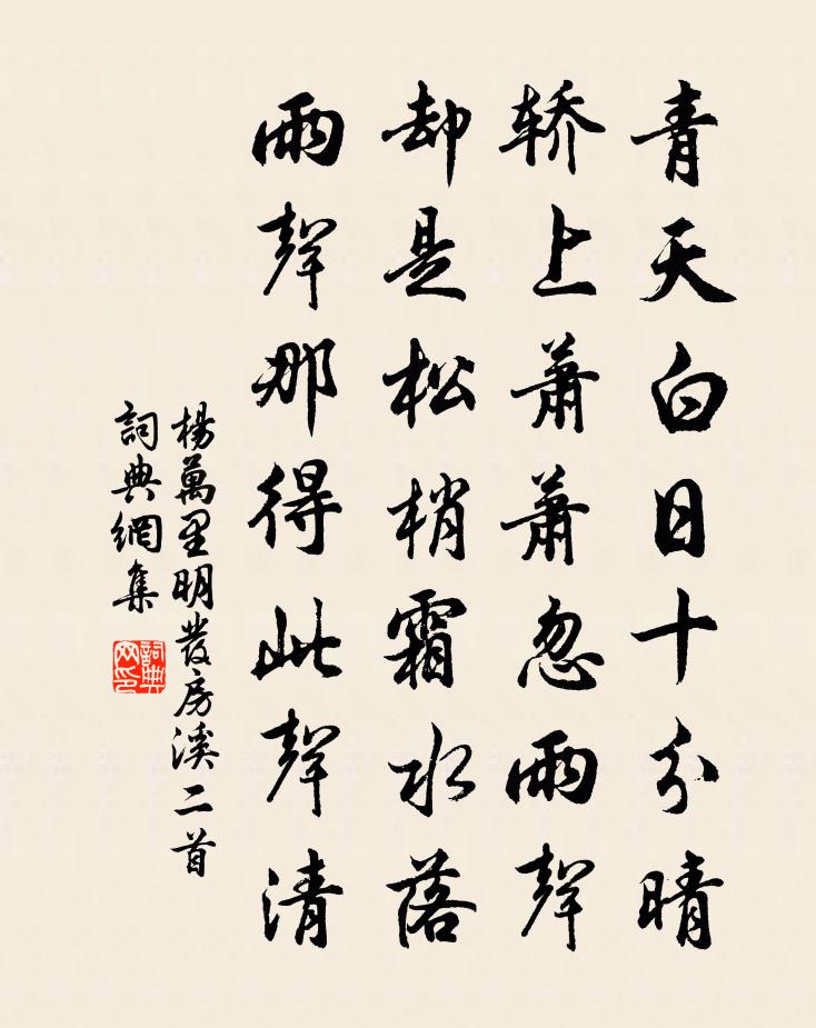**十分晴,轎上蕭蕭忽雨聲。卻是松梢霜水落,雨聲那得此聲清。