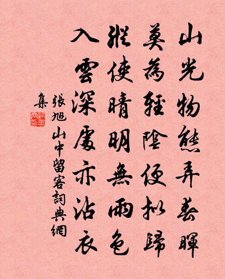 這首詩的字面意思便是上邊所說,其實可以有另一種理解。世界如此美好,天地萬物都展現著美好的姿態。但是不要因為一點挫折便覺得受挫,喪失信心。你看,就算是萬事如常,也會有看不見的矛盾會使你受傷。山中留客,不是在山中留,而是在人生中留;客,不是作者的朋友,而是在人生中遭受挫折的朋友們。