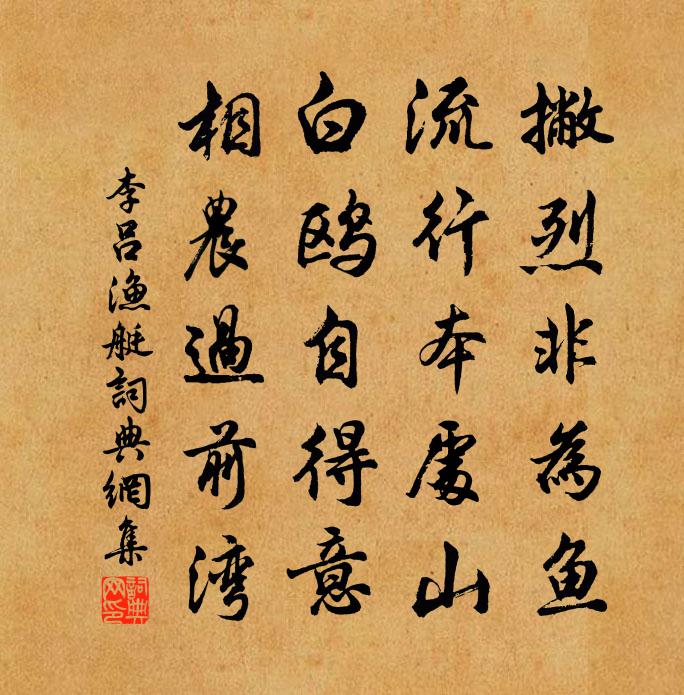 詩詞名句歷史字典書法欣賞書法字典國語詞典說文解字康熙字典古漢語字典標 題 作 者 詩 句 漁艇作者:李呂 朝代:宋代漁艇原文撇烈非為魚,流行本處山。白鷗自得意,相農過前灣。詩詞問答問:漁艇的作者是誰?答:李呂問:漁艇寫於哪個朝代?答:宋代李呂漁艇書法欣賞漁艇書法作品詩詞推薦寄湖州刁殿丞趙湘〔唐代〕白苹溪湛五亭寒,物象全宜謝守閒。秋盡棋聲過竹寺,雨余詩思落茶山。鳥依高樹和煙宿,人釣清流帶月還。池館詠史詩青冢胡曾〔唐代〕玉貌元期漢帝招,誰知西嫁怨天驕?至今青冢愁雲起,疑是佳人恨未銷。偈六十三首釋道寧〔宋代〕兔走烏飛,暗移時節。入夏早三旬,衲僧徹未徹。休尋向上關,莫問西來訣。健則松徑閒行,困則堂中便歇。恩光和胡應祥游石進韻陳文蔚〔宋代〕世間潢潦水,可嘆無根源。盈滿涸可待,驟雨空翻盆。鵝峰此邦鎮,秀潤草木繁。泄為石井泉,永與天地存。平湖臨江仙朱敦儒〔宋代〕信取虛空無一物,箇中著甚商量。風頭緊後白雲忙。風元無去住,雲自沒行藏。莫聽古人閒語話,終歸失馬亡羊。荊門別張天覺魏泰〔宋代〕秋風十驛望台星,想見冰壺照座清。零雨已回公旦駕,挽須聊聽野王箏。三朝元老公方壯,四海蒼生耳已傾。白髮和季弟韻二十首劉克莊〔宋代〕倘來事已付茫茫,朝野皆知故態狂。視草偶曾稱學士,看花未了失台郎。賈生作賦先揚馬,屈子分騷與景唐。絕筆梅花二首楊萬里〔宋代〕東風微破野梅心,著骨清香已不禁。綠剌一尖雙菡子,錯書小字帶懸針。道中病瘍久不飲酒至魚梁小酌因賦長句陸游〔宋代〕我行蒲城道,小疾屏杯酌。癬疥何足言,亦復妨作樂。此身會當壞,百歲均電雹。胡為過自惜,憊臥困鍼烙?未嘗杏花陸游〔宋代〕江城開歲風雨頻,閉合不出俄經旬;忽逢國艷帶卯酒,坐覺天地無餘春。芳敷正當晨露重,盛麗欲擅年華新。數株校獵義成喜逢大雪率題九韻以示群官李隆基〔唐代〕弧矢威天下,旌旗游近縣。一面施鳥羅,三驅教人戰。暮雲成積雪,曉色開行殿。皓然原隰同,不覺林野變。北風雪中雪坡十憶姚勉〔宋代〕近郊勝處小雲居,一水如龍湊佛廬。長記釣蓑披雪去,磚爐溫酒煮溪魚。長平箭頭歌李賀〔唐代〕漆灰骨末丹水沙,淒淒古血生銅花。白翎金竿雨中盡,直餘三脊殘狼牙。我尋平原乘兩馬,驛東石田蒿塢下。風長詠史下裴頠陳普〔宋代〕惠帝君臣一樣愚,九龍翁仲淚如珠。眼前喪亂渾如岡,崇有何當卻破無。鎮西/小鎮西犯蔡伸〔宋代〕秋風吹暗雨,重衾寒透。傷心聽、曉鍾殘漏。凝情久。記紅窗夜雪,促膝圍爐,交杯勸酒。如今頓孤歡偶。念別後隱君宅楊維楨〔元代〕隱君宅中區,心游入天境。酌空引窊石,汲深出寒井。檐花度吹香,池葉漏天影。隱几鳴虛琴,悠然有真省。送林城山歸上饒蒲壽宬〔宋代〕平生喜誦城山句,一誦千回起狂慕。夢魂夜夜峨眉巔,峨眉只在家西住。照人樓蜃噓青紅,落筆天昆走雲霧。冥搜公邁何遄曾豐〔宋代〕公之南矣,潭人是懷,洪人是留。議奪朱幡,亟哉還休。御者既靷,錢者既挽。俄馳頃驅,僄其未返。洪人曰{左秋日經潼關感寓武元衡〔唐代〕昔年曾逐漢征東,三授兵符百戰中。力保山河嗟下世,秋風牢落故營空。淳佑七年丁未十一月朔蔡久自江東提刑歸抵家楊世奕〔宋代〕富貴寧如節義香,也教青史播余芳。四年諫省歸何暮,七十新參老欲強。孺子早聞辭爵位,君謨今又去班行。軺車名句推薦相恨不如潮有信,相思始覺海非深。白居易《浪淘沙·借問江潮與海水》 海榴花發應相笑,無酒淵明亦獨醒貝瓊《已酉端午》 能令暫開霽,過是吾無求。韓愈《洞庭湖阻風贈張十一署·時自陽山徙掾江陵》 三過平山堂下,半生彈指聲中。蘇軾《西江月·平山堂》 理無常是,事無常非。列子及其弟子《列子·說符》 待浮花、浪蕊都盡,伴君幽獨。蘇軾《賀新郎·夏景》 一日不見,如三月兮。佚名《子衿》 白酒新熟山中歸,黃雞啄黍秋正肥。李白《南陵別兒童入京》 欲加之罪,其無辭乎?左丘明《左傳·僖公·僖公十年》 立業無論大小,總要此身做得來。王永彬《圍爐夜話·第三九則》