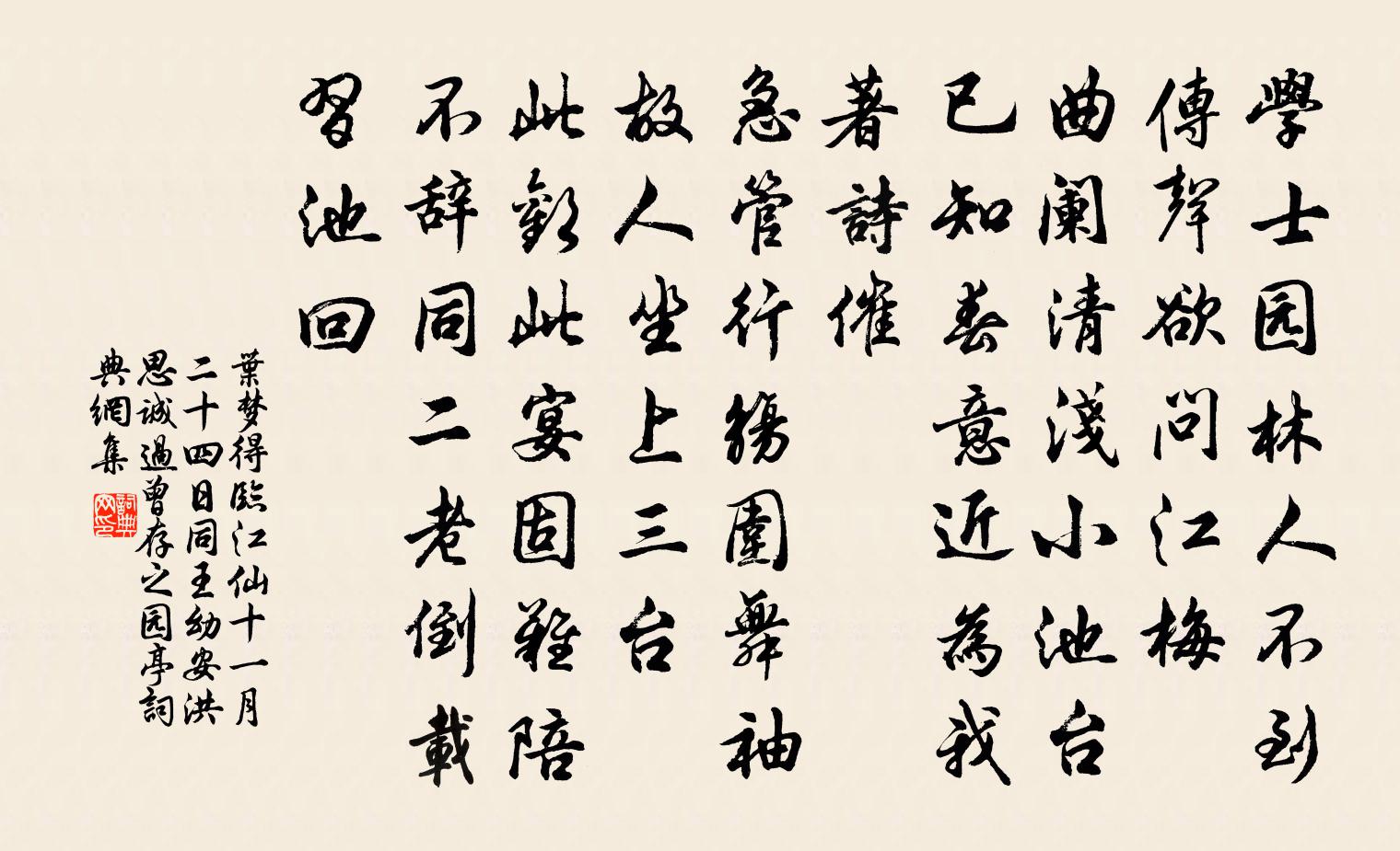 學士園林人不到,傳聲欲問江梅。曲闌清淺小池台。