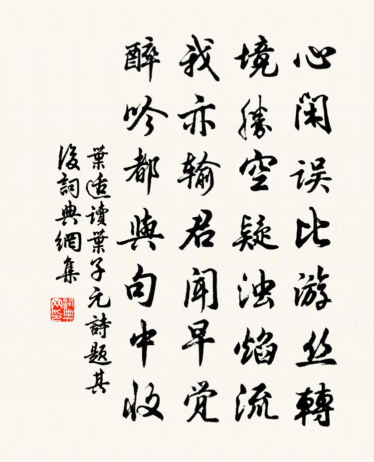 詩詞名句歷史字典書法欣賞書法字典國語詞典說文解字康熙字典古漢語字典標 題 作 者 詩 句 讀葉子元詩題其後作者:葉適 朝代:宋代讀葉子元詩題其後原文心閒誤比遊絲轉,境勝空疑濁焰流。我亦輸君聞早覺,醉吟都與句中收。詩詞問答問:讀葉子元詩題其後的作者是誰?答:葉適問:讀葉子元詩題其後寫於哪個朝代?答:宋代葉適讀葉子元詩題其後書法欣賞讀葉子元詩題其後書法作品詩詞推薦燕台歌司馬光〔宋代〕萬古蒼茫空盛衰,燕台賢客姓名誰。君看碣石岩中草,寧似昭王擁篲時。黃金散盡余基沒,易水蕭條烽火飛。自入新安境中鴨腳千樹羅生道傍秋實離離低拂喻良能〔宋代〕離離秋實壓枝柔,帶露含煙爛不收。須信新安生鴨腳,大勝霅水熟雞頭。鷓鴣天徐俯〔宋代〕綠水名園不是村。淡妝濃笑兩生春。笛中已自多愁怨,雨里因誰有淚痕。香旖旎,酒氤氳。多情生怕落紛紛。舊來太宗皇帝輓歌王禹偁〔宋代〕卜世知無極,上仙安可尋。祝堯違眾望,傳啟合天心。陵柏蕭騷韻,階茅寂寞陰。何人開殿合,塵暗九弦琴。邊城春望寇準〔宋代〕獨望原西路,離襟倍黯然。青山遮故國,絕塞度新年。風聚沙迷岸,煙開燒滿川。歸心正無際,驃騎莫留連。雜曲歌辭少年行韓翃〔唐代〕千點斕斒噴玉驄,青絲結尾繡纏駿。鳴鞭晚出章台路,葉葉春依楊柳風。和馬大夫闢佛五首胡宏〔宋代〕諸子隨流本既分,西天更有一般僧。高談性命稱仁者,支遁悠悠莫可憑。齊天樂·秋聲館賦秋聲厲鶚〔清代〕簟淒燈暗眠還起,清商幾處催發?碎竹虛廊,枯蓮淺渚,不辨聲來何葉?桐飆又接。盡吹入潘郎,一簪愁發。已是登樓張栻〔宋代〕風雨經旬只閉門,朝來倚檻已春深。不知花片飛多少,但覺江城滿綠陰。句朱顯之〔宋代〕空尋晉客維舟岸,不見秦朝避世人。晚歸府白居易〔唐代〕晚從履道來歸府,街路雖長尹不嫌。馬上涼於床上坐,綠槐風透紫蕉衫。六月八日雷雨大作喜呈張仲季孟晁公溯〔宋代〕雲霧相纏暝不開,披衣沖雨獨登台。風號曠野吹江立,雷擘蒼山震地來。從使郊原昏白晝,剩教草木洗黃埃。夜涼蔬圃絕句陸游〔宋代〕嬾隨年少愛花狂,且伴群兒鬥草忙。行遍山南山北路,歸時新月浸橫塘。僑居二首宋祁〔宋代〕抱病苦幽憂,都城睏倦游。身拋禿翁版,言入稗家流。世路風波惡,天涯日月遒。危心正無泊,持底喻窮愁。浪淘沙·丹陽浮玉亭席上作陸游〔宋代〕綠樹暗長亭,幾把離尊。陽關常恨不堪聞。何況今朝秋色里,身是行人。清淚浥羅巾,各自消魂。一江離恨恰平分題陸羽祠堂兼寄李援援有詩殊佳二首張耒〔宋代〕陸子不可招,寥寥風月魂。空堂掩遺像,幸此配老禪。舉世人澆薄,雲誰知子賢。竟陵樵牧地,陳跡豈復存。我欲示長安君王安石〔宋代〕少年離別意非輕,老去相逢亦愴情。草草杯盤供笑語,昏昏燈火話平生。自憐湖海三年隔,又作塵沙萬里行。欲問三鳥詠之一提壺引賀鑄〔宋代〕綠野帶江春漠漠,露濕花蔫朝暮薄。年芳婉娩欲辭人,啼鳥殷勤勸行樂。提壺真起予,十千美酒當剩沽。金龜寶貂句趙蕃〔宋代〕青雲道遠龍媒老,白雪詞高鬼膽寒。次韻玉汝弟乞致仕不允韓維〔宋代〕人生大節在行藏,七十歸休有舊章。紅旆碧幢雖帝寵,紫嵩清潁是吾鄉。老依蓮社心沖寞,夢繞榆關路杳茫。何日名句推薦泉眼無聲惜細流,樹陰照水愛晴柔楊萬里《小池》 知者不博,博者不知。老子《老子·德經·第八十一章》 一片春愁待酒澆。江上舟搖,樓上簾招。蔣捷《一剪梅·舟過吳江》 春風依舊。著意隨堤柳。趙令畤《清平樂·春風依舊》 清江一曲抱村流,長夏江村事事幽。杜甫《江村》 杯酒相延,今夕不應慳。陳著《江城子·中秋早雨晚晴》 擬借寒潭垂釣,又恐鷗鳥相猜,不肯傍青綸。蘇舜欽《水調歌頭·滄浪亭》 行路難,不在水,不在山,只在人情反覆間。白居易《太行路》 先到為君,後到為臣。佚名《增廣賢文·上集》 時人不識農家苦,將謂田中谷自生。顏仁郁《農家》