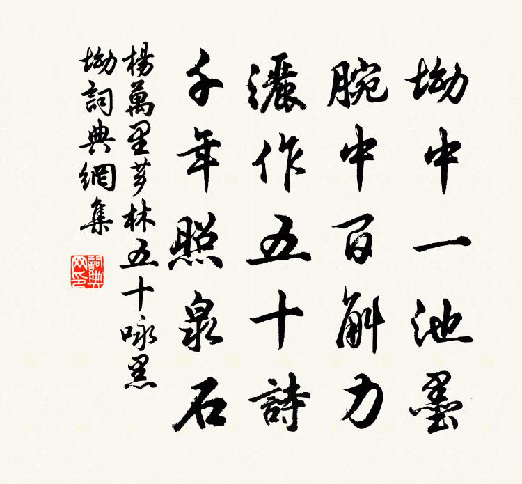 坳中一池墨,腕中百斛力。灑作五十詩,千年照泉石。