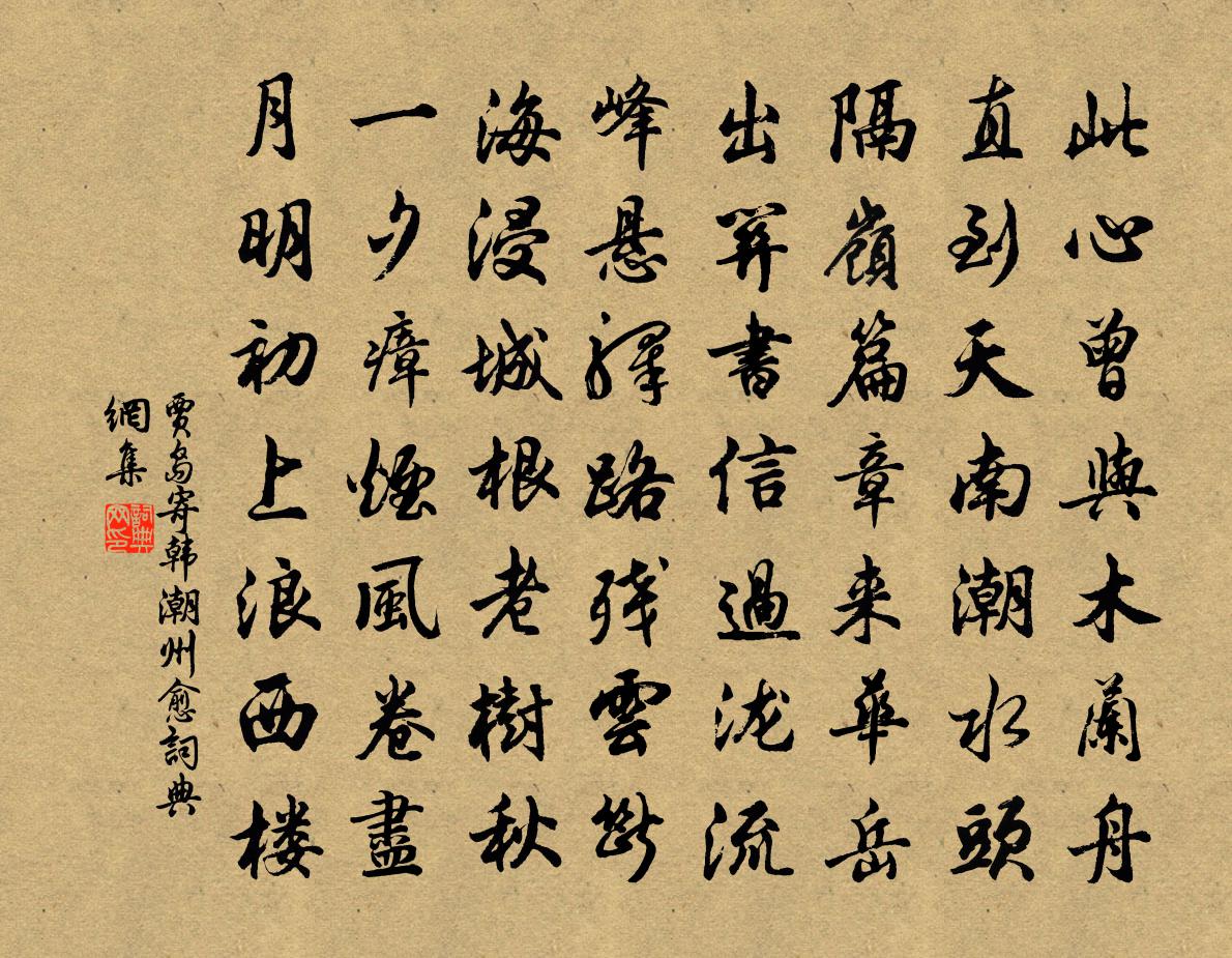 此詩首聯寫意,次聯寫實,三聯寫懸想,尾聯寫祝福,而通篇又以“此心”二字為契機,抒寫了真誠的友情。八句詩直如清澄的泉水,字字句句皆從丹田流出。詩的語言酷似韓愈《左遷至藍關示侄孫湘》一詩的和詩,真是“同心之言,其臭如蘭”。
