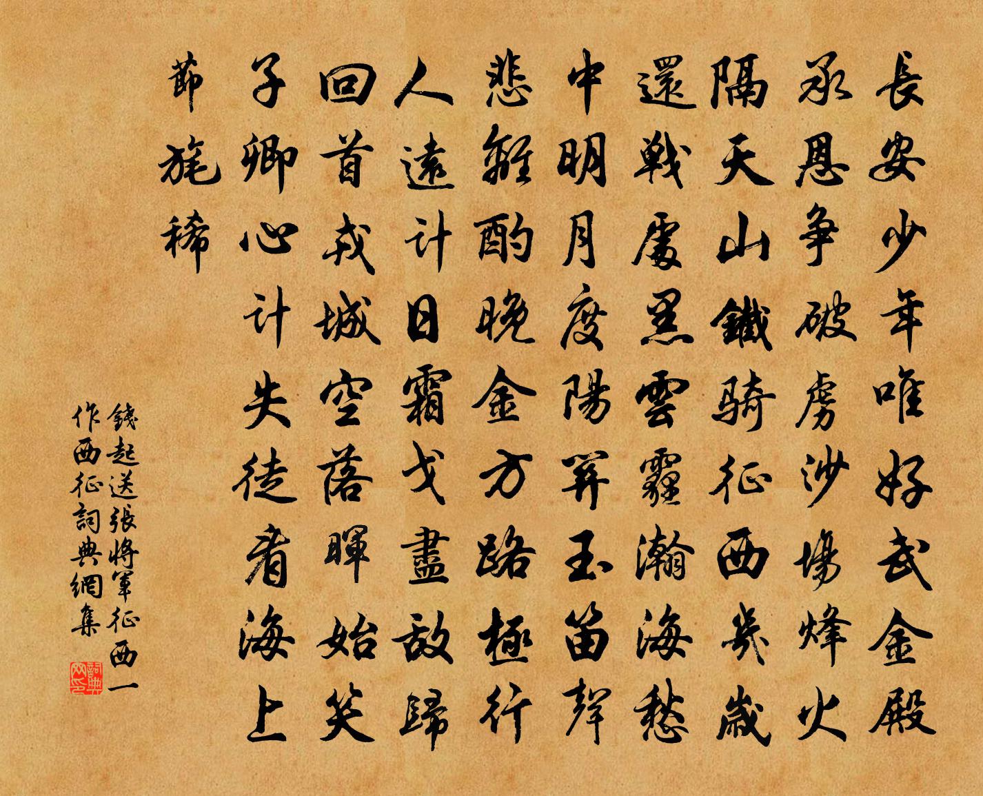 長安少年唯好武,金殿承恩爭破虜。沙場烽火隔天山,鐵騎征西幾歲還。