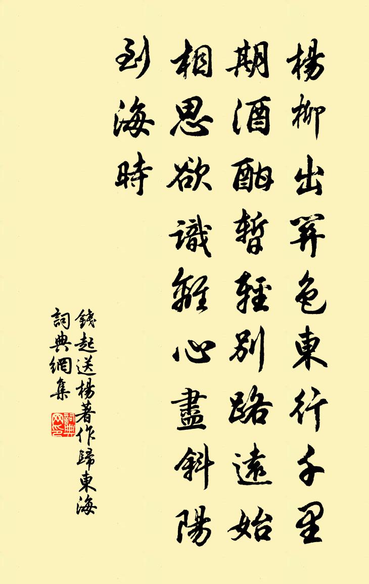 錢起送楊著作歸東海書法欣賞