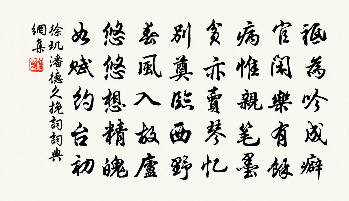 詩詞名句歷史字典書法欣賞書法字典國語詞典說文解字康熙字典古漢語字典標 題 作 者 詩 句 潘德久輓詞作者:徐璣 朝代:宋代潘德久輓詞原文祗為吟成癖,官閒樂有餘。病惟親筆墨,貧亦賣琴憶。別奠臨西野,春風入故廬。悠悠想精魄,如賦約台初。詩詞問答問:潘德久輓詞的作者是誰?答:徐璣問:潘德久輓詞寫於哪個朝代?答:宋代徐璣潘德久輓詞書法欣賞潘德久輓詞書法作品詩詞推薦傑侄所居之前舊無竹二月中忽出筀筍一根特立錢時〔宋代〕舊聞四月筀,不聞二月萌。籜龍忽當門,頭角何崢嶸。朅來此地荒穢耳,遠隔長林不相倚。群稚猶埋糞壤中,挺然范蜀公輓詩李廌〔宋代〕嗣皇思故老,趣詔侍筵經。駟馬空頻駕,高鴻本自冥。蒼生雖絕望,盛德愈流馨。出處俱全節,輝光並日星。山居雜詩九十首曹勛〔宋代〕畫工作江梅,粉檜良自誇。吾儕暈澹墨,一枝才數花。風情意自足,橫斜不可加。須知自古來,畫家須詩家。寄華山司空侍郎徐夤〔唐代〕山掌林中第一人,鶴書時或問眠雲。莫言疏野全無事,明月清風肯放君。偈頌一百零四首釋紹曇〔宋代〕傳破缽盂,連累周家女。無地著渾身空惆悵,叢林難免無根謗。狄武襄楊維楨〔元代〕賓州海月光團團,銀花火樹燒爛班。將軍如內客未敢,捷書已■崑崙關。當時諫官疑武士,豈知辨賊遽如此?於乎已亥雜詩 219龔自珍〔清代〕何肉周妻業並深,台宗古轍幸窺尋。偷閒頗異凡夫法,流水池塘一觀心。次韻和王尚書答贈宣城花木瓜十韻梅堯臣〔宋代〕百菓各甘酸,或由人所植。木瓜聞衛詩,贈好非玉色。投此瓊玖報,蓋重車馬飾。貴賤今既殊,凌紙字翕赩。一一憶王孫程垓〔宋代〕蕭蕭梅雨斷人行。門掩殘春綠蔭生。翠被寒燈枕自橫。夢初驚。窗外啼鵑催五更。題張敬仲寒岩瀑泉魏慶芝〔宋代〕朱弦莫余和,落指空琅然。天風遠送將,去作碧岩泉。送李明甫召除奉常簿陳棣〔宋代〕壑主臨軒達四聰,皎如麗日明高穹。傾葵發蔀燭幽隱,熙然萬物還春風。鼎新百度躋時雍,西垣東省羅鵷鴻。鋒車立秋日令狐楚〔唐代〕平日本多恨,新秋偏易悲。燕詞如惜別,柳意已呈衰。事國終無補,還家未有期。心中舊氣味,苦校去年時。澄虛觀玉皇閣次韻陳深〔宋代〕巋然高閣鎮吳州,妙手應煩玉斧修。萬疊紅雲凝實座,一輪白日抱瑈樓。濛濛灝氣疑浮蜃,炯炯神光遠射牛。終待送族侄赴任(一作之郡)錢起〔唐代〕林下不成興,仲容微祿牽。客程千里遠,別念一帆懸。欲嘆卑棲去,其如勝趣偏。雲山深郡郭,花木淨潮田。坐嘯雲莊耕者李流謙〔宋代〕莘野樂堯舜,谷口豈真卿。自是不可掩,區區非近名。歸路過南溪橋二首楊萬里〔宋代〕霜風一動嶺雲開,雲外樵歌暮更哀。童子隔溪呼伴侶,並驅水牯過溪來。梁父吟張耒〔宋代〕豪俊昔未遇,白日無光輝。隆中臥龍客,長嘯視群兒。九州英雄爭著鞭,黃星午夜照中原。君看慷慨有心者,乃是軍山張顯〔宋代〕亂石如群羊,合沓千里奔。軍山幾當前,盤踞作虎蹲。巨鎮壓坤維,層巔白雲屯。下瞰大溪流,三尺清不渾。舟人觀雁湖經行留題李壁〔宋代〕溪作玉膏色,洞如天琢成。倩誰呼白鹿,將我上瑤京。題練省元壁華岳〔宋代〕腳債嗟猶欠,心朋喜偶逢。溪聲含客怒,山色為誰濃。古樹晴搖蓋,殘蟬晚帶鍾。莫辭一樽酒,明日是吳儂。名句推薦秋色漸將晚,霜信報黃花。葉夢得《水調歌頭·秋色漸將晚》 今宵絕勝無人共,臥看星河盡意明。陳與義《雨晴·天缺西南江面清》 對酒捲簾邀明月,風露透窗紗。蘇軾《少年游·潤州作》 默而識之,學而不厭,誨人不倦,何有於我哉!孔子弟子《論語·述而篇》 琴里知聞唯淥水,茶中故舊是蒙山。白居易《琴茶》 海畔尖山似劍鋩,秋來處處割愁腸。柳宗元《與浩初上人同看山寄京華親故》 衣懶換,酒難賒。可憐此夕看梅花。吳文英《思佳客·癸卯除夜》 功遂身退,天之道老子《老子·道經·第九章》 即從巴峽穿巫峽,便下襄陽向洛陽。杜甫《聞官軍收河南河北》 十年一覺揚州夢,贏得青樓薄倖名。杜牧《遣懷》