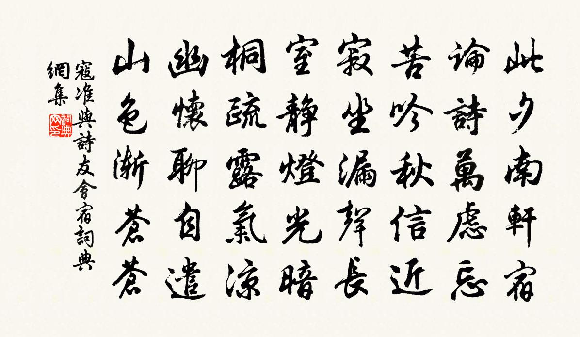 此夕南軒宿,論詩萬慮忘。苦吟秋信近,寂坐漏聲長。