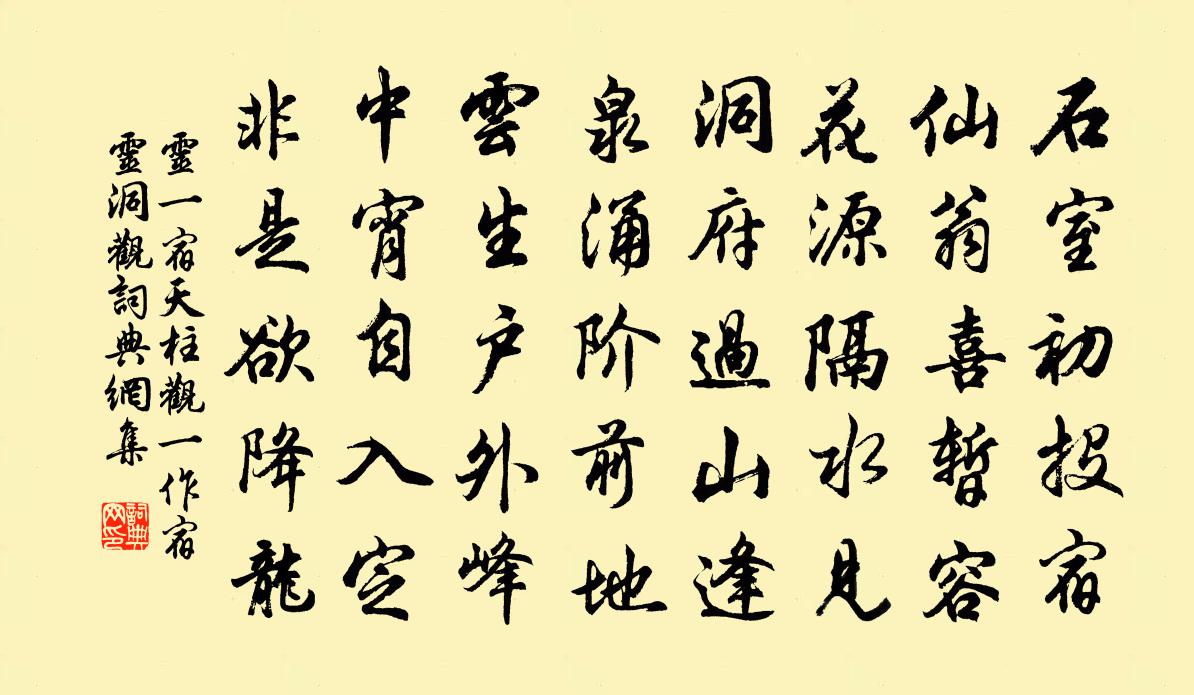 詩詞名句歷史字典書法欣賞書法字典國語詞典說文解字康熙字典古漢語字典標 題 作 者 詩 句 宿天柱觀(一作宿靈洞觀)作者:靈一 朝代:唐代宿天柱觀(一作宿靈洞觀)原文石室初投宿,仙翁喜暫容。花源隔水見,洞府過山逢。泉涌階前地,雲生戶外峰。中宵自入定,非是欲降龍。詩詞問答問:宿天柱觀(一作宿靈洞觀)的作者是誰?答:靈一問:宿天柱觀(一作宿靈洞觀)寫於哪個朝代?答:唐代靈一宿天柱觀(一作宿靈洞觀)書法欣賞宿天柱觀(一作宿靈洞觀)書法作品注釋全唐詩:卷809-4詩詞推薦屬疾五首宋祁〔宋代〕自昔聞稱疾,於今是養疴。三盃留客案,五子倦朝珂。落落堪憂苦,星星奈老何。酒希非所嗜,揚宅竟誰過。朝中措佚名〔宋代〕幾年弱水望蓬萊。心事喜同諧。佳婿欣逢公瑾,新婚喜近英台。豪家深意,芙蓉褥隱,金雀屏開。但願門闌多喜,水龍吟 中秋和人韻王旭〔元代〕西風萬卷堂空,臥聽簫鼓誰家宴。多情惟有,碧霄明月,肯來相見。因記當年,南樓老子,座前賓滿。把清談當卻擬湖邊採蓮婦吳泳〔宋代〕短裙纈蕖衣制荷,採蓮女兒憑船歌。歌酣弭棹解塵襪,微步演迤凌寒波。薄言采采湖之沚,買鏡我錢賤生理。遙知教授顏端行出示所和老杜曲江章因次韻王之道〔宋代〕浮雲卷盡秋天高,月光照水翻金濤。臨溪酌月羞溪毛。舉杯未飲欲誰酬,茲非沈謝須劉曹。定風波商角調 商角調 西江客舍張翥〔元代〕恨行雲、特地高寒,牢籠好夢不定。婉娩年華,淒涼客況,泥酒渾成病。畫闌深,碧花靜。一樹瑤花可憐影。低映哭顧平甫前韻錢時〔宋代〕郊原幾度踏青晴,此日空山草木春。淚盡兩行悲不盡,眼前安得見斯人。菩薩蠻陳克〔宋代〕綠陰寂寂櫻桃下。盆池劣照薔薇架。簾影假山前。映階紅葉翻。芭蕉籠碧砌。猧子中庭睡。香徑沒人來。拂牆花又句程敦厚〔宋代〕味重帶新馳驛貢,花旌難老隔年芳。夜行滎陽道中陳維崧〔清代〕峽劈成皋古郡,人雜猿猱過。斷崖怒走,蒼龍立而臥。此乃廣武山乎?噫嚱古戰場哉,悲來無那。卸鞍坐,煙竹吹寄龍山譚使君五首黎廷瑞〔宋代〕霧閣雲窗罨畫開,半栽松竹半栽梅。不須更種桃花樹,怕引漁郎入洞來。山中述懷姚合〔唐代〕為客久未歸,寒山獨掩扉。曉來山鳥散,雨過杏花稀。天遠雲空積,溪深水自微。此情對春色,盡醉欲忘機。猛虎行(諸本有贈李宗閔字)韓愈〔唐代〕猛虎雖雲惡,亦各有匹儕。群行深谷間,百獸望風低。身食黃熊父,子食赤豹麛。擇肉於熊豹,肯視兔與狸。正晝曉自銀林至東灞登舟,寄宣城親戚范成大〔宋代〕曉山障望眼,脈脈紫翠橫。澄江已不見,況乃江上城。結束治野裝,木末浮三星。羸馬隴頭嘶,小車谷中鳴。亭亭和元參政喜雪王珪〔唐代〕千里同雲向夕繁,風迎嘉雪臘前翻。紫壇轉仗回馳道,玉律驚灰人奉元。半夜桂花飄碧海,先春柳絮撲朱門。萬方洞玄歌長筌子〔元代〕野堂花老。檻外幽香度。綠影沉沉映窗戶。任從他、日轉西郊,且閒看、雲生南浦。見隱隱遙嶺接天青,又石齒分送渭州王龍圖歐陽修〔宋代〕漢軍十萬控山河,玉帳優遊暇日多。夷狄從來懷信我,廟堂今不用干戈。吟余畫角吹殘月,醉里紅燈炫綺羅。此樂念奴嬌(荷葉浦雪中作)王千秋〔宋代〕扁舟東下,正歲華將晚,江湖清絕。萬點寒鴉高下舞,凝住一天雲葉。映筱漁村,衡茅酒舍,淅瀝鳴飛雪。壯懷興和鄭閎中仙居十一首陳襄〔宋代〕我愛仙居好,三年理尚寬。民雖離網罟,政未息風瀾。憫物刑多省,勞心席少安。只慚無惠術,求配古人難。詩挽陳提刑釋寶曇〔宋代〕清苦諸生節,廉平御史知。一飢曾忍可,千里舍公誰。落落天人際,拳拳骨鯁詞。秋風又凋物,空有老成悲。少日名句推薦近水知魚性,近山識鳥音。佚名《增廣賢文·上集》 滿隄芳草不成歸,斜日畫橋煙水冷。吳翌鳳《玉樓春·空園數日無芳信》 蜂爭粉蕊蝶分香,不似垂楊惜金縷。溫庭筠《惜春詞》 何期今日酒,忽對故園花。文森《九日》 存為善之心,不必邀為善之名。王永彬《圍爐夜話·第五五則》 雪似梅花,梅花似雪。似和不似都奇絕。呂本中《踏莎行·雪似梅花》 單于北望拂雲堆,殺馬登壇祭幾回。王之渙《涼州詞二首》 朱弦已為佳人絕,青眼聊因美酒橫。黃庭堅《登快閣》 夢繞神州路。張元乾《賀新郎·送胡邦衡待制赴新州》 千人之諾諾,不如一士之諤諤。司馬遷《史記·商君列傳》