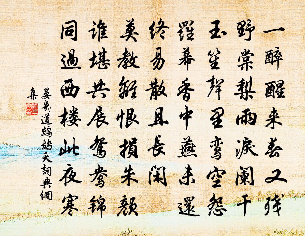 “一醉醒來春又殘,野棠梨雨淚闌乾。”這一句流露出來的感傷之情,奠定了全文的感情基調。詞人開篇寫自己酒醉醒來,忽然發現春色已接近尾聲了,海棠和梨花上面還殘留著點點雨滴,好似眼淚一樣。作者通過“一醉”引出醒來後所見,本來毫不相關的“酒醉”和“春殘”被作者巧妙地聯繫起來,令人感覺他醉了很久,連節氣的變化都已經忘記。作者在“春殘”二字中間加了個“又”字,說明人對時光的荏苒毫無察覺。如晏幾道詞集自序中所寫的那樣:“感光陰之易遷,嘆境緣之無實。”前一句寫酒醒之後,滿目儘是悲涼,僅僅剩下了春殘的蕭條。作者因自己酒醉而荒廢了美好的春景感到自責。後一句以“海棠梨花”表春殘,更有意境。古人將美人流淚喻為梨花帶雨,作者運用此意,表達出內心的無限哀愁。