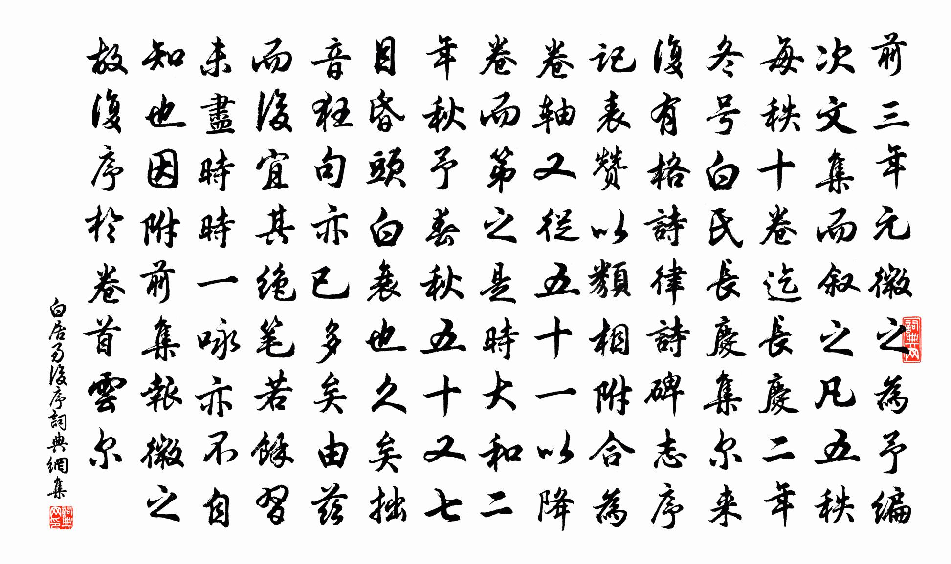 前三年,元微之為予編次文集而敘之。凡五秩,每秩十卷,迄長慶二年冬,號白氏長慶集。