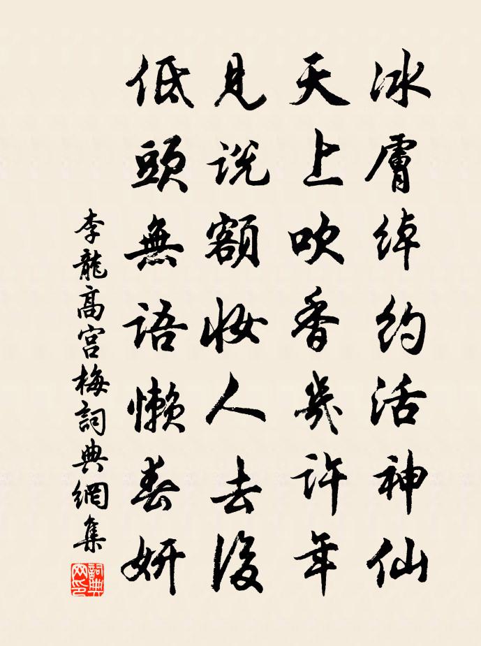 詩詞名句歷史字典書法欣賞書法字典國語詞典說文解字康熙字典古漢語字典標 題 作 者 詩 句 宮梅作者:李龍高 朝代:宋代宮梅原文冰膚綽約活神仙,天上吹香幾許年。見說額妝人去後,低頭無語懶春妍。詩詞問答問:宮梅的作者是誰?答:李龍高問:宮梅寫於哪個朝代?答:宋代李龍高宮梅書法欣賞宮梅書法作品詩詞推薦句潘慎修〔宋代〕如今縱得仙翁術,也怯君王四路饒。洪士龍以洪舜俞考功所作竹洲精舍記見問魏了翁〔宋代〕考功記竹洲,所業在淇奧。謂學與自修,此何取於竹。士龍來諗余,試請言其目。天地之大端,松篁受命獨。陰陽詠旱三首曾幾〔宋代〕驕陽方施行,秋節已樹立。田畝在膏肓,何道可副急。雲雷不成雨,成雨初不濕。咄咄逼中秋,為霖恐無及。次韻知命永和道中黃庭堅〔宋代〕靈骨閟金鏁,梵宮超玉繩。道人住香火,獨先開淨行。呼船久無人,月沉河漢傾。虛舟不受怒,故在蓼漢橫。幔亭峰李左史〔宋代〕更無裀幕空中舉,時有笙竽靜處聞。猿鳥哀啼千嶂月,松篁寒鎖一溪雲。立春日陸游〔宋代〕日出風和宿醉醒,山家樂事滿余齡。年豐臘雪經三白,地暖春郊已遍青。菜細簇花宜薄餅,酒香浮螘瀉長瓶。湖村在敵營作何粟〔宋代〕念念通前劫,依依返舊魂。人生會有死,遺恨滿乾坤。微雨三首趙蕃〔宋代〕雨絲條脈脈,雨點淚浪浪。無處堪回首,如何不斷腸。城南雜詠二十首山齋張栻〔宋代〕疊石小崢嶸,修篁高下生。地偏人跡罕,古井轆轤鳴。靈隱前一首贈唐林夫(一題聞林夫當徙靈隱寺)蘇軾〔宋代〕靈隱前,天竺後,兩澗春淙一靈鷲。不知水從何處來,跳波赴壑如奔雷。無情有意兩莫測,肯向冷泉亭下相縈迴。次七兄韻題二兄靜明閣周必大〔宋代〕堤有芙蓉沼有蕖,東西精舍直平湖。市朝間闊聊中隱,山隰橫陳豈子都。杖屨意行非得得,輪蹄心遠任區區。休窮送楊通判葉適〔宋代〕花稀讓林稠,苗疎與田遠。共欣永日寬,更笑余寒褊。窮閻多樂事,粲粲翠幄展。惜君盍少假,忽泛江流緬。三年白日偶無客青山長對門韓淲〔宋代〕朝市無遺音,丘園有絕跡,蓬茅晏不開,才開待迎客。偶題陳宓〔宋代〕向長不願富,折像患不貧。奇禍伏所慕,藏身有餘珍。向來東陵侯,豈似種瓜人。茫茫宇宙間,不得自由身。奉酬洪景伯謝伋〔宋代〕屏居常恨造門疏,覿面真如得異書。昔年丹筆勘閣本,此日海邦題坐輿。幸接好音聞正始,豈惟妙句突黃初。道山贈張次律司理三首趙蕃〔宋代〕長沙今十日,曾未及湘山。舊疾痁頻作,方爐火自跧。風高知木脫,雨細念梅斑。飄泊方茲始,林園未遽還。幽居遣懹陸游〔宋代〕大患元因有此身,正須枵腹對空囷。扶持接客寧嗟老?質貸迎醫未厭貧。碓下罕遺雞啄粒,席間不掃鼠行塵。時時橫溪堂春曉二首虞似良〔宋代〕一把新秧趁手青,輕煙漠漠雨冥冥。東風染盡三千頃,白鷺飛來無處停。傍家東北有山曰紹地余幸得之規以素莊也戴表元〔宋代〕紹地吾所欣,他時以藏我。岡原見逾美,松柏栽已夥。雙流交在右,一幾平連左。憶昔初經營,登高忘蹩跛。年衰趙湖州東園雜詠和人韻賓日陳文蔚〔宋代〕著眼高時四海空,何須服日臉霞紅。清朝坐對升暘谷,萬里雲煙在古風。名句推薦冠必正,紐必結。襪與履,俱緊切。李毓秀《弟子規·謹》 無人信高潔,誰為表予心?駱賓王《詠蟬 / 在獄詠蟬》 欲說還休,卻道“天涼好個秋”!辛棄疾《醜奴兒·書博山道中壁》 回看射鵰處,千里暮雲平。王維《觀獵》 文章是山水化境,富貴乃煙雲幻形。王永彬《圍爐夜話·第一二二則》 故人在其下,塵土相豗蹴。蘇軾《送頓起》 郎到斷橋須有路,儂住處,柳如金。張惠言《江城子·填張春溪西湖竹枝詞》 沅有芷兮澧有蘭,思公子兮未敢言。屈原《九歌·湘夫人》 雙星何事今宵會,遺我庭前月一鉤。德容《七夕二首·其一》 待約個梅魂,黃昏月淡,與伊深憐低語。柳如是《金明池·詠寒柳》
