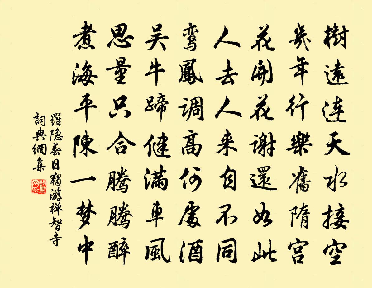 樹遠連天水接空,幾年行樂舊隋宮。花開花謝還如此,人去人來自不同。
