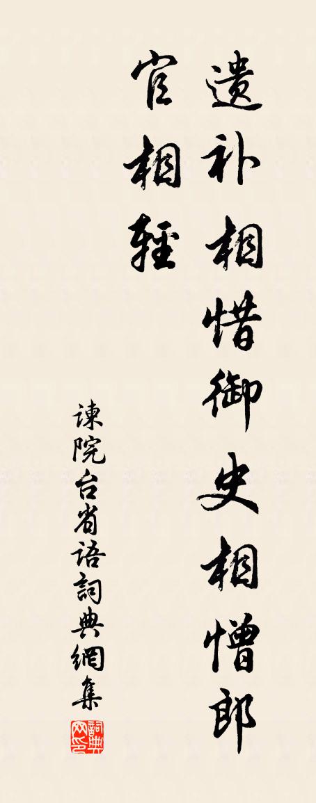詩詞名句歷史字典書法欣賞書法字典國語詞典說文解字康熙字典古漢語字典標 題 作 者 詩 句 諫院台省語作者:佚名 朝代:唐代諫院台省語原文遺補相惜,御史相憎,郎官相輕。詩詞問答問:諫院台省語的作者是誰?答:佚名問:諫院台省語寫於哪個朝代?答:唐代問:佚名的名句有哪些?答:佚名名句大全佚名諫院台省語書法欣賞諫院台省語書法作品詩詞推薦道室雜詠陸游〔宋代〕鳥化雙鳧杖化龍,雲山回首不知重。藥園夜嘯丹台月,酒市秋聽紫閣鍾。豈但煙霄隨步武,故應冰雪換形容。小童玉蝴蝶溫庭筠〔唐代〕秋風淒切傷離,行客未歸時。塞外草先衰,江南雁到遲。芙蓉凋嫩臉,楊柳墮新眉。搖落使人悲,斷腸誰得知。題巴州光福寺楠木嚴武〔唐代〕楚江長流對楚寺,楠木幽生赤崖背。臨谿插石盤老根,苔色青蒼山雨痕。高枝鬧葉鳥不度,半掩白雲朝與暮。香殿答柴主簿二首林景熙〔宋代〕間采秋荷自製衣,相逢舊雨語依依。學窮科斗心空老,夢跨蟾蜍肉不飛。幾喚江帆和雁渡,長歌岩戶見雲歸。何須詠老晁說之〔宋代〕腳踏浮雲身已老,訪道修行恨不早。曾見商周全盛時,不及唐虞古風好。次韻子瞻游孤山訪惠勤惠思蘇轍〔宋代〕鳥依山,魚依湖,但有所有無所無。輕舟沿泝窮遠近,肩輿上下更傳呼。翩然獨往不攜孥,兼擅魚鳥兩所娛。困依審知用由字韻作詩見示次韻趙蕃〔宋代〕山可屐登溪中浮,崎嶇窈窕悵無由。功名竟爾異吾事,邱壑只然須我流。夏日炎蒸端畏病,秋天瀟灑信宜游。關心題南雄驛外計堂楊萬里〔宋代〕攜家度嶺夜乘槎,小泊凌江水北涯。二月山城無菜把,一年春事又楊花。舉頭海國星辰近,回顧梅山草樹遮。客子梁甫吟佚名〔兩漢〕步出齊城門,遙望盪陰里。里中有三墳,累累正相似。問是誰家墓,田疆古冶氏。力能排南山,又能絕地紀。一朝西堂楊蟠〔宋代〕謝公何所憶,白日看雲眠。忽夢惠連弟,遂得春草篇。連昌宮詞二首門陸龜蒙〔唐代〕金鋪零落獸鐶空,斜掩雙扉細草中。日暮鳥歸宮樹綠,不聞鴉軋閉春風。閩嶠軍中陳某〔宋代〕翠華齊擁霍嫖姚,卻向青山說豹韜。兵馬夜行殘月下,弓旌寒響朔風高。壺漿故老愁啼血,野飯將軍猛茹毛。自笑一高亭二首程公許〔宋代〕一棹松江朔雪饕,椒漿曾此酹三高。遠遊借與薰風便,偉觀還如昔日遭。喚起玉龍噓霧雨,饒教彩昭蜺戰雲濤。平句韓偓〔唐代〕豈獨鴟夷解歸去,五湖漁艇且餔糟。懷舊陸游〔宋代〕扇子硤中有隱士,清江一曲照柴荊。當時船急失一見,至今空憶暮猿聲。覽鏡鄭剛中〔宋代〕短髮書不盈梳,書年來半斑書白。吾今四十二,敢望能滿百。負郭苦無田,安居未成宅。況復世路艱,國步日侵迫滿江紅范成大〔宋代〕罨畫溪山,行欲遍、風蒲還舉。天漸遠、水雲初靜,柁樓人語。月色波光看不定,玉虹橫臥金鱗舞。看五湖、今夜宮詞一百首岳珂〔宋代〕鬼章夜縛下洮城,祝冊先朝永裕陵。二聖止戈元有指,未教狡穴盡秋鷹。念奴嬌陳三聘〔宋代〕餘霞飛綺,望長天、頃刻雲容凝碧。今夕江皋風力軟,明日波心頭白。客舸東流,語離深夜,遣我新愁積。春融花題簡上人西亭詩文後劉翼〔宋代〕真如非字義,綺語道之疵。未見西亭作,長為北磵欺。晚因僧媚遠,初實客從曦。多少才名士,沉淪世不知。名句推薦豈能無意酬烏鵲,惟與蜘蛛乞巧絲。李商隱《辛未七夕》 子胥既棄吳江上,屈原終投湘水濱。李白《行路難三首》 喜無以賞,怒無以殺管仲《管子·版法》 若為化得身千億,散上峰頭望故鄉。柳宗元《與浩初上人同看山寄京華親故》 獨王之國,勞而多禍管仲《管子·形勢》 暮雨相呼失,寒塘欲下遲。崔塗《孤雁二首·其二》 露下旗濛濛,寒金鳴夜刻。李賀《塞下曲》 問元戎早晚,鳴鞭徑去,解天山箭。元好問《水龍吟·從商帥國器獵於南陽同仲澤鼎玉賦此》 苔深不能掃,落葉秋風早。李白《長干行二首》 順天者存,逆天者亡。孟子《孟子·離婁章句上·第七節》