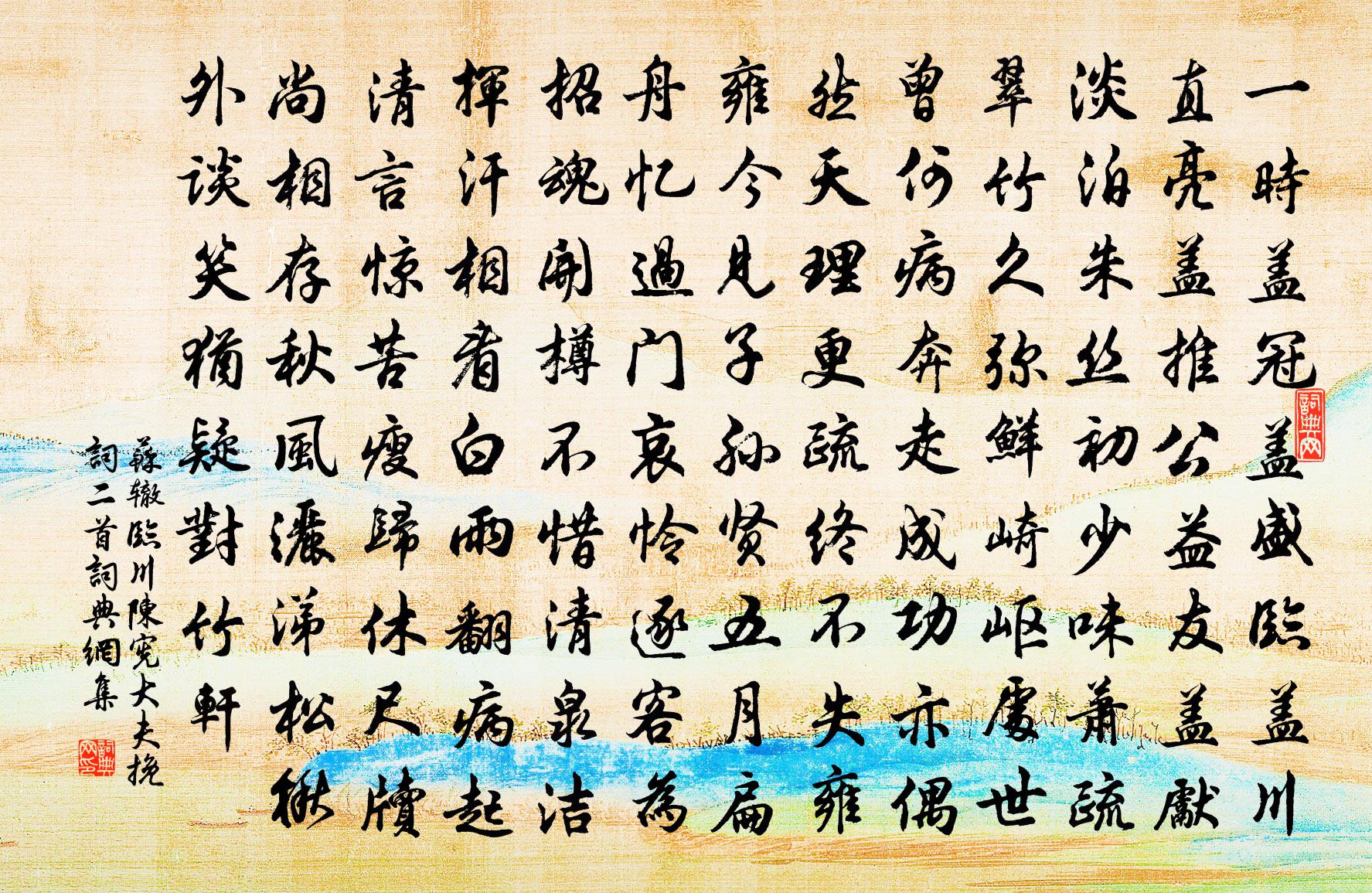 一時蓋冠蓋盛臨蓋川,直亮蓋推公益友蓋先。淡泊朱絲初少味,蕭疏翠竹久彌鮮。