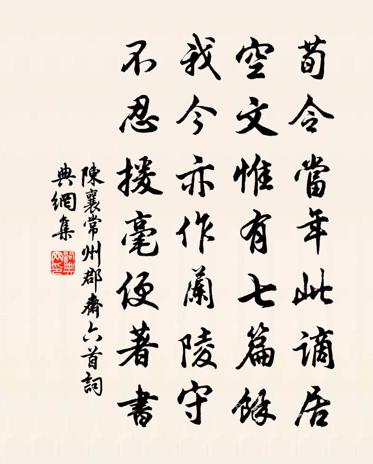 詩詞名句歷史字典書法欣賞書法字典國語詞典說文解字康熙字典古漢語字典標 題 作 者 詩 句 常州郡齋六首作者:陳襄 朝代:宋代常州郡齋六首原文荀令當年此謫居,空文惟有七篇餘。我今亦作蘭陵守,不忍援毫便著書。詩詞問答問:常州郡齋六首的作者是誰?答:陳襄問:常州郡齋六首寫於哪個朝代?答:宋代陳襄常州郡齋六首書法欣賞常州郡齋六首書法作品詩詞推薦贈劉大兄院長竇群〔唐代〕萬年枝下昔同趨,三事行中半已無。路自長沙忽相見,共驚雙鬢別來殊。卜居袁瑨〔宋代〕宦海茫茫闊,幽棲洵遠圖。折腰原為米,搔首卻思鱸。笳鼓深秋動,田園舊夢無。干戈方滿地,吾輩尚窮途。春秋戰國門文公周曇〔唐代〕滅虢吞虞未息兵,柔秦敗楚霸威成。文公徒欲三強服,分晉元來是六卿。翰林作劉鄴〔唐代〕曾是江波垂釣人,自憐深厭九衢塵。浮生漸老年隨水,往事曾聞淚滿巾。已覺遠天秋色動,不堪閒夜雨聲頻。多慚館宿孔武仲〔宋代〕啾啾檐間雀,側翅相悲鳴。歲晏寒雖壯,雲稀雪未成。同舍布路歸,禁扃斷人行。敗箕摧殘葉,傴僂一老兵。念非送唐大夫罷節歸山王建〔唐代〕年少平戎老學仙,表求骸骨乞生全。不堪腰下懸金印,已向雲西寄玉田。旄節抱歸官路上,公卿送到國門前。人間門有車馬客何遜〔南北朝〕門有車馬客。言是故鄉來。故鄉有書信。縱橫印檢開。開書看未極。行客屢相識。借問故鄉來。潺湲淚不息。上言琴曲歌辭蔡氏五弄遊春辭二首王涯〔唐代〕曲江絲柳變煙條,寒骨冰隨暖氣銷。才見春光生綺陌,已聞清樂動雲韶。經過柳陌與桃蹊,尋逐風光著處迷。鳥度和朱利賓題妙智院元勛〔宋代〕放懷對客初尋笑,滿目開花未放愁。望遠此情天不盡,名山何得逐窮幽。余有仲子之戚九日親故攜酒訪我於梅山之上因姜特立〔宋代〕九日上梅山,愁心卒未安。人情皆向菊,天意獨摧蘭。管女不及嫁,萊衣空自寒。牛山多感慨,把酒淚闌乾。簡徐宰方岳〔宋代〕俗吏相傳作縣難,及民那有一分寬。聞君猶逮從諸老,說到民貧鼻亦酸。出門難文天祥〔宋代〕羅剎盈庭夜色寒,人家燈火半闌珊。夢回跳出鐵門限,世上一重人鬼關。次韻夾穀子括吳山晚眺方回〔宋代〕落木蕭蕭澤國寬,偶舒岩嘯縱川觀。六鰲海闊征帆遠,萬象天低步屧寒。旅泊餘生簞食菲,宦遊舊味瓮虀殘。達人峽石寺林逋〔宋代〕長淮如練楚山青,禹鑿招提甲畫屏。數崦林蘿攢野色,一崖樓閣貯天形。燈驚獨鳥回晴塢,鍾送遙帆落晚汀。不會睡起戲筆鄭清之〔宋代〕范蠡功成便五湖,鴟夷未了復陶朱。爭如終老嚴陵釣,千古清名一事無。題黃文叔燕堂劉過〔宋代〕著屋圖書里,四山樓觀重。蓴添張翰思,橘當李侯封。湖水自平淡,花枝多冶容。興來詩已就,只可酒千鍾。憶雍都一首蘇籀〔宋代〕秦漢西都誰復加,茂陵賦筆大非夸。西瞻周道平如砥,南揖秦山翠削瓜。雷尾鳳鬃蹄逸健,蝟髯黧面手高叉。兵微右軍留女帖贊岳珂〔宋代〕或真或摹,斯焉取諸,是出於偃月儲。垂胄同仇,於門之魚,予將比乎邾。中秋夕寄大梁劉尚書許渾〔唐代〕汴人迎拜洛人留,虎豹旌旗擁碧油。刁斗嚴更軍耳目,戈鋋長控國咽喉。柳營出號風生纛,蓮幕題詩月上樓。應念奉和杜相公新移長興宅,呈元相公劉長卿〔唐代〕間世生賢宰,同心奉至尊。功高開北第,機靜灌中園。入並蟬冠影,歸分騎士喧。窗聞漢宮漏,家識杜陵源。獻替名句推薦獨自上層樓,樓外青山遠。程垓《卜運算元·獨自上層樓》 十二峰頭秋草荒,冷煙寒月過瞿塘。何景明《竹枝詞·十二峰頭秋草荒》 那裡是清江江上村,香閨里冷落誰瞅問?好一個憔悴的憑欄人。關漢卿《大德歌·冬》 落葉他鄉樹,寒燈獨夜人。馬戴《灞上秋居》 何用慰相思,裁書寄關右。李益《送諸暨王主簿之任》 悵望倚危欄,紅日無言西下。張昪《離亭燕·一帶江山如畫》 萬里人南去,三春雁北飛。韋承慶《南中詠雁詩》 悲商叩林,白雲依山。陶淵明《閒情賦》 欲求生富貴,須下死工夫。佚名《增廣賢文·上集》 痴兒不知父子禮,叫怒索飯啼門東。杜甫《百憂集行》