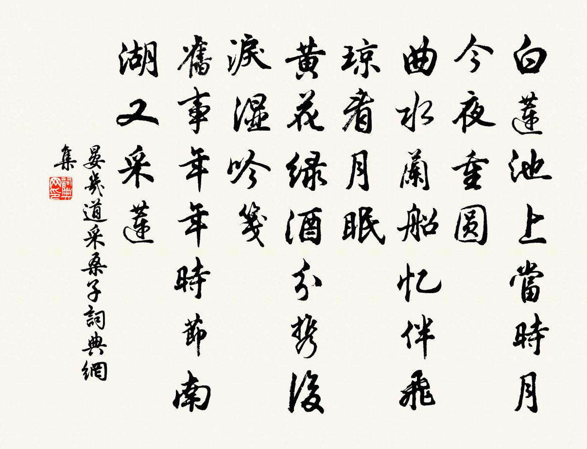 白蓮池上當時月,今夜重圓。曲水蘭船,憶伴飛瓊看月眠。