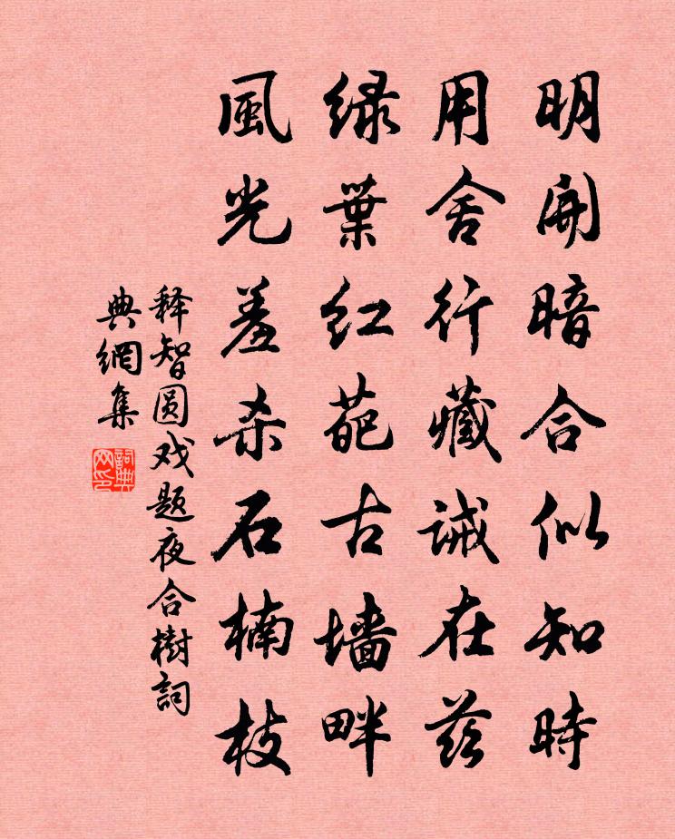 詩詞名句歷史字典書法欣賞書法字典國語詞典說文解字康熙字典古漢語字典標 題 作 者 詩 句 戲題夜合樹作者:釋智圓 朝代:宋代戲題夜合樹原文明開暗合似知時,用舍行藏誡在茲。綠葉紅葩古牆畔,風光羞殺石楠枝。詩詞問答問:戲題夜合樹的作者是誰?答:釋智圓問:戲題夜合樹寫於哪個朝代?答:宋代釋智圓戲題夜合樹書法欣賞戲題夜合樹書法作品詩詞推薦歸去來圍南鄰劉家菜圃近許辟路相通朱翌〔宋代〕假道趨南浦,排牆度小溝。仙人中摘李,鄰里外依劉。良友經時集,清貧覺我優。檳榔初不設,佳茗或相投。食車螯楊萬里〔宋代〕珠宮新沐淨瓊沙,石鼎初燃瀹井花。紫殼旋開微滴酒,玉膚莫熟要鳴牙。棖拖金線成雙美,姜擘糟丘並一家。老子月台夜坐二首楊萬里〔宋代〕秋日非無熱,秋霄至竟清。老夫連數夕,露坐到三更。風急星明滅,雲行月送迎。追驩追不得,驩卻偶然成。偈六十九首釋道寧〔宋代〕摩竭掩室,非是通方。淨名杜詞,未為作略。總不恁麽,罕遇知音。方便門中,隨宜舉唱。別徐商老奉祠歸清江五首彭龜年〔宋代〕離離鴻雁行,漠漠鱸蓴秋。誰獨無此情,何以寫我憂。孤山訪梅不遇簡知己武衍〔宋代〕結客尋春過舊隄,雪香雲冷鎖雙扉。隔牆應是梅花,敝卻貂裘尚未歸。台城路·白狼河北秋偏早納蘭性德〔清代〕白狼河北秋偏早,星橋又迎河鼓。清漏頻移,微雲欲濕,正是金風玉露。兩眉愁聚。待歸踏榆花,那時才訴。只恐題丹灶四首耿南仲〔宋代〕始知勾漏地,猶勝步兵營,往躅今誰繼,遊人空慕名。念奴嬌(三和)劉克莊〔宋代〕戲衫拋了,下棚去、誰笑郭郎長袖。小小草庵無寶貝,何必神呵鬼守。黃奶篝燈,青奴拂榻,莫要他桃柳。客來問題竹林七賢圖錢選〔宋代〕昔人好沈酣,人事不復理。但進杯中物,應世聊爾爾。悠悠天地間,媮樂本無愧。諸賢各有心,流俗毋輕議。西江月(題墨水仙)張炎〔宋代〕縹緲波明洛浦,依稀玉立湘皋。獨將蘭蕙入離騷。不識山中瑤草。月照英翹楚楚,江空醉魄陶陶。猶疑顏色尚清高追和賈明叔侯陟明二侍郎瑞香二首王之道〔宋代〕深院重簾數尺牆,對花可必竟燒香。九齡風度高難挹,舉世紛紛漫笏囊。送王秀才往安南楊衡〔唐代〕君為蹈海客,客路誰諳悉。鯨度乍疑山,雞鳴先見日。所嗟回棹晚,倍結離情密。無貪合浦珠,念守江陵橘。奉和魯望漁具十五詠射魚皮日休〔唐代〕注矢寂不動,澄潭晴轉烘。下窺見魚樂,怳若翔在空。驚羽決凝碧,傷鱗浮殷紅。堪將指杯術,授與太湖公。登村東古冢白居易〔唐代〕高低古時冢,上有牛羊道。獨立最高頭,悠哉此懷抱。回頭向村望,但見荒田草。村人不愛花,多種栗與棗。自來長門怨盧綸〔唐代〕空空古廊殿,寒月落斜暉。臥聽未央曲,滿箱歌舞衣。酹江月 用子周僉司詠雪韻曹伯啟〔元代〕六花凌亂,算神工、不用并州刀剪。乍密還疏斜復整,眼底萬更千變。宿麥連雲,遺蝗入地,四海愁顏展。呼童洗酬李篔房元日見寄韻釋文珦〔宋代〕五年懶踏上京塵,真是乾坤散誕身。正向山中閒臥雪,忽聞戶外報迎春。且傾竹葉屠蘇酒,休畫桃符鬱壘神。底事小雪作張嵲〔宋代〕霜風一夜落寒林,莽蒼雲煙結歲陰。把鏡漸無勳業念,愛山唯駐隱淪心。冰花散落衡門靜,黃葉飄零一逕深。世亂有感劉克莊〔宋代〕向來涉筆賦長楊,辱賜天家七寶床。黃吻少年評宿士,白頭宮女說先皇。走章台馬曾遊冶,攀鼎湖龍竟渺茫。縱使名句推薦御羅屏底翻歌扇,憶西湖、臨水開窗。吳文英《風入松·桂》 一苗露水一苗草,一朝天子一朝臣。佚名《增廣賢文·下集》 莫飲卯時酒,昏昏醉到酉。佚名《增廣賢文·上集》 君子必在己者,不必在人者也。呂不韋《呂氏春秋·覽·孝行覽》 山雪河冰野蕭瑟,青是烽煙白人骨。杜甫《悲青坂》 來是空言去絕蹤,月斜樓上五更鐘。李商隱《無題四首》 波面澄霞,蘭艇采香去。高觀國《祝英台近·荷花》 鷫鸘換美酒,舞衣罷雕龍。李白《怨歌行》 見侮而不鬥,辱也!公孫龍《公孫龍子·跡府》 驚沙獵獵風成陣,白雁一聲霜有信。元好問《玉樓春·驚沙獵獵風成陣》