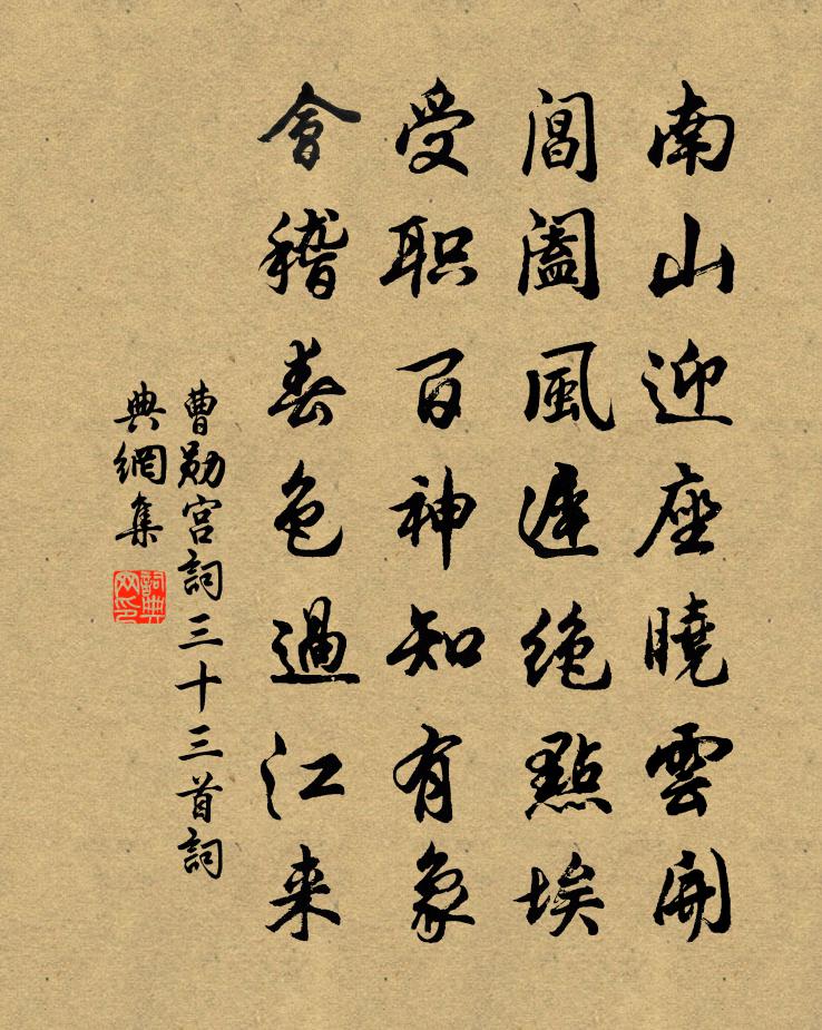 詩詞名句歷史字典書法欣賞書法字典國語詞典說文解字康熙字典古漢語字典標 題 作 者 詩 句 宮詞三十三首作者:曹勛 朝代:宋代宮詞三十三首原文南山迎座曉雲開,閶闔風遲絕點埃。受職百神知有象,會稽春色過江來。詩詞問答問:宮詞三十三首的作者是誰?答:曹勛問:宮詞三十三首寫於哪個朝代?答:宋代曹勛宮詞三十三首書法欣賞宮詞三十三首書法作品詩詞推薦奉和聖制過溫湯鄭義真〔唐代〕洛川方駐蹕,豐野暫停鑾。湯泉恆獨涌,溫谷豈知寒。漏鼓依岩畔,相風出樹端。嶺煙遙聚草,山月迥臨鞍。日用雜詩四首曾鞏〔宋代〕皇皇謁荊人,伈伈遵陽虎。及覺一禮亡,翩然遂違魯。全身有遜接,直道無苟處。故稱聖如龍,屈伸茲可睹。登岸山觀用前韻蔡戡〔宋代〕病足蹣跚好罷休,又登絕頂故遲留。霜明楓葉紅如染,露挹嵐光翠欲流。遠目無窮休更望,賞心未足卜重遊。超然答蘇州韋應物郎中皎然〔唐代〕詩教性殆淪缺,性庸音互相性傾。忽觀性風騷韻,會我夙昔情。蕩漾學海資,郁為詩人英。格將寒松高,氣與秋江生查子趙師俠〔宋代〕庭虛任雀喧,院靜無人到。回首十年非,賴得知幾早。心隨香篆銷,意與梅花好。萬事轉頭空,一笑吾身老。頌古十四首釋師體〔宋代〕和煙釣月是生涯,古策風高未足夸。欸乃一聲天地闊,祖師何必渡流沙。挽昭懷皇后詩二首李呂〔宋代〕{左巾右荒}御還龜洛,禕衣閟鮒隅。光華隨渭水,巡狩隔蒼梧。已卜先朝袝,旋聞反寢虞。昭懷千載諡,不朽在虞美人 謝成耀卿僉事攜酒芋相過王惲〔元代〕山瓶乳酒甘如蜜。鴟芋堆盤赤。見君相贈固多情。潤我枯腸一吸破愁城。秋光湖碧西灣瀲。不到中心慊。何時盡煮送徐正時歸浦城曹勛〔宋代〕徐子志義士,觸熱如探湯。遠從南浦來,訪我存與亡。語兼瓊瑤溫,氣回蘭蕙芳。炎雲正爍石,懷抱為清涼。顧予晚渡陸龜蒙〔唐代〕半波風雨半波晴,漁曲飄秋野調清。各樣蓮船逗村去,笠檐蓑袂有殘聲。絕句六十四首張伯端〔宋代〕三才相盜食其時,此是神仙道德機。萬化既安諸慮息,百骸俱理證無為。陳情獻江西李常侍五首許棠〔唐代〕二十二三年,游秦復滯燕。徒陪群彥後,自苦此生前。徑折啼猿樹,岩荒噴月泉。東堂曾受薦,垂白志猶堅。淅淅廣州所見戴復古〔宋代〕風波行險道,萬里絕人煙。幾個下番客,經年渡海船。人皆貪舶貨,我獨惜青錢。□□□□□,留心禁漏川。送李陶通直赴清溪蘇軾〔宋代〕忠文文正二大老,蘇李廣平三舍人。喜見通賢家子弟,自言得邑少風塵。從來勢利關心薄,此去溪山琢句新。肯向偈傾一百三十三首釋法薰〔宋代〕石中有玉,沙裹無油。德山臨濟,未出常流。卻憶寒山子,時臨古渡頭。送僧默然姚合〔唐代〕出家侍母前,至孝自通禪。伏日江頭別,秋風檣下眠。鳥聲猿更促,石色樹相連。此路多如此,師行亦有緣。次韻歸中微雪陳造〔宋代〕卓犖康時略,昂藏報主身。衝風還按轡,飛雪卻宜人。帝渥先春遍,詩題觸目新。行行何樣好,歸路玉為塵。和陶淵明飲酒二十首方回〔宋代〕重五去未遠,重九倏已至。不論家與客,遇節必爛醉。前日期未興,有謁入客次。病酒不遑蕭,匪敢挾長貴。寒夜偶懷壯遊書感陸游〔宋代〕疇昔西遊萬里還,狂吟散落滿人間。買空祿水橋邊酒,看遍青城縣裡山。梅蕊疏疏春欲動,川雲漠漠雪猶慳。偶思湖上賦陸游〔宋代〕冉冉秋將至,沉沉夜向晨。河隨天漸轉,露洗月如新。瘦竹過眉杖,輕紗折角巾。漁歌四面起,煙水浩無津。名句推薦瀉水置平地,各自東西南北流。鮑照《擬行路難十八首》 事窮勢蹙之人,當原其初心;功成行滿之士,要觀其末路。洪應明《菜根譚·概論》 日暖桑麻光似潑,風來蒿艾氣如薰。蘇軾《浣溪沙·軟草平莎過雨新》 嘆息老來交舊盡,睡來誰共午甌茶。陸游《幽居初夏》 客睡何曾著,秋天不肯明杜甫《客夜》 芳草已雲暮,故人殊未來。韋莊《章台夜思》 他鄉共酌金花酒,萬里同悲鴻雁天。盧照鄰《九月九日玄武山旅眺》 莫道桑榆晚,為霞尚滿天。劉禹錫《酬樂天詠老見示》 綠葉素榮,紛其可喜兮。屈原《九章》 此時卻羨閒人醉,五馬無由入酒家。白居易《早冬》
