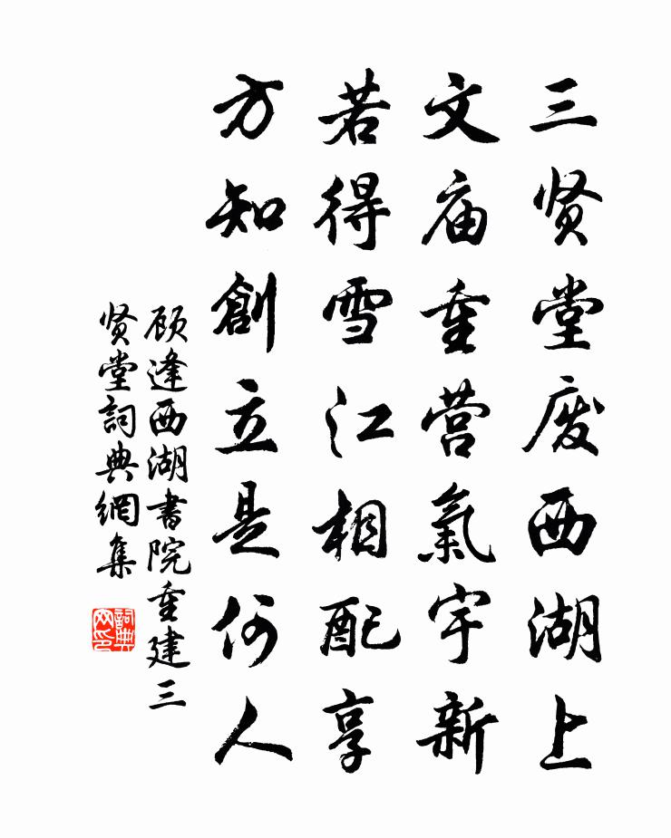 詩詞名句歷史字典書法欣賞書法字典國語詞典說文解字康熙字典古漢語字典標 題 作 者 詩 句 西湖書院重建三賢堂作者:顧逢 朝代:宋代西湖書院重建三賢堂原文三賢堂廢西湖上,文廟重營氣宇新。若得雪江相配享,方知創立是何人。詩詞問答問:西湖書院重建三賢堂的作者是誰?答:顧逢問:西湖書院重建三賢堂寫於哪個朝代?答:宋代顧逢西湖書院重建三賢堂書法欣賞西湖書院重建三賢堂書法作品詩詞推薦隱梅福處黃庭堅〔宋代〕吳門不作南昌尉,上疏歸來朝市空。笑拂岩花問塵世,故人子是國師公。春熱鄭剛中〔宋代〕地氣冬來不復藏,桃花都向臘前芳。無寒疑是青春老,耐靜從他白日長。野蝶舞餘還自去,沙鷗飛斷卻成行。迎風中秋清暉閣靜坐,因思前二年石湖、四明賞月范成大〔宋代〕前年銀界接天迷,去歲金盤涌海低。漂泊相逢重一笑,秦淮東畔女牆西。寒谷暉法師贊釋大觀〔宋代〕祖庭力探,義天橫截。南湖雨華,屢踞前列。鼎峙三觀兮菟元斑,區分一乘兮尾閭自泄。海闊山遙難追軌轍。雲暖滿江紅 懷岳忠武張煌言〔明代〕屈指興亡,恨南北黃圖消歇。便幾個孤忠大義,冰清玉烈。趙信城邊羌笛雨,李陵台上胡笳月。慘模糊吹出玉關情減字木蘭花黃庭堅〔宋代〕舞鬟娟好。白髮黃花帽。醉任旁觀嘲潦倒。扶老偏宜年小。舞回臉玉胸酥。纏頭一斛明珠。日日梁州薄媚,年年金挽張舍人安國四首王阮〔宋代〕近別逾旬朔,俄傳訃問來。初疑餘子謗,漸沸使人猜。竟作青黃木,終成犯怒雷。數行衰淚盡,吾意獨憐才。呈唐德輿兼寄呈可久三首趙蕃〔宋代〕前歲長安雪,從公飲屢過。放談成絕嘆,狂態亦悲歌。我仕魚緣竹,公行漩繞渦。相逢雖足慰,相別奈愁何。寄馬戴姚合〔唐代〕天府鹿鳴客,幽山秋未歸。我知方甚愛,眾說以為非。隔屋聞泉細,和雲見鶴微。新詩此處得,清峭比應稀。春詞方岳〔宋代〕草色將寒上客衣,柔情只了得花飛。湘簾不隔社公雨,百姓人家燕未歸。六龍駐蹕溫州先公職列西掖扈從至此手澤具載李洪〔宋代〕從龍浴日仰光輝,萬里鯨濤扈六飛。晉國曾聞四蛇宇,周家親睹一戎衣。東巡王氣隨天仗,西狩麟經在紫微。江海墨梅魏了翁〔宋代〕素王本自離緇涅,墨者胡為亂等差。玄里只知楊子白,皜中謾見聖人污。分付商岩譜此花。韓尚書南澗公之從弟德文為東廣常平上幕丙寅曾豐〔宋代〕西清人表表,南澗跡陳陳。麟筆可無托,雁行猶有人。姓名知子舊,聞見與吾新。自分寧攻苦,相期勿搞塵。浣溪沙向子諲〔宋代〕爆竹聲中一歲除。東風送暖入屠蘇。瞳瞳曉色上林廬。老去怕看新曆日,退歸擬學舊桃符。青春不染白髭鬚。子暢尉曹秩滿侍親攝戶掾於上饒賦詩二首以送趙蕃〔宋代〕游君父子間,情誼等骨肉。那知三年度,但謂一日足。今晨復何事,溪頭有行舳。臨別慘莫言,裴回謾瞻矚。寓意李鹹用〔唐代〕直道荊棘生,斜徑紅塵起。蒼蒼杳無言,麒麟回瑞趾。東風如未來,飛雪終不已。不知姜子牙,何處釣流水。離亭賦得折楊柳二首李商隱〔唐代〕(其一)暫憑樽酒送無憀,莫損愁眉與細腰。人世死前惟有別,春風爭擬惜長條?(其二)含煙惹霧每依依,萬緒奉安神考御容入景靈宮小臣獲睹有感二首張耒〔宋代〕靈風依傘繡輿深,仗外猶疑警蹕音。不似尋常游幸日,樓前鼓吹卻沾襟。江南積雨嘆施肩吾〔唐代〕人厭為霖水毀溪,床邊生菌路成泥。雨師一日三回到,棟里閒雲豈得棲。次韻敬酬元弼三兄陳師道〔宋代〕冥冥雨力及時來,冉冉春光作意回。白髮尚堪供語笑,青衫不惜著風埃。林廬要自家家到,尊酒寧辭日日開。只恐名句推薦千里搭長棚,沒有不散的筵席。曹雪芹《紅樓夢·第七十二回》 佳節又重陽,玉枕紗廚,半夜涼初透。李清照《醉花陰·薄霧濃雲愁永晝》 花漸凋疏不耐風,畫簾垂地晚重工,墮階縈蘚舞愁紅孫光憲《浣溪沙·花漸凋疏不耐風》 軍合力不齊,躊躇而雁行。曹操《蒿里行》 山一程,水一程,身向榆關那畔行,夜深千帳燈。納蘭性德《長相思·山一程》 天涯靜處無征戰,兵氣銷為日月光。常建《塞下曲四首·其一》 綠池芳草滿晴波,春色都從雨里過。高啟《春暮西園》 正護月雲輕,嫩冰猶薄。辛棄疾《瑞鶴仙·賦梅》 我閉南樓看道書,幽簾清寂在仙居。李白《早秋單父南樓酬竇公衡》 夫嚴家無悍虜,而慈母有敗子。韓非及後人《韓非子·顯學》