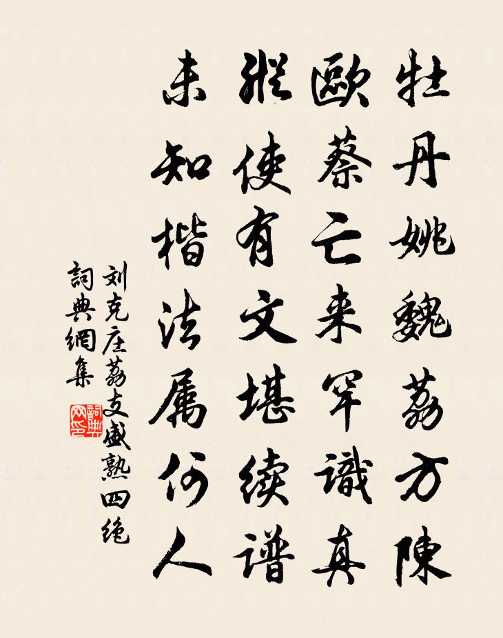 牡丹姚魏荔方陳,歐蔡亡來罕識真。縱使有文堪續譜,未知楷法屬何人。
