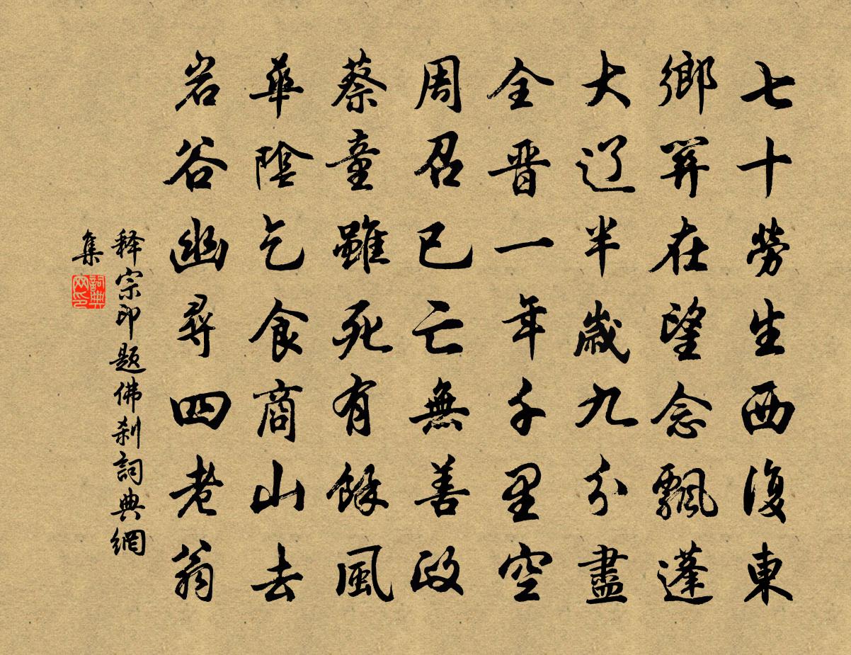 詩詞名句歷史字典書法欣賞書法字典國語詞典說文解字康熙字典古漢語字典標 題 作 者 詩 句 題佛剎作者:釋宗印 朝代:宋代題佛剎原文七十勞生西復東,鄉關在望念飄蓬。大遼半歲九分盡,全晉一年千里空。周召已亡無善政,蔡童雖死有餘風。華陰乞食商山去,岩谷幽尋四老翁。詩詞問答問:題佛剎的作者是誰?答:釋宗印問:題佛剎寫於哪個朝代?答:宋代釋宗印題佛剎書法欣賞題佛剎書法作品詩詞推薦登天清寺塔陳與義〔宋代〕為眼不計腳,攀梯受微辛。半天拍闌乾,驚倒地上人。風從萬里來,老夫方岸巾。荒荒春浮木,浩浩空納塵。夕陽冬暖海棠盛開三絕劉克莊〔宋代〕少為紫陌看花郎,歲晚維摩住病坊。忽被彩雲瞞老眼,錯呼青女作紅娘。秋日郊居陸游〔宋代〕秋日留連野老家,朱盤鮓臠粲如花。已炊藟散真珠米,更點丁坑白雪茶。次韻張昌言喜雨蘇軾〔宋代〕千里黃流失故居,年來赤地到青徐。遙聞爭誦十行語,無異親巡六尺輿。精貫天人一言足,雲興岳瀆萬靈趨。愛君擬行路難鮑照〔南北朝〕春禽喈喈旦暮鳴。最傷君子憂思情。我初辭家從軍僑。榮志溢氣乾雲霄。流浪漸冉經三齡。忽有白髮素髭生。今暮送霄韻上人游天台(一作寶韻上人)劉禹錫〔唐代〕曲江僧向松江見,又到天台看石橋。鶴戀故巢雲戀岫,比君猶自不逍遙。哭僧清尚〔唐代〕道力自超然,身亡同坐禪。水流元在海,月落不離天。溪白葬時雪,風香焚處煙。世人頻下淚,不見我師玄。追和東坡梅花十絕王之道〔宋代〕醉眼昏昏午倦開,不堪詩債苦相催。清香自是蠲煩藥,為折霜蕤一朵來。後游杜甫〔唐代〕寺憶新游處,橋憐再渡時。江山如有待,花柳更無私。野潤煙光薄,沙暄日色遲。客愁全為減,舍此復何之。秋日遣懷陸游〔宋代〕西來浮濤江,東眺俯鏡湖。其中綿千里,鬱郁桑麻區。禹葬有遺窆,粵亡無故墟。秋風吹短褐,望古空躊躇。頭巾華岳〔宋代〕堪笑吾邦幾秀才,頭巾不會自安排。先因待制推將起,又被同知拽下來。送歸使絕句七首羅公升〔宋代〕百年詩禮訓,惟彝仲容賢。慎勿如痴叔,膏明適自煎。南徐夤〔唐代〕罩罩嘉魚憶此方,送君前浦恨難量。火山遠照蒼梧郡,銅柱高標碧海鄉。陸賈幾時來越島,三閭何日濯滄浪。鍾儀蘇幕遮高道寬〔元代〕覓元因,恰一對。七返真藥,雨味丹才配。火候刀圭深青翠。上下升降,睹面人不會。下功夫,休貪睡。不屬中間天門山舒岳祥〔宋代〕煙樹連天遠,漁樵兩地分。仙舟滄海路,僧錫石橋雲。落日人行少,空村犬吠聞。誰知隱淪者,絕跡在人群。觀蟻二首楊萬里〔宋代〕偶爾相逢細間途,不知何事數遷居。微軀所饌能多少,一獵歸來滿後車。皇甫岳雲溪雜題五首。鸕鶿堰王維〔唐代〕乍向紅蓮沒,復出清蒲颺。獨立何褵褷,銜魚古查上。翰林侍讀學士尚書右丞李公輓辭三首蘇頌〔宋代〕儒雅名公子,承平輔相孫。台儀尊右轄,世職重高門。富貴今如夢,便蕃歿有恩。邇英前席地,無復進嘉言。再次韻陳造〔宋代〕微風不放浪紋長,噞暖跳魚三尺黃。只欠高荷護千襪,醉妝濃艷媚斜陽。送外兄方卿公美赴廣東憲十絕黃公度〔宋代〕石門酌水賦新詩,舊事曾聞吳隱之。習習清風化貪懦,不圖今見古齊夷。名句推薦雖萬被戮,豈有悔哉!班固《漢書·傳·司馬遷傳》 無作牛山悲,惻愴淚沾臆。李白《君子有所思行》 古人學問無遺力,少壯工夫老始成。陸游《冬夜讀書示子聿》 祖國沉淪感不禁,閒來海外覓知音。秋瑾《鷓鴣天·祖國沉淪感不禁》 百花頭上開,冰雪寒中見。辛棄疾《生查子·重葉梅》 只在此山中,雲深不知處。賈島《尋隱者不遇 / 孫革訪羊尊師詩》 伏波惟願裹屍還,定遠何鬚生入關。李益《塞下曲》 苦雨思白日,浮云何由卷。李白《玉真公主別館苦雨贈衛尉張卿二首》 杏花無處避春愁,也傍野煙發韓元吉《好事近·汴京賜宴聞教坊樂有感》 百年成之不足,一旦壞之有餘。佚名《增廣賢文·上集》