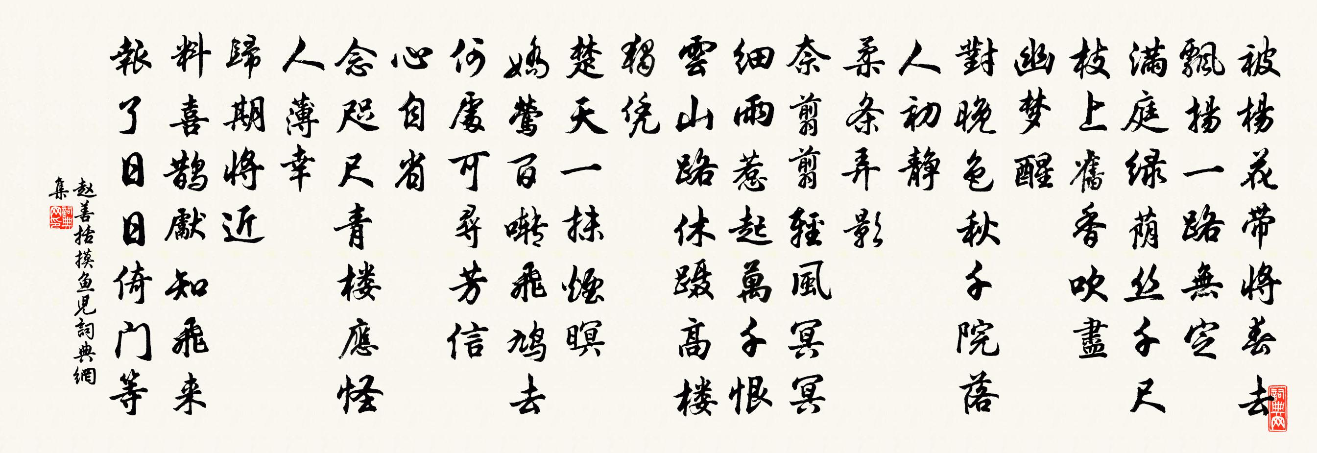 - 闌乾倚遍重來憑。淚粉偷將紅袖印。