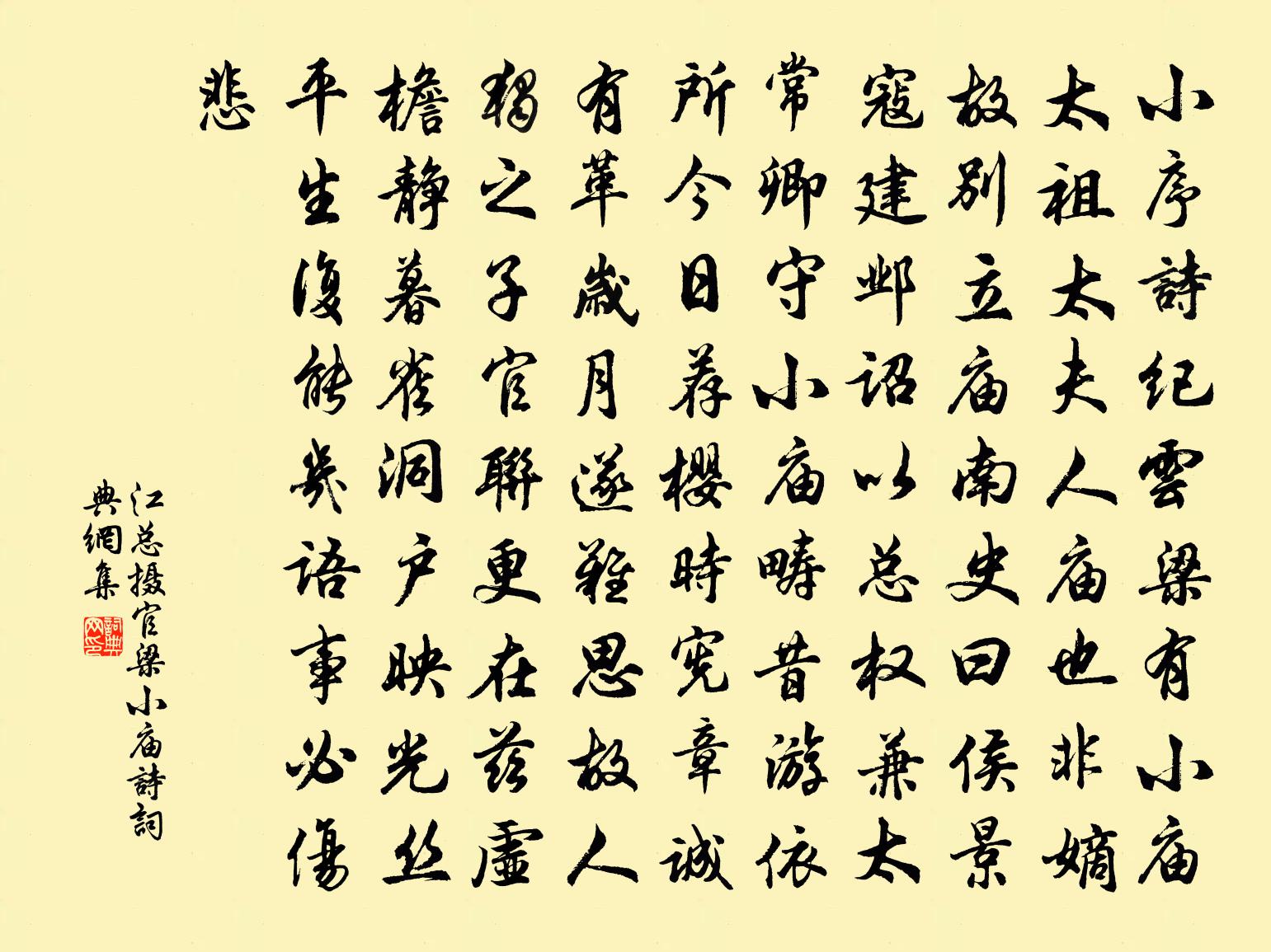 詩詞名句歷史字典書法欣賞書法字典國語詞典說文解字康熙字典古漢語字典標 題 作 者 詩 句 攝官梁小廟詩作者:江總 朝代:隋代攝官梁小廟詩原文小序詩紀雲。梁有小廟。太祖太夫人廟也。非嫡故別立廟。南史曰。侯景寇建鄴。詔以總權兼太常卿守小廟。疇昔游依所。今日薦櫻時。憲章誠有革。歲月遂難思。故人獨之子。官聯更在茲。虛檐靜暮雀。洞戶映光絲。平生復能幾。語事必傷悲。詩詞問答問:攝官梁小廟詩的作者是誰?答:江總問:攝官梁小廟詩寫於哪個朝代?答:隋代江總攝官梁小廟詩書法欣賞攝官梁小廟詩書法作品詩詞推薦竹易元矩〔宋代〕一別虞妃去未還,愁雲空鎖九疑山。世間多少相思淚,灑遍修篁染不斑。摸魚兒(高愛山隱居)張炎〔宋代〕愛吾廬、傍湖千頃,蒼茫一片清潤。晴嵐暖翠融融處,花影倒窺天鏡。沙浦迥。看野水涵波,隔柳橫孤艇。眠鷗未求志書院詩四首陳師道履常之所居也李廌〔宋代〕君氣久已浩,君志復何求。同聲久絕和,一見忘百憂。藜藿鄙膏粱,絺綌傲孤裘。德輝下可覽,安用翔九州。送令狐補闕歸朝皮日休〔唐代〕文如日月氣如虹,舉國重生正始風。且願仲山居左掖,只憂徐邈入南宮。朝衣正在天香里,諫草應焚禁漏中。為說清溪路中寄諸公(一作寄韋於二侍御)崔備〔唐代〕偏郡隔雲岑,回溪路更深。少留攀桂樹,長渴望梅林。野筍資公膳,山花慰客心。別來無信息,可謂井瓶沉。陌上桑李白〔唐代〕美女渭橋東,春還事蠶作。五馬如飛龍,青絲結金絡。不知誰家子,調笑來相謔。妾本秦羅敷,玉顏艷名都。綠條行香子明本〔元代〕四序無窮。萬物皆同。守空門、佛祖家風。香菸裊白,燭影搖紅。對翠梧桐,金菡萏,玉芙蓉。潦倒山翁。少小頑夜飲呈葉司戶張鎡〔宋代〕僂指摳衣日,於今歲六移。步趨徒願學,憂患亦何為。窗曉鴉同起,天寒雁引悲。依仁方再幸,小耐了康時。臨川道中護國〔唐代〕出谷入谷路迴轉,秋風已至歸期晚。舉頭何處望來蹤,萬仞千山鳥飛遠。偈頌八十七首釋慧開〔宋代〕陰極陽生,日添一線。獨有山僧拄杖子,不屬陰陽遷變。使北文天祥〔宋代〕江南浪子是何官,只當空廬雜劇看。撥取公卿如糞土,沐猴徒自辱衣冠。董桃行陸機〔魏晉〕和風習習薄林。柔條布葉垂陰。鳴鳩拂羽相尋。倉庚喈喈弄音。感時悼逝傷心。日月相追周旋。萬里倐忽幾年。人舟早行將至三界偶成杜范〔宋代〕辭京塵漸遠,入越思逾清。雨壑溪方漲,風帆去又輕。天光浮水闊,山色帶雲橫。更問鄉關路,從今尚幾程。道中寄公壽黃庭堅〔宋代〕坡陀羸馬暮雲昏,苦憶兔園高帝孫。子舍芝蘭皆可佩,後房桃李總能言。鞦韆門巷火新改,桑柘田園春向分。病酒宮詞胡仲弓〔宋代〕認答案花開笑語聲,敢將薄倖訴衷情。祝君聖壽千秋歲,妾願年年引駕行。春禽雜言洪咨夔〔宋代〕倉庚倉庚,集谷之苕。謂汝也幽,而豈其喬。勃鳩勃鳩,有安斯巢。矜婦之功,不念鵲勞。決決杜鵑,念歸何悲。九日幸臨渭亭登高應制得歷字薛稷〔唐代〕暮節乘原野,宣游俯崖壁。秋登華實滿,氣嚴鷹隼擊。仙菊含霜泛,聖藻臨雲錫。願陪九九辰,長奉千千歷。哭左次魏二首劉克莊〔宋代〕甫痛何郎夭,丘明亦復然。因思題墓上,不若斗樽前。劍馬為誰得,琴書有女傳。惟應千載下,配食雪堂仙。題陳宗元拂雲軒曾豐〔宋代〕灘西地不愛其珍,虎豹文章善自陳。縹節猶儲何尉粉,緗苞不納庾公塵。性高霜雪摧難折,氣直風雷拔易伸。寄語靜觀堂十偈汪晫〔宋代〕長空一望如水碧,泉潤幽幽風淅淅。驚人暑退寒漸生,蓼染春紅映素壁。名句推薦俯瞰黃河小,高懸白雪清。胡秉正《詠賀蘭山》 孤村芳草遠,斜日杏花飛。寇準《江南春·波渺渺》 女為君子儒,無為小人儒。孔子弟子《論語·雍也篇》 疾雷不及塞耳,疾霆不暇掩目。劉安及其門客《淮南子·兵略訓》 秋色到空閨,夜掃梧桐葉。夏完淳《卜運算元·秋色到空閨》 行得春風,指望夏雨馮夢龍《警世通言·卷二十五》 握手西風淚不乾,年來多在別離間。納蘭性德《於中好·送梁汾南還為題小影》 離愁正引千絲亂,更東陌、飛絮蒙蒙張先《一叢花令·傷高懷遠幾時窮》 還始覺、留情緣眼,寬頻因春。吳文英《渡江雲三犯·西湖清明》 江碧鳥逾白,山青花欲燃。杜甫《絕句二首》