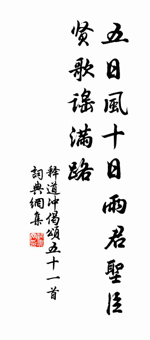 詩詞名句歷史字典書法欣賞書法字典國語詞典說文解字康熙字典古漢語字典標 題 作 者 詩 句 偈頌五十一首作者:釋道沖 朝代:宋代偈頌五十一首原文五日風,十日雨。君聖臣賢,歌謠滿路。詩詞問答問:偈頌五十一首的作者是誰?答:釋道沖問:偈頌五十一首寫於哪個朝代?答:宋代釋道沖偈頌五十一首書法欣賞偈頌五十一首書法作品詩詞推薦題九江徐使君眄柯亭李處權〔宋代〕庭植何夭矯,蒼皮余雨溜。本非尋常材,歲月方成就。偉此蕭散姿,眄睞揖孤秀。慕陶築斯亭,千載可同臭。引杖程帥寄詩見憶次韻四首陳造〔宋代〕子云屬思舊深沉,脫手清詩語間新。天上黃陳應首肯,授公此柄淑諸人。過蕪留詠南野〔宋代〕湖山夢不到襄闈,六載沈酣一出遲。漁子能言飛渡處,市翁親見潰師時。權臣貴戚戈相藉,北槳南牆風背馳。事逐澠池強至〔宋代〕古邑人煙陝雒間,馬蹄車轍許誰閒。不堪曉雨妨行興,猶喜秋風慰客顏。老去稍知筋力倦,年來只益鬢毛斑。相如句李公寅〔宋代〕嶺分東粵封疆闊,天限中原氣象雄。寄外劉彤〔宋代〕盡扇停揮白日長,清風細細襲羅裳。女重來報新簪熟,安得良人共一觴。再用恢大山韻三首方回〔宋代〕官罷賓客散,家貧僮僕頑。尚有此阿堵,苔錢何斑斑。酒從田父飲,果聽鄰人攀。四壁夜無盜,焉在門常關。浪作客兒亭楊蟠〔宋代〕昔日林間汪,風流謝客兒。春山花又發,不見屐來時。大雲寺二十韻元稹〔唐代〕地勝宜台殿,山晴離垢氛。現身千佛國,護世四王軍。碧耀高樓瓦,赬飛半壁文。鶴林縈古道,雁塔沒歸雲。幡影李白書堂柯敬之〔宋代〕久欲華山訪謫仙,謫仙書舍尚依然。青松翠柏疑無路,流水高山別有天。千片浮雲飛碧漢,一聲啼鳥破蒼煙。扶筇滿江紅衛宗武〔宋代〕屑玉飛霙,正堪稱、馮夷展布。空幾度、痴雲凝聚,狂風掀舞。點點拋揚珠作霰,纖纖斷續絲垂雨。借銀河、翦刻書卻暑圖後吳可〔宋代〕冰柱雪車誰復作,礬頭凌面未能摹。北窗揮汗渾無奈,漫借君家卻暑圖。爇心香 重陽分梨十化貪集卷上王哲〔元代〕謔號王風。實有仙風。性通禪、釋貫儒風。清談吐玉,落筆如風。解著長篇,揮短句,古詩風。斤運成風。鵬化摶憶秦娥朱淑真〔宋代〕彎彎曲,新年新月鉤寒玉。鉤寒玉,鳳鞋兒小,翠眉兒蹙。鬧蛾雪柳添妝束,燭龍火樹爭馳逐。爭馳逐,元宵三五句釋延壽〔宋代〕言前體道乾坤窄,筆下搜吟海岳枯。榕村田家趙文〔宋代〕門外蕭疏竹數行,小池聊可浴滄浪。木床留向竹陰下,兒踏田歸話晚涼。相和歌辭。襄陽曲李端〔唐代〕襄陽堤路長,草碧楊柳黃。誰家女兒臨夜妝,紅羅帳里有燈光。雀釵翠羽動明璫,欲出不出脂粉香。同居女伴正衣宿鄠郊贈羅處士李洞〔唐代〕川靜星高櫟已枯,南山落石水聲粗。白雲釣客窗中宿,臥數嵩峰聽五湖。送梁李二明府陳子昂〔唐代〕負書猶在漢。懷策未聞秦。復此窮秋日。芳樽別故人。黃金裝屢盡。白首契逾新。空羨雙鳧舄。俱飛向玉輪。踏莎行張掄〔宋代〕雪擁群峰,靜□□□。□□□□□居□。□□破殼栗黃香,柴□□□□□□。□□□□,□和衣倒。寂寥氣□□君名句推薦誠既勇兮又以武,終剛強兮不可凌。屈原《國殤》 強攜酒、小橋宅,怕梨花落盡成秋色。姜夔《淡黃柳·空城曉角》 門外垂楊岸側,畫橋誰系蘭舟。万俟詠《木蘭花慢·恨鶯花漸老》 酒困路長惟欲睡,日高人渴漫思茶。蘇軾《浣溪沙·簌簌衣巾落棗花》 誰向若耶溪上,倩美人西去,麋鹿姑蘇。辛棄疾《漢宮春·會稽蓬萊閣懷古》 長風蕭蕭渡水來,歸雁連連映天沒。盧思道《從軍行》 七國三邊未到憂,十三身襲富平侯李商隱《富平少侯》 飛雲當面化龍蛇,夭矯轉空碧。秦觀《好事近·夢中作》 自在飛花輕似夢,無邊絲雨細如愁。秦觀《浣溪沙·漠漠輕寒上小樓》 顛狂柳絮隨風去,輕薄桃花逐水流。杜甫《絕句漫興九首·其五》
