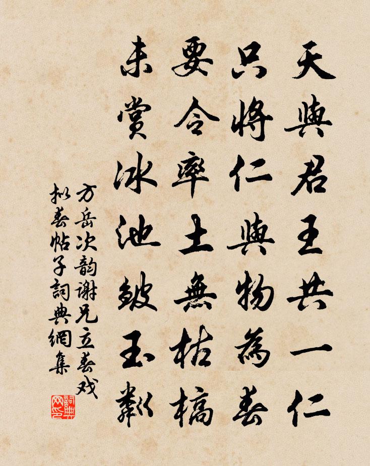 詩詞名句歷史字典書法欣賞書法字典國語詞典說文解字康熙字典古漢語字典標 題 作 者 詩 句 次韻謝兄立春戲擬春帖子作者:方岳 朝代:宋代次韻謝兄立春戲擬春帖子原文天與君王共一仁,只將仁與物為春。要令率土無枯槁,未賞冰池皺玉粼。詩詞問答問:次韻謝兄立春戲擬春帖子的作者是誰?答:方岳問:次韻謝兄立春戲擬春帖子寫於哪個朝代?答:宋代方岳次韻謝兄立春戲擬春帖子書法欣賞次韻謝兄立春戲擬春帖子書法作品詩詞推薦如有李商隱〔唐代〕如有瑤台客,相難復索歸。芭蕉開綠扇,菡萏薦紅衣。浦外傳光遠,煙中結響微。良宵一寸焰,回首是重幃。得旨與郡歸自浙東余成卿王貫之葉德還追送至虞儔〔宋代〕懷抱連宵得好開,莫愁波浪與塵埃。中年已是難離別,此地何妨數往來。送我扁舟寧作遠,喚人歸鳥苦相催。邈然一剪梅·詠柳夏完淳〔明代〕無限傷心夕照中,故國淒涼,剩粉余紅。金溝御水日西東。昨歲陳宮,今歲隋宮。往事思量一餉空,飛絮無情,依滿庭芳(賦湘梅)周密〔宋代〕玉沁唇脂,香迷眼纈,肉紅初映仙裳。湘皋春冷,誰翦茜雲香。疑是潘妃乍起,霞侵臉、微印宮妝。還疑是,壽陽南歌子朱彝尊〔清代〕忍淚潛窺鏡,催歸懶下階。臨去不勝杯。為郎回一盼,強兜鞋。次韻和永叔雨中寄原甫舍人梅堯臣〔宋代〕賴得春巢燕未歸,高檐終日雨衰衰。細籠芳草踏青後,欲打梨花寒食時。美景已嗟空過盡,名園猶許悞相隨。錦鞍鷓鴣天(題趙次山魚樂堂)戴復古〔宋代〕圉圉洋洋各自由。或行或舞或沉浮。觀魚未必知魚樂,政恐清波照白頭。休結綱,莫垂鉤。機心一露使魚愁。終知呂與叔挽章四首秦觀〔宋代〕風流雲散了無餘,天祿空存舊直廬。小吏獨來開鎖鑰,案頭塵滿校殘書。送張無夢歸天台孫奭〔宋代〕笑背芙蓉闕,東南望海涯。雲章藏綠蘊,鶴馭拂青霞。台嶺攀新桂,桃源訪舊花。鳴騶須再去,莫泛客星槎。歲旦立春張鎡〔宋代〕天心歷數本相同,何事偏窺造化功。蒼震欲承乾健力,歲端春肇一時中。澗舖嶺道中四首趙蕃〔宋代〕近岫披晴霧,遙山縱雨雲。皚皚疑雪積,莽莽若江分。次酬陳雲谷劉黻〔宋代〕書空咄咄懶題詩,深愧敲門客問奇。向晚小窗閒遠眺,西風吹霧出秋峗。宿清溪主人李白〔唐代〕夜到清溪宿,主人碧岩里。檐楹掛星斗,枕席響風水。月落西山時,啾啾夜猿起。從龍潭寺至少林寺題贈同游者白居易〔唐代〕山屐田衣六七賢,搴芳蹋翠弄潺湲。九龍潭月落杯酒,三品松風飄管弦。強健且宜游勝地,清涼不覺過炎天。始知宋江三十六贊龔開〔宋代〕行軍出師,其鋒必先。汝勿銳進,天兵在前。端午帖子皇帝合六首歐陽修〔宋代〕聖主憂勤致治平,仁風惠澤被群生。自然四海歸文德,何用靈符號辟兵。官莊池觀競渡儲光羲〔唐代〕落日 * 管,清池發棹歌。船爭先後渡,岸激去來波。水葉藏魚鳥,林花間綺羅。踟躕仙女處,猶似望天河。百花洲雜題黃庭堅〔宋代〕范公種竹水邊亭,漂泊來游一客星。神理不應從此盡,百年草樹至今青。苦吟崔塗〔唐代〕朝吟復暮吟,只此望知音。舉世輕孤立,何人念苦心。他鄉無舊識,落日羨歸禽。況住寒江上,漁家似故林。題人畫扇十首曹勛〔宋代〕寬圍綠野正華滋,放牧橫溪草軟時。跪乳從茲富原顯,尚羔先喜詠來思。名句推薦醉中渾不記,歸路月黃昏辛棄疾《臨江仙·探梅》 獨倚畫欄如有意,清砧怨笛送黃昏。曹雪芹《詠白海棠》 萬壑樹參天,千山響杜鵑。王維《送梓州李使君》 兄弟之際,異於他人,望深則易怨,地親則易弭。顏之推《顏氏家訓·兄弟篇》 無那塵緣容易絕,燕子依然,軟踏簾鉤說。納蘭性德《蝶戀花·辛苦最憐天上月》 一襟余恨宮魂斷,年年翠陰庭樹。仇遠《齊天樂·蟬》 人生一世,草長一春。佚名《增廣賢文·上集》 一片春愁待酒澆。江上舟搖,樓上簾招。蔣捷《一剪梅·舟過吳江》 橫眉冷對千夫指,俯首甘為孺子牛。魯迅《自嘲》 松樹千年終是朽,槿花一日自為榮。白居易《放言五首·其五》