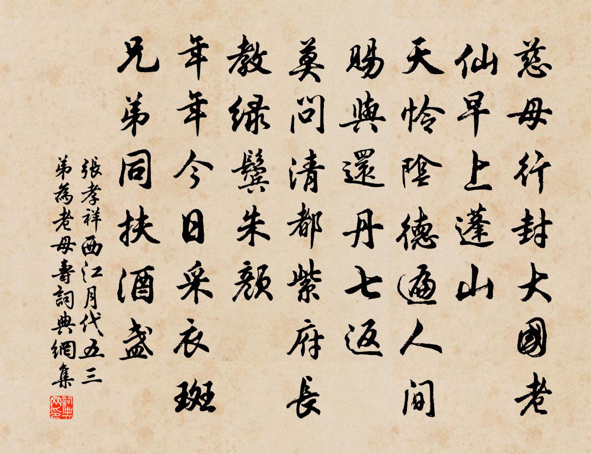 慈母行封大國,老仙早上蓬山。天憐陰德遍人間。