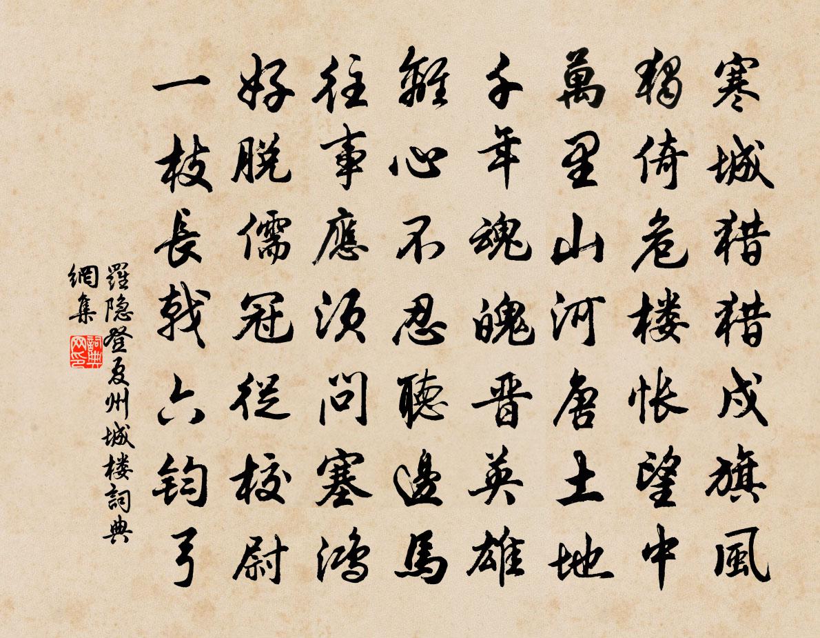 寒城獵獵戍旗風,獨倚危樓悵望中。萬里山河唐土地,千年魂魄晉英雄。