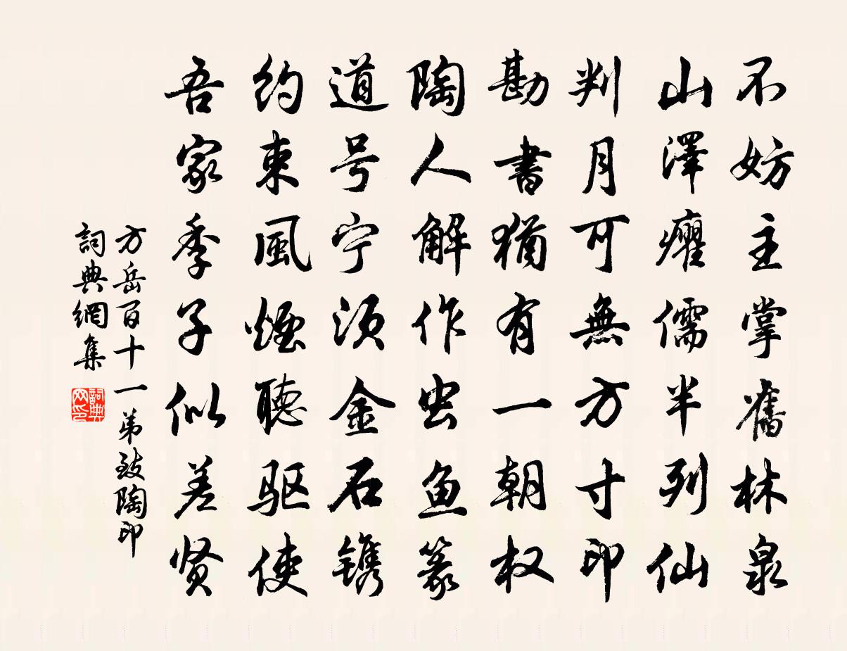 詩詞名句歷史字典書法欣賞書法字典國語詞典說文解字康熙字典古漢語字典標 題 作 者 詩 句 百十一弟致陶印作者:方岳 朝代:宋代百十一弟致陶印原文不妨主掌舊林泉,山澤癯儒半列仙。判月可無方寸印,勘書猶有一朝權。陶人解作蟲魚篆,道號寧須金石鐫。約束風煙聽驅使,吾家季子似差賢。詩詞問答問:百十一弟致陶印的作者是誰?答:方岳問:百十一弟致陶印寫於哪個朝代?答:宋代方岳百十一弟致陶印書法欣賞百十一弟致陶印書法作品詩詞推薦早發潼關吳融〔唐代〕天邊月初落,馬上夢猶殘。關樹蒼蒼曉,玉階澹澹寒。宦遊終自苦,身世靜堪觀。爭似山中隱,和雲枕碧湍。寄贈詩僧秀公司空圖〔唐代〕靈一心傳清塞心,可公吟後礎公吟。近來雅道相親少,惟仰吾師所得深。好句未停無暇日,舊山歸老有東林。冷曹次韻貽侄方岳〔宋代〕鶴形煉得不勝癯,樵笛漁竿只自娛。人倚草亭今夜月,天開山市晚晴圖。片雲留住吾焉往,斗酒能攜誰與俱。三十華嚴庵李廌〔宋代〕人生奧區中,猶如繭中蠶。欲窮無然心,足力有不堪。終南有五虎,銜牙坐耽耽。乃有忘軀人,臨穴已擬探。干將亨杞下第作詩示之司馬光〔宋代〕清白君家舊,文章時態新。何妨偶蹉跌,未必遂沉淪。莫嘆科名晚,惟憂道誼貧。進修專在已,得失盡由人。孝友渡江雲三犯/渡江雲吳文英〔宋代〕羞紅花顰淺恨,花晚風為落,片繡點重茵。舊堤分燕尾,桂棹輕鷗,寶勒倚殘雲。千絲怨碧,漸路入、仙塢迷津。送綿襖與東岡釋紹曇〔宋代〕羅紋結角見蹤由,翻著從教刺眼休。線路放開綿密密,瞿曇踢出腳尖頭。柏堂蘇軾〔宋代〕道人手種幾生前,鶴骨龍筋尚宛然。雙乾一先神物化,九朝三見太平年。忽驚華構依岩出,乞與佳名到處傳。此柏偈六十九首釋道寧〔宋代〕報慈一要,凡聖同妙。犬吠驢鳴,龍吟虎嘯。道吾樂神,師巫祭廟。雨過山青,雲收日照。拾得與寒山,不覺呵呵行住坐臥三十二頌釋印肅〔宋代〕歷劫塵沙積竇岩,十方諸佛共同參。多寶聞經親湧現,故非柏梓與松杉。水調歌頭 題西山秋爽圖納蘭性德〔清代〕空山梵唄靜,水月影俱沈。悠然一境人外,都不許塵侵。歲晚憶曾游處,猶記半竿斜照,一抹映疏林。絕頂茅庵里真歡樂 繼重陽韻馬鈺〔元代〕酒色氣財關遠*。事務簡、當而略。方堪可、水裡尋金,固元初、修持仙藥。鍛鍊須教明更灼。祥煙自然磅礴。這上灘葉適〔宋代〕篙師上灘時,面作石皤樣。及其進尺寸,乃在一偃仰。神禹不到地,狂流終播盪。逆順本天力,人謀不相讓。苦戰書事舒岳祥〔宋代〕倚徙白頭杖,哀傷赤子兵。斜封今不用,直指近方行。商鞅何妨徇,桑羊儘可烹。擊蒙須用此,盡箠惜刑輕。偈頌八十七首釋慧開〔宋代〕摧邪顯正,一印印定。盡大地人,諦聽諦聽。春齋夜雨憶郭通微武元衡〔唐代〕桃源在在阻風塵,世事悠悠又遇春。雨滴閒階清夜久,焚香偏憶白雲人。虞美人向滈〔宋代〕酒闌敧枕新涼夜。斷盡人腸也。西風吹起許多愁。不道沈腰潘鬢、不禁秋。如今病也無人管。真箇難消遣。東鄰一鷓鴣天李鼐〔宋代〕珍重高人閻右丞。胸中丘壑富丹青。暫從天下分軺使,來向人間作壽星。涼日掛,暑風輕。一番秋思十分清。細傾庚申元日口號陸游〔宋代〕仁和館外列鵷行,憶送龍舟幸建康。舍北老人同甲子,相逢揮淚說高皇。荔枝徐寅〔唐代〕日日薰風卷瘴煙,南園珍果荔枝光。靈鴉啄破瓊津滴,寶器盛來蚌腹圓。錦里只聞消醉渴,蕊宮惟合贈神仙。何人名句推薦春酒香熟鱸魚美,誰同醉?纜卻扁舟篷底睡。李珣《南鄉子·雲帶雨》 汴水流,泗水流,流到瓜州古渡頭。吳山點點愁白居易《長相思·汴水流》 一水護田將綠繞,兩山排闥送青來王安石《書湖陰先生壁》 風吹古木晴天雨,月照平沙夏夜霜。白居易《江樓夕望招客》 造化鍾神秀,陰陽割昏曉。杜甫《望岳》 桃花春色暖先開,明媚誰人不看來。周朴《桃花》 不種閒花,池亭畔、幾竿修竹。陸容《滿江紅·詠竹》 不知命,無以為君子也;不知禮,無以立也;不知言,無以知人也。孔子弟子《論語·堯曰篇》 千雷萬霆,激繞其身,霰雪雨雹,一時皆下。李朝威《柳毅傳》 半生已分孤眠過,山枕檀痕涴。納蘭性德《虞美人·曲闌深處重相見》
