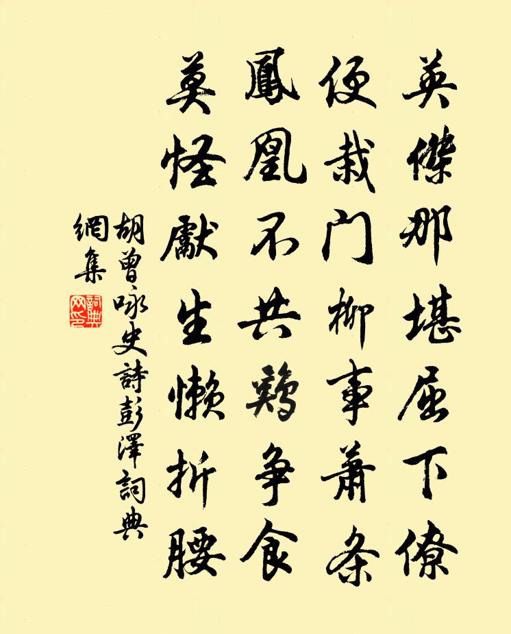 詩詞名句歷史字典書法欣賞書法字典國語詞典說文解字康熙字典古漢語字典標 題 作 者 詩 句 詠史詩彭澤作者:胡曾 朝代:唐代詠史詩彭澤原文英傑那堪屈下僚,便栽門柳事蕭條。鳳凰不共雞爭食,莫怪先生懶折腰。詩詞問答問:詠史詩彭澤的作者是誰?答:胡曾問:詠史詩彭澤寫於哪個朝代?答:唐代問:詠史詩彭澤是什麼體裁?答:七絕胡曾詠史詩彭澤書法欣賞詠史詩彭澤書法作品注釋全唐詩:卷647-110詩詞推薦九月一日夜宿盈川市楊萬里〔宋代〕下灘一日抵三程,到得盈川也發更。兩岸漁樵稍燈火,滿江風露更波聲。病身只合山間老,半世長懷客里情。西畔代書寄吉十一張說〔唐代〕一雁雪上飛,值我衡陽道。口銜離別字,遠寄當歸草。目想春來遲,心驚寒去早。憶鄉乘羽翮,慕侶盈懷抱。零落道中得雨郭印〔宋代〕暖律潛開四序先,土牛何處不施鞭。道逢宿雨連新雨,人說今年勝舊年。和氣薰蒸還率土,堪恩汪濊仰高天。甲兵贈蕭巽齋文天祥〔宋代〕未有大撓書,先有伏羲易。古人尚卜筮,今人信命術。八卦與五行,皆自河圖出。易中元有命,道一萬事畢。卦義殘春感事十首方回〔宋代〕登高高處望,萬嶂一溪橫。不滿千家市,今休十載兵。訓狐號永夜,猛虎迫荒城。此亦關人事,憂端未易平。暑中客懷董嗣杲〔宋代〕飄蓬於此趣何迂,破卻牢愁是酒壺。世上利名休羨有,胸中丘壑不應無。秋侵客鬢從添白,春滿侯門亦謾朱。無地寄羅機宜竟陵督捕六首項安世〔宋代〕萬仞山根螻蟻,千車轍底螳琅。不怕{左麥右豐}蕡嬰刃,只尤玉石焚罔。吾廬吟邵雍〔宋代〕吾廬雖小粗容身,且免輕為僦舍人。大有世人無屋住,向人檐下索溫存。岳大用寺簿惠佩力袁說友〔宋代〕文陣談鋒不可當,小恢遊刃向朝行。一夫敵爾嗟長劍,十九人中見潁囊。徐子身非逢季札,呂虔心已識王祥。善刀雪後況湖歌戴表元〔宋代〕君不見明州城日月湖,縈藍繚白如畫圖。良時樂游古心亦有,何人破雪浮官廚。金猊暖奈紅氍毹,紫貂醉拂青珊瑚無夢令 繼重陽韻馬鈺〔元代〕師父說開顛倒。別是一般運造。外事削來無,便得裡頭尋討。大道。大道。清淨身有丹灶。題畫陳與義〔宋代〕分明樓閣是龍門,亦有溪流曲抱村。萬里家山無路入,十年心事有誰論。村居書事四首劉克莊〔宋代〕刮膜神方直萬金,國醫曾費一生心。可憐髽髻提籃者,也有盲人問點鍼。紀游張庭薦〔宋代〕馬行諳舊路,雞唱認層巔。洞口有桃處,江村欲雪天。薰爐香琬刻,洗杓汲靈泉。我愛長留此,山深日似年。贈汪孝子孟益〔宋代〕循善無疑報自天,一身耆艾子孫蕃。好將姓字聞朝著,旌市居為孝弟村。謁金門陳允平〔宋代〕春又晚。枝上綠深紅淺。燕語呢喃明似翦。采香人漸遠。草色池塘碧軟。絲竹誰家坊院。拂拂和風初著扇。蜂情愁和桃源宰趙存禮韻陽枋〔宋代〕三時不害試鳩工,築鑒輪輿職自攻。利器祗因盤錯見,淳風須信古今同。野花桃三谷逢好,春草池塘待雪融。洞口玩殘花楊發〔唐代〕十日濃芳一歲程,東風初急眼偏明。低枝似泥幽人醉,莫道無情似有情。桂源鋪楊萬里〔宋代〕萬山不許一溪奔,攔得溪聲日夜喧。到得前頭山腳盡,堂堂溪水出前村。雲徐夤〔唐代〕漠漠沈沈向夕暉,蒼梧巫峽兩相依。天心白日休空蔽,海上故山應自歸。似蓋好臨千乘載,如羅堪剪六銖衣。為霖名句推薦若得山花插滿頭,莫問奴歸處。嚴蕊《卜運算元·不是愛風塵》 貧居鬧市無人問,富在深山有遠親。佚名《增廣賢文·上集》 佳人應怪我,別後寡信輕諾。柳永《尾犯·夜雨滴空階》 夜深斜搭鞦韆索,樓閣朦朧煙雨中。韓偓《夜深 / 寒食夜》 莫買沃洲山,時人已知處。劉長卿《送方外上人/送上人》 海棠不惜胭脂色,獨立濛濛細雨中。陳與義《春寒》 斷無蜂蝶慕幽香,紅衣脫盡芳心苦。賀鑄《芳心苦·楊柳回塘》 去年燕子天涯,今年燕子誰家?張炎《清平樂·采芳人杳》 裳裳者華,其葉湑兮。佚名《裳裳者華》 泥落畫梁空,夢想青春語。吳文英《生查子·秋社》