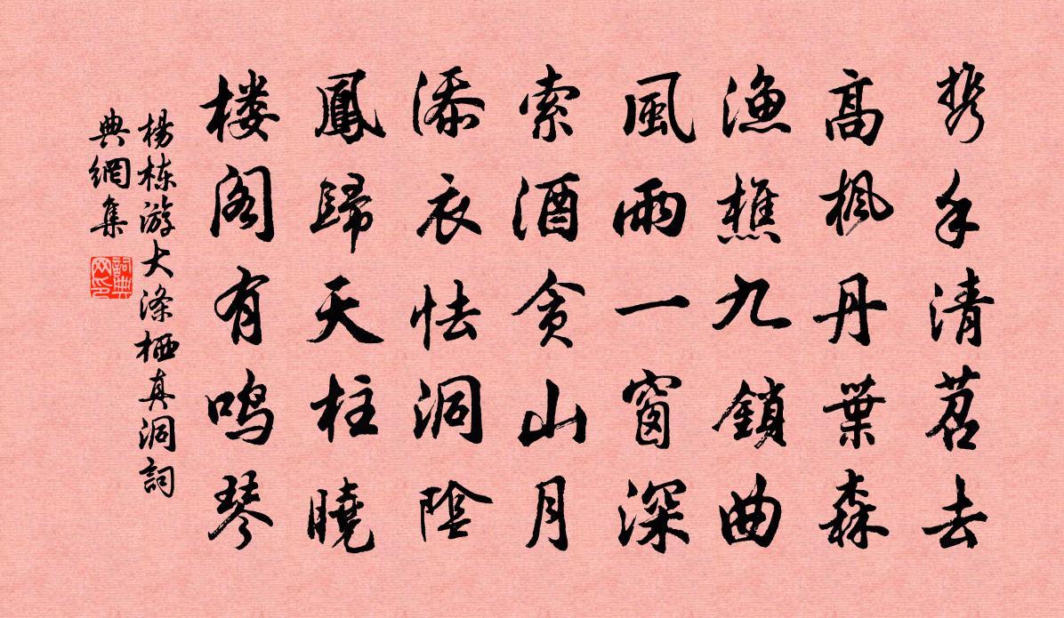 詩詞名句歷史字典書法欣賞書法字典國語詞典說文解字康熙字典古漢語字典標 題 作 者 詩 句 游大滌棲真洞作者:楊棟 朝代:宋代游大滌棲真洞原文攜手清苕去,高楓丹葉森。漁樵九鎖曲,風雨一窗深。索酒貪山月,添衣怯洞陰。鳳歸天柱曉,樓閣有鳴琴。詩詞問答問:游大滌棲真洞的作者是誰?答:楊棟問:游大滌棲真洞寫於哪個朝代?答:宋代楊棟游大滌棲真洞書法欣賞游大滌棲真洞書法作品詩詞推薦禪人並化主寫真求贊釋正覺〔宋代〕緘默之妙,本光自照。鑒物之真,眼裡有筋。出氣之快,鼻頭有竅。見道之根,德象之要。處處相應兮,不余不少下第送張霞歸覲江南李洞〔唐代〕此道背於時,攜歸一軸詩。樹沈孤鳥遠,風逆蹇驢遲。草入吟房壞,潮沖釣石移。恐傷歡覲意,半路摘愁髭。和陶勸農韻勉吾鄉之學者吳芾〔宋代〕縱得美官,人亦見鄙。若博群書,更堅素履。雖處常流,亦超塵軌。一旦進為,必兼眾美。臨江仙葉夢得〔宋代〕山半飛泉鳴玉佩,回波倒卷粼粼。解巾聊濯十年塵。青山應卻怪,此段久無人。行樂應須賢太守,風光過眼逡巡。周祀方澤歌 皇夏庾信〔南北朝〕司筵撤席。掌禮移次。回顧封壇。恭臨坎位。瘞玉埋俎。藏芬斂氣。是曰就幽。成斯地意。李總乾遺詩十四句師於一句之下加頌七句釋印肅〔宋代〕便道福相隨,生末果未遲。力盡簡還墜,來生不如意。假施滿七寶,不如發真歸。布施有為者,觀來真自迷。亡伯母同安縣君楊氏輓詞蘇轍〔宋代〕德盛諸楊族,賢宜伯父家。周姜職苹藻,歜母事桑麻。大邑移封近,陰堂去日賒。空餘鏡奩在,時出舊笄珈。赴試途中有感李鴻章〔清代〕驪歌緩緩度離筵,正與親朋話別天。此去但教磨鐵硯,再來唯望插金蓮。即今館閣需才日,是我文章報國年。覽鏡閔雨詩李覯〔宋代〕吳江之南,是曰豐國。五種之生天下食,一歲不登,吾民菜色。如何天不仁,縱彼旱孽稱其神。矯矯赤龍推火軒,夢揚州秦觀〔宋代〕晚雲收。正柳塘、煙雨初休。燕子未歸,惻惻清寒如秋。小闌外、東風軟,透繡帷、花蜜香稠。江南遠,人何處,挽樂全宋丈二首黃公度〔宋代〕吾道初彫喪,斯文竟老成。一經貽子訓,萬石擅家聲。棠棣春陰重,芝蘭晚節榮。餘芳知未泯,奕世有簪纓。春日雜書朱淑真〔宋代〕門前春水碧於天,座上詩人逸似仙。白璧一雙無玷缺, * 歸去又無緣。季秋十九日追還學士院回舟入都作二首宋祁〔宋代〕上恩留不遣,仍棹越船回。人忝玉堂署,魚還符節台。危心摧櫓罷,病眼刮雲開。讀遍淮南詔,慚非視草才。游金山二首吳芾〔宋代〕欲向南昌去,先為北固行。泛舟游寺古,倚檻看江清。久作市朝客,喜聞鐘磬聲。登臨曾未竟,已足快平生。送徐州張建封還鎮李适〔唐代〕牧守寄所重,才賢生為時。宣風自淮甸,授鉞膺藩維。入覲展遐戀,臨軒慰來思。忠誠在方寸,感激陳情詞。報國朝中措趙師俠〔宋代〕疏疏簾幕映娉婷。初試曉妝新。玉腕雲邊緩轉,修蛾波上微顰。鉛華淡薄,輕勻桃臉,深注櫻唇。還似舞鸞窺沼,送季平道中四絕鄭剛中〔宋代〕霜風落葉小寒天,去客依依馬不鞭。我最平生苦離別,可能相送不悽然。入常山界二首楊萬里〔宋代〕昨日愁霖今喜晴,好山夾路玉亭亭。一峰忽被雲偷去,留得崢嶸半截青。登金山熊蕃〔宋代〕注海銀成壑,浮空玉作堆。鰲翻三島出,鷲一峰來。塔影波搖動,鐘聲潮拍回。猶嗟禪伯老,虛人妙高台。詩贈晚學李君邢仙老〔宋代〕山家何物是知音,也勝人間枉用心。學就萬年龜喘息,習成千歲鶴呻吟。沖和久養靈通獸,關節常調不死禽。獨對名句推薦共看明月應垂淚,一夜鄉心五處同。白居易《望月有感》 南山與秋色,氣勢兩相高。杜牧《長安秋望》 別路琴聲斷,秋山猿鳥吟。盧照鄰《送梓州高參軍還京》 滿腹詩書漫古今,頻年流落易傷心。宇文虛中《在金日作·選二》 不用訴離觴,痛飲從來別有腸。蘇軾《南鄉子·和楊元素時移守密州》 春透水波明,寒峭花枝瘦。秦湛《卜運算元·春情》 竹影和詩瘦,梅花入夢香。王庭筠《絕句·竹影和詩瘦》 人生何事須聚畜,一身之 外亦復何須。李大師、李延壽《南史·列傳·卷三十三》 翠娥執手送臨歧,軋軋開朱戶柳永《採蓮令·月華收》 更可惜,雪中高樹,香篝熏素被。周邦彥《花犯·小石梅花》