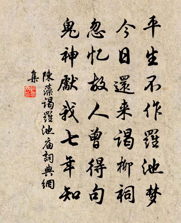 詩詞名句歷史字典書法欣賞書法字典國語詞典說文解字康熙字典古漢語字典標 題 作 者 詩 句 謁羅池廟作者:陳藻 朝代:宋代謁羅池廟原文平生不作羅池夢,今日還來謁柳祠。忽憶故人曾得句,鬼神先我七年知。詩詞問答問:謁羅池廟的作者是誰?答:陳藻問:謁羅池廟寫於哪個朝代?答:宋代陳藻謁羅池廟書法欣賞謁羅池廟書法作品詩詞推薦蝶戀花·辛苦最憐天上月納蘭性德〔清代〕辛苦最憐天上月,一昔如環,昔昔都成玦。若似月輪終皎潔,不辭冰雪為卿熱。無那塵緣容易絕,燕子依然,軟踏寒食日贈同飲者張耒〔宋代〕春城風雨後,花落滿人家。宿潤留芳草,晴輝上曉霞。園林正寒食,樽酒對年華。一笑相逢地,功名莫嘆嗟。次張伯信韻題吳園畫軸蔡戡〔宋代〕誰把吳園較輞川,畫圖猶復想當年。要知故國非喬木,文採風流尚宛然。題二小姬扇二首高翥〔宋代〕慶娘顰翠眉,春瘦怯羅衣。笑問採花蝶,如何成對飛。菩薩蠻馮延巳〔唐代〕畫堂昨夜西風過,繡簾時拂朱門鎖。驚夢不成雲,雙蛾枕上顰。金爐煙裊裊,燭暗紗窗曉。殘月尚彎環,玉箏各淚宿江州藥王寺李曾伯〔宋代〕指點菸林正午鍾,亭亭樓閣有無中。鋪張翠蓋松間日,掃灑紅塵竹外風。啼鳥不驚禪入定,落花無跡色成空。解鞍柳崔櫓〔唐代〕風慢日遲遲,拖煙拂水時。惹將千萬恨,系在短長枝。骨軟張郎瘦,腰輕楚女飢。故園歸未得,多少斷腸思。後漢門子密周曇〔唐代〕子密封侯豈所宜,能高德義必無為。當時若縛還彭氏,率土何憂不自歸。東方有一士馮時行〔宋代〕東方有一士,不見心忡忡。尺璧未足多,夙好良所同。永懷不能寐,攬衣出房櫳。遙夜未渠央,取琴和秋蟲。豈無和趙忠州歸耕之賦陳文蔚〔宋代〕壯年學易計非疏,晚讀人間種樹書。不向雲霄羨鴻鵠,卻來江海瘵舂鋤。感君綠野成歸計,令我青山思故居。只恐減字木蘭花(以下竹齋侑酒辭)沈瀛〔宋代〕竹齋陋止。坐客無氈為客喜。壁不遮風。八達門窗更四通。鄰家覓酒。赤腳扶翁翁老壽。子曰其何。除卻渠儂沒事次韻四絕初得曾孫女樓鑰〔宋代〕外子惟知愧可攻,羨公八十未衰癃。曾孫喜見親文褓,尚想當年擲鏡翁。齊天樂 十八灘舟中夜雨陳澧〔清代〕倦遊枕諳盡江湖枕味,孤篷枕又眠秋雨枕。碎點飄鐙,繁聲落枕,鄉夢更無尋處。幽蛩不語,只斷葦荒蘆,亂垂煙廬山女贈朱朴(鯉魚)佚名〔唐代〕但持冰潔心,不識風霜冷。任是懷禮容,無人顧形影。知君久積池塘夢,遣我方思變動來。操執若同顏叔子,今宵吾友務深有嘆琴之什運使子駿答之佳章務深亦文同〔宋代〕白水滿方湖,山中好秋色。逋翁促瑤軫,來坐湖水側。臨風起高調,此興浩無極。波靜戢游鱗,雲空矯飛翼。蕭條河瀆神張泌〔唐代〕古樹噪寒鴉,滿庭楓葉蘆花。晝燈當午隔輕紗,畫閣珠簾影斜。門外往來祈賽客,翩翩帆落天涯。回首隔江煙火,怨情李白〔唐代〕美人卷珠簾,深坐顰蛾眉。但見淚痕濕,不知心恨誰。稱心寺駱賓王〔唐代〕征帆恣遠尋,逶迤過稱心。凝滯蘅灌岸,沿洄楂柚林。穿漵不厭曲,艤潭惟愛深。為樂凡幾許,聽取舟中琴。春晚偶題范成大〔宋代〕寂寥春事冷於秋,雨打風吹斷送休。點檢梨花成一夢,蘸紅新綠滿枝頭。春閨怨程長文〔唐代〕綺陌香飄柳如線,時光瞬息如流電。良人何處事功名,十載相思不相見。名句推薦靡蕪盈手泣斜暉,聞道鄰家夫婿歸。魚玄機《閨怨》 行盡江南,不與離人遇。晏幾道《蝶戀花·夢入江南煙水路》 槐葉初勻日氣涼,蔥蔥鼠耳翠成雙。范成大《夏日田園雜興》 洛陽親友如相問,一片冰心在玉壺。王昌齡《芙蓉樓送辛漸》 大雪壓青松,青松挺且直。陳毅《青松》 君看石芒碭,掩淚悲千古李白《丁督護歌》 寒眼亂空闊,客意不勝秋。楊炎正《水調歌頭·登多景樓》 蓬生麻中,不扶而直;白沙在涅,與之俱黑。荀子《荀子·勸學》 昨風一吹無人會,今夜清光似往年。白居易《八月十五日夜湓亭望月》 亦余心之所善兮,雖九死其猶未悔。屈原《離騷》