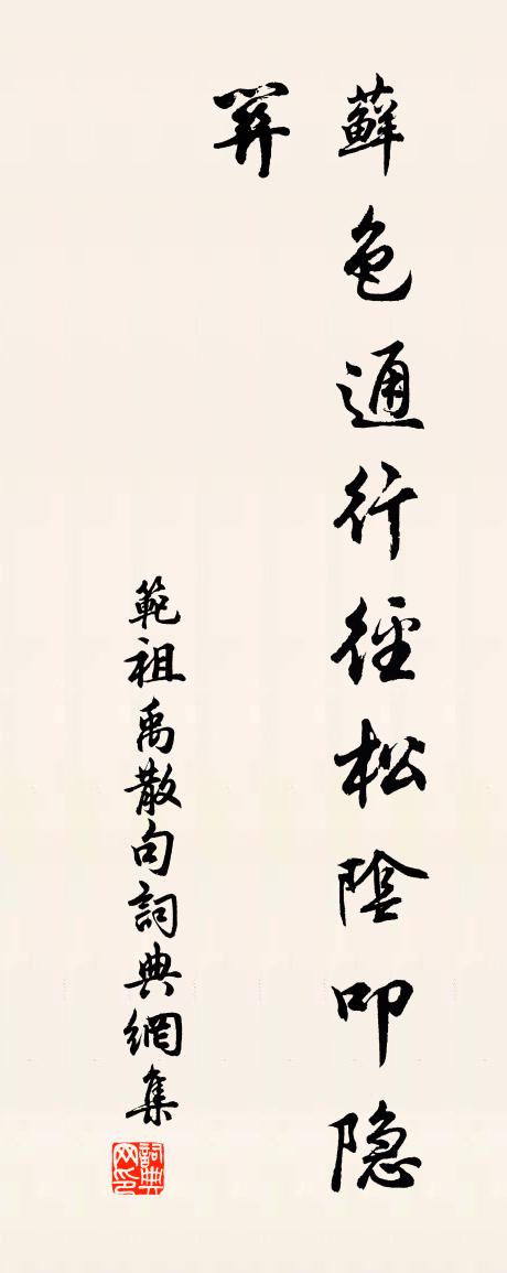 詩詞名句歷史字典書法欣賞書法字典國語詞典說文解字康熙字典古漢語字典標 題 作 者 詩 句 句作者:范祖禹 朝代:宋代句原文蘚色通行徑,松陰叩隱關。詩詞問答問:句的作者是誰?答:范祖禹問:句寫於哪個朝代?答:宋代范祖禹句書法欣賞句書法作品詩詞推薦人日立春極寒陳杰〔宋代〕彩鞭點雨斧如雷,頭上頑雲打不開。冬序方隨人日盡,春愁卻載土牛來。幾多漕運留冰解,何限耕桑要暖回。惟有丘叔喬八十陳藻〔宋代〕樂欲永千年,愁難禁一夕。大家於此且貪生,八十孩兒題向額。今朝門下慶相符,坐有繡衣為上客。況乎二弟古稀偈頌一百二十三首釋普度〔宋代〕見身無實是佛見,了心如幻是佛子。了得身心本性空,斯人與佛何殊別。坐底坐,產底立。觸目遇緣,更非他物。拜星月·高平秋思周邦彥〔宋代〕夜色催更,清塵收露,小曲幽坊月暗。竹檻燈窗,識秋娘庭院。笑相遇,似覺瓊枝玉樹相倚,暖日明霞光爛。水盼宮詞張公庠〔宋代〕御苑名花約萬栽,芳心俱願日華來。春風已暖梅先綻,長恨江南冒雪開。捕盜偶成李若水〔宋代〕去年宋江起山東,白晝橫戈犯城郭。 * 紛紛翦草如,九重聞之慘不樂。大書黃紙飛敕來,三十六人同拜爵。獰卒題張埧夫腴莊圖三首楊萬里〔宋代〕花開還喜落還嗟,君被腴莊惱卻些。何似老夫展橫軸,一朝見盡四時花。宿山中十首劉克莊〔宋代〕路危防陟遠,溪黑阻窮深。涼月如高士,頻招未出林。送杭州使君蘇內相先生某用先生舊詩方丈仙人李廌〔宋代〕至人本無我,與世初無方。強從金鑾游,聊用示行藏。忠清秉全德,日月可爭光。振衣千載上,臨世濯滄浪。凌歊台六首吳芾〔宋代〕簿書終日困拘攣,每到凌歊意豁然。千里日光斜照水,一川草色遠連天。青山頂上玄暉宅,採石江頭太白船。俱在賦半齋送張清卿分教嘉定吳泳〔宋代〕斗城將軍半段鑰,漢宮美人半額妝。碧眼禪僧坐空室,花雨半床雲半窗。道如大路皆可遵,不間不界難為人。卓哉題臥屏十八花杏花葛立方〔宋代〕賴鄉仙種手親栽,春鬧枝頭滿意開。正拂文君酒壚上,莫教蜂蝶等閒來。庚辰二月雪夜作張嵲〔宋代〕夜半雨鳴廊,晨起雪暗空。不減臘月寒,故作昨日風。融銀擁山腰,飛花落裘茸。辦此了不難,咳唾煩天公。纖纖題崇蘭圖二首陳與義〔宋代〕奕奕天風吹角巾,松聲水色一時新。冊林從此不牢落,照影溪頭共六人。寒梅上李舍人鄧肅〔宋代〕窮山觸目紛茅葦,此意昏昏誰可洗。竹間忽破一枝梅,對月嫣然耿寒水。吟詩索酒滿高堂,穿簾的皪射晶光。世上和友人盤石寺逢舊友溫庭筠〔唐代〕楚寺上方宿,滿堂皆舊遊。月溪逢遠客,煙浪有歸舟。江館白蘋夜,水關紅葉秋。西風吹暮雨,汀草更堪愁。贈王仲素寺丞(名景純。)蘇軾〔宋代〕養氣如養兒,棄官如棄泥。人皆笑子拙,事定竟誰迷。歸耕獨患貧,問子何所齎。尺宅足自庇,寸田有餘畦。明珠頌古一百則釋正覺〔宋代〕藤枯樹倒問溈山,大笑呵呵豈等閒。等里有刀窺得破,言思無路絕機關。雜興宋祁〔宋代〕殘暑辭遙夕,初涼澹蕭辰。燕索西飛伴,雁作南來賓。霽巒靜矗矗,遠水清鱗鱗。由來搖落恨,先付長年人。久雨阻西郊之游黃公度〔宋代〕忽忽春將半,冥冥雨未休。過從喧屐齒,追賞負觥籌。詩句那排悶,鶯聲巧喚愁。晴郊饒勝概,何日許同游。名句推薦有天命者任自為之,不汝禁也。脫脫《宋史·本紀·卷三》 復值接輿醉,狂歌五柳前。王維《輞川閒居贈裴秀才迪》 月過十五光明少,人到中年萬事休。佚名《增廣賢文·上集》 長風連日作大浪,不能廢人運酒舫。元結《石魚湖上醉歌》 良藥苦口利於病,忠言逆耳利於行。宋濂、王褘《元史·列傳·卷五十五》 令公桃李滿天下,何用堂前更種花。白居易《奉和令公綠野堂種花》 已見寒梅發,復聞啼鳥聲。王維《雜詩三首 / 雜詠三首》 無限旱苗枯欲盡,悠悠閒處作奇峰。來鵠《雲》 人方為刀俎,我為魚肉司馬遷《史記·項羽本紀》 奉勸世間夫婦,固不可彼此相仇,亦不可過於情篤。沈復《浮生六記·坎坷記愁》