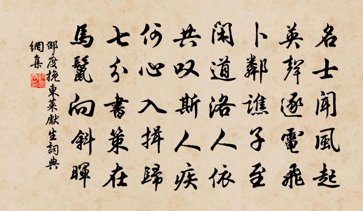 詩詞名句歷史字典書法欣賞書法字典國語詞典說文解字康熙字典古漢語字典標 題 作 者 詩 句 挽東萊先生作者:邵度 朝代:宋代挽東萊先生原文名士聞風起,英聲逐電飛。卜鄰譙子至,閒道洛人依。共嘆斯人疾,何心入揖歸。七分書策在,馬鬣向斜暉。詩詞問答問:挽東萊先生的作者是誰?答:邵度問:挽東萊先生寫於哪個朝代?答:宋代邵度挽東萊先生書法欣賞挽東萊先生書法作品詩詞推薦如夢令向子諲〔宋代〕水之法,乃神仙術也。其香著人不滅,名曰薌林秋露。李長吉詩亦云:“山頭老桂吹古香。”戲作二闋,以貽好事奉和襲美酒中十詠酒壚陸龜蒙〔唐代〕錦里多佳人,當壚自沽酒。高低過反坫,大小隨圓瓿。數錢紅燭下,滌器春江口。若得奉君歡,十千求一斗。夢歸舒岳祥〔宋代〕獨行東孤茅茨屋,回望西牆竹樹坡。愁殺曛黃歸路遠,兵殘人少髑髏多。雨夜懷仁近二首方回〔宋代〕料我今誰識,交君日漸深。相看如骨肉,有志各山林。佐酒無珍具,成詩每痛箴。晝逢常夜別,雨阻定晴尋。祭粹古雲代釋善珍〔宋代〕烏乎古雲,蔚有時譽。執古刀尺,割棄華組。宿鈔成山,臆斷意取。群疑塞胸,耳領心悟。汲汲著書,恢恢養士。呈邢叔三首趙蕃〔宋代〕聽說桃川事,憑虛意欲仙。真成在人境,無用覓漁船。卜宅自何載,賦詩凡幾篇。揮毫儻毋靳,圖貌並流傳。浣沙溪/浣溪沙方千里〔宋代〕楊柳依依窣地垂。鞠塵波影漸平池。霏微細雨出魚兒。先自別來容易瘦,那堪春去不勝悲。腰肢寬盡縷金衣。題王氏小園唐從龍〔宋代〕山脈鍾雲氣,新晴散紫霞。玉藏雲里石,金落水中沙。瘦鶴依疏竹,飢蜂戀落花。臨池看洗硯,知是右軍家。次程平叔韻二首陳造〔宋代〕故人常嘆別時長,一笑眉開色便黃。領畧西園好風景,憑君更喚郭汾陽。和吳侍郎微雨中與一二親友同登香山石樓宋庠〔宋代〕伊瀨鳴秋麓,香樓隔雨溪。天形林罅出,山脊霧中迷。岸峻靈龕密,沙平野路低。只應觀佛土,物物便堪齊。題江貫道山水十絕劉克莊〔宋代〕一棹微茫里,孤亭紫翠間。恍疑涉彭蠡,又似訪廬山。冬至日獨游吉祥寺陳襄〔宋代〕井底微陽回未回,蕭蕭寒雨濕枯荄。何人更似蘇夫子,不是花時肯獨來。失調名趙企〔宋代〕聞道南丹風土美。流出濺濺五溪水。威儀盡識漢君臣,衣冠已變□番子。凱歌還、歡聲載路。一曲春風裡。不日萬在伯教授為考試之行不知其地漫成五詩送之趙蕃〔宋代〕君行不到武昌下,別駕西京劉更生。但想新知作傾倒,莫聞高論吐崢嶸。聞閔廷言周璉下第貫休〔唐代〕前榜年年見,高名日日聞。常因不平事,便欲見吾君。兄弟居清島,園林生白雲。相思空悵望,庭葉赤紛紛。細雨成詠獻尚書河東公李商隱〔唐代〕灑砌聽來響,捲簾看已迷。江間風暫定,雲外日應西。稍稍落蝶粉,班班融燕泥。颭萍初過沼,重柳更緣堤。必擬從冠軍建平王登廬山香爐峯詩江淹〔南北朝〕廣成愛神鼎。淮南好丹經。此山具鸞鶴。往來盡仙靈。瑤草正翕赩。玉樹信蔥青。絳氣下縈薄。白雲上杳冥。中坐句釋惠崇〔宋代〕渡河風動旆,巡部雨沾車。答王世子詩謝朓〔南北朝〕飛雪天山來。飄聚繩欞外。蒼雲暗九重。北風吹萬籟。有酒招親冊。思與清顏會。熊席惟爾安。羔裘豈吾帶。公子玉樓春·華堂簾幕飄香霧周端臣〔宋代〕華堂簾幕飄香霧。一搦楚腰輕束素。翩躚舞態燕還驚,綽約妝容花盡妒。樽前謾詠高唐賦。巫峽雲深留不住。重來名句推薦料有牽情處,忍思量、耳邊曾道。時彥《青門飲·寄寵人》 夜闌更秉燭,相對如夢寐杜甫《羌村》 今日聽君歌一曲,暫憑杯酒長精神。劉禹錫《酬樂天揚州初逢席上見贈》 夜來南風起,小麥覆隴黃。白居易《觀刈麥》 多情只有春庭月,猶為離人照落花。張泌《寄人》 朱弦已為佳人絕,青眼聊因美酒橫。黃庭堅《登快閣》 士君子立言,貴平正,尤貴精詳。王永彬《圍爐夜話·第二五則》 世上萬般哀苦事,無非死別與生離。馮夢龍《醒世恆言·卷十九》 夜雪初霽,薺麥彌望。姜夔《揚州慢·淮左名都》 一疑一信相參勘,勘極而成知者,其知始真。洪應明《菜根譚·概論》