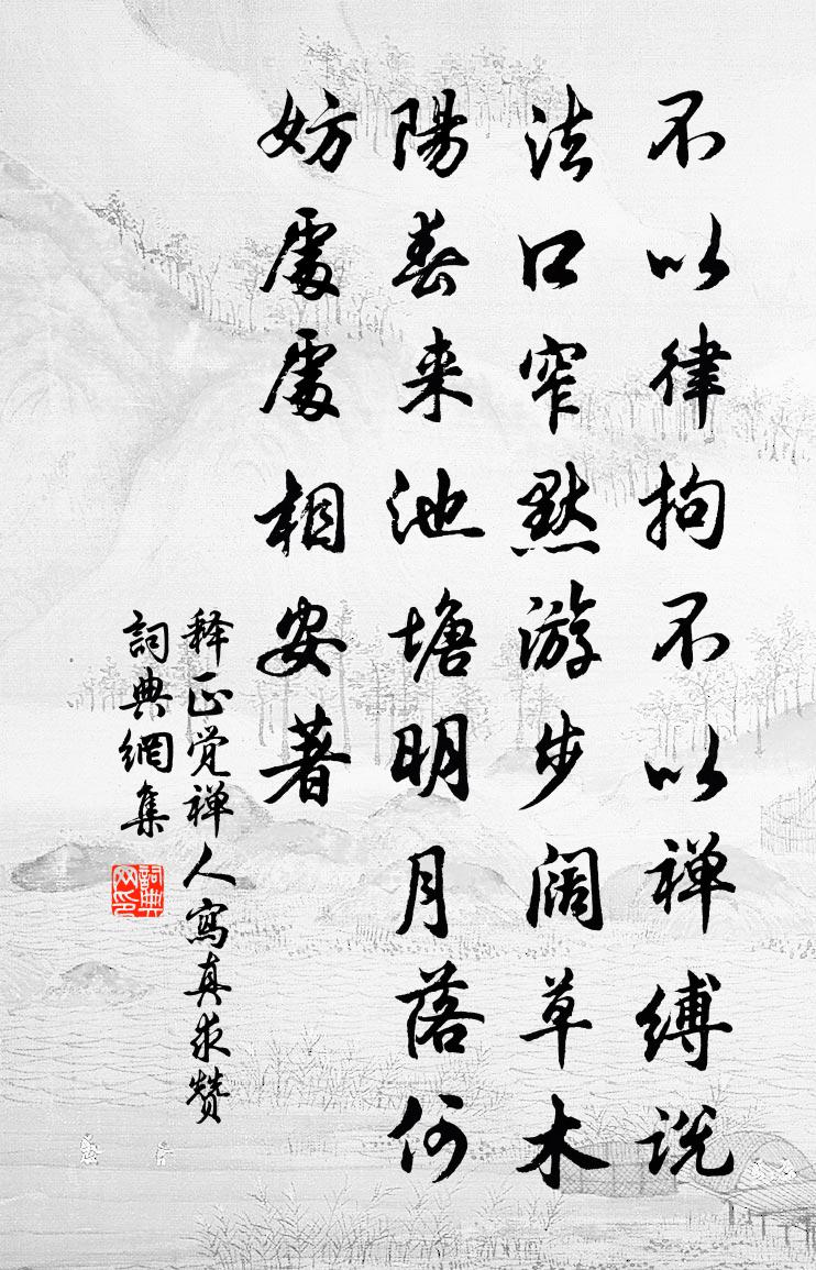 詩詞名句歷史字典書法欣賞書法字典國語詞典說文解字康熙字典古漢語字典標 題 作 者 詩 句 禪人寫真求贊作者:釋正覺 朝代:宋代禪人寫真求贊原文不以律拘,不以禪縛。說法口窄,默游步闊。草木陽春來,池塘明月落,何妨處處相安著。詩詞問答問:禪人寫真求贊的作者是誰?答:釋正覺問:禪人寫真求贊寫於哪個朝代?答:宋代釋正覺禪人寫真求贊書法欣賞禪人寫真求贊書法作品詩詞推薦奉和杜員外扈從教閱李嶠〔唐代〕杪冬岩殺氣,窮紀送頹光。薄狩三農隙,大閱五戎場。菜田初起燒,蘭野正開防。夾岸虹旗轉,分朋獸罟張。燕弧晚自擬滁亭轉煙雨樓聽角樓鑰〔宋代〕兩寺疎鍾夾岸聞,荒煙無數亂前村。山銜落日雲生彩,谿溜孤舟水不痕。蟲羽淒淒鳴綠暗,星暉隱隱照黃昏。欲歸曹公陸游〔宋代〕二袁劉表笑談無,眼底英雄不足圖。赤壁歸來應嘆息,人間更有一周瑜!春日晚望徐璣〔宋代〕樓上看春晚,煙分遠近村。曉晴千樹綠,新雨半池渾。柳密鶯無影,泥新燕有痕。輕寒衫袖薄,杯酌更須溫。三疊劉克莊〔宋代〕濡墨先愁染素衣,和鉛亦恐浼冰肌。後村老子無聲畫,壓倒花光與補之。大渡河魚甚美皆巨口細鱗鱖也本草以鱖為石桂李石〔宋代〕小躍水泉玉不如,細生仍得芼春蔬。莫將北海金虀膾,輕比西江石桂魚。訟田行陳藻〔宋代〕樂軒世俗文不工,場屋此生難遭逢。百年餓死真可惜,人命只在田畝中。遠行直到西融州,客裝收拾來歸休。江灘雜曲歌辭楊柳枝皇甫松〔唐代〕春入行宮映翠微,玄宗侍女舞菸絲。如今柳向空城綠,玉笛何人更把歡。嘉定六年皇后閣春貼子詞五首真德秀〔宋代〕輦回從五福宮庭,管弦聲里萬花紅。熙熙和氣皇州滿,都在乾坤橐籥中。偈六十九首釋道寧〔宋代〕全提正令,匝地風生。把定要津,孰分優劣。三玄料簡,未稱衲僧。五位君臣,殊乖道體。平實無事,誑謼閭閻。和富公權宗丞十站王之道〔宋代〕展讀新詩次第看,管中文豹喜窺斑。不知筆力能豪放,落紙雲煙欬唾間。小師寫真請贊釋紹曇〔宋代〕眉似箒粗,面如漆墨。人道慈悲,誰知惡毒。蒿籬關猛虎,寬處有威。筆管養蒼龍,直中藏曲。喜臧倉沮,不遇魯谷簾下二首白玉蟾〔宋代〕步入青紅紫翠間,仙翁朝斗有遺壇。竹梢露重晝猶濕,松里雲深夏亦寒。送宋鈞秀才落第還鄉韓維〔宋代〕漆雕不肯仕,仲尼悅其然。乃知君子學,躁進非所先。去聖邈千載,茲風復誰傳。趨營不自反,廉恥一以捐。愛君寄景遜文同〔宋代〕別後西城上,來須到日曛。目迎秦塞雁,心過隴山雲。寡合無如我,高懷少似君。相思只相望,徒爾托云云。得丁執中書和前韻依用韻一首王洋〔宋代〕履堅抱節有誰如,本為書窮更買書,命欲問天何厚薄,貧多聞道是乘除。倉箱粟帛常虧課,庭戶芝蘭獨獻餘,氣味送僧歸閩王冕〔元代〕九月三吳樹葉紅,閩中渾未覺秋風。上人忽動鄉關念,對客莫辭途路窮。白髮豈無諸老在?青山還與舊時同。到家次韻王亞之沿湖冒雨歸張嵲〔宋代〕禽鳴滑滑濺泥塗,賴有雲巢眼不孤。天外黑風迷鷲嶺,檻前流水憶鵝湖。躋攀危磴九折坂,捧玩新詩百斛珠。收拾牛渚曲王遂〔宋代〕岷江赴東海,牛渚鎮中流。古來濟渡處,落日迷滄洲。江東名勝士,清談付悠悠。氛埃更五閏,毒烈遍九州。六龍贈奭山人薛師石〔宋代〕何人養道得如君,房接高樓半入雲。山地栽梅寒蕊瘦,瓦爐留火夜香熏。看經尋義心逾靜,默坐觀身耳不聞。莫道名句推薦澗戶寂無人,紛紛開且落。王維《辛夷塢》 謝亭離別處,風景每生愁。李白《謝公亭·蓋謝朓范雲之所游》 欲寄書如天遠,難銷夜似年長。賀鑄《西江月·攜手看花深徑》 治國之道,愛民而已。劉向《說苑·政理》 天上人間何處去,舊歡新夢覺來時,黃昏微雨畫簾垂。張曙《浣溪沙·枕障薰爐隔繡帷》 夜月一簾幽夢,春風十里柔情。秦觀《八六子·倚危亭》 去好去惡,臣乃見素;去舊去智,臣乃自備。韓非及後人《韓非子·主道》 牆外行人,牆裡佳人笑。蘇軾《蝶戀花·春景》 教亦多術矣,予不屑之教誨也者,是亦教誨之而已矣。孟子《孟子·告子章句下·第十六節》 落地為兄弟,何必骨肉親!陶淵明《雜詩》