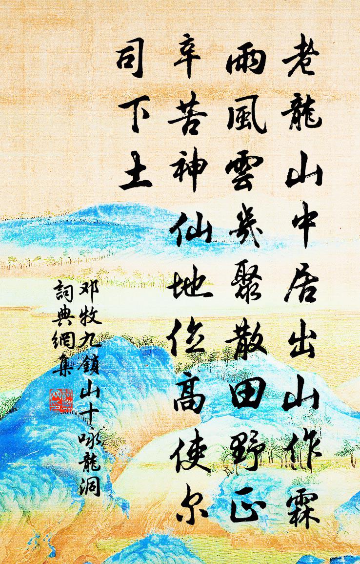 詩詞名句歷史字典書法欣賞書法字典國語詞典說文解字康熙字典古漢語字典標 題 作 者 詩 句 九鎖山十詠龍洞作者:鄧牧 朝代:宋代九鎖山十詠龍洞原文老龍山中居,出山作霖雨。風雲幾聚散,田野正辛苦。神仙地位高,使爾司下土。詩詞問答問:九鎖山十詠龍洞的作者是誰?答:鄧牧問:九鎖山十詠龍洞寫於哪個朝代?答:宋代鄧牧九鎖山十詠龍洞書法欣賞九鎖山十詠龍洞書法作品詩詞推薦道中晃沖之〔宋代〕北風吹雨不能晴,羸病人騎瘦私心行。發向來渾白盡,半緣憂患半多晴。霓裳中序第一姜夔〔宋代〕丙午歲,留長沙,登祝融,因得其祠神之曲,曰黃帝鹽、蘇合香。又于樂工故書中得商調霓裳曲十八闋,皆虛譜無上揚州錢帥沈繼祖〔宋代〕名世半千推碩德,淮南第一是揚州。一塵不動邊民樂,知有威聲懾虜酋。人謂儒生將略疏,世人無未識真儒。天下眼兒媚(泊松洲)方岳〔宋代〕雁帶新霜幾多愁。和月落滄洲。桂花如許,菊花如許,怎不悲秋。江山例合閒人管,也白幾分頭。去年曾此,今年次韻張直閣對雨項安世〔宋代〕九重城裡作山園,隔盡紅塵一世喧。今雨未妨連昨日,春寒聊為破冬溫。客傅條令來梅圃,僮報平安向竹村。我在贈崔立之評事(崔斯立,字立之,博陵人)韓愈〔唐代〕崔侯文章苦捷敏,高浪駕天輸不盡。曾從關外來上都,隨身捲軸車連軫。朝為百賦猶郁怒,暮作千詩轉遒緊。搖毫曉睡郭儼〔宋代〕村巷閴無事,天明憩黑鄉。草生詩意足,花落夢魂香。地迥秋供爽,雨餘風薦涼。休令山鳥鬧,吾欲傲羲皇。湖上有作陳輔〔宋代〕平湖共天遠,浸月坐寒光。乘流溯荃璧,掉舟尋藥房。佳人折輕荷,隨風來珍香。顧盼但微笑,眉宇何清揚。日暮復古日者釋普濟〔宋代〕試問先生蘊底術,卦盤掇轉呵呵笑。毗婆尸佛早留心,直至如今不得妙。中秋與空上人同宿華嚴寺冷朝陽〔唐代〕掃榻相逢宿,論詩舊梵宮。磬聲迎鼓盡,月色過山窮。庭簇安禪草,窗飛帶火蟲。一宵何惜別,回首隔秋風。比梅(寓如夢令)張輯〔宋代〕深夜沈沈尊酒。酒醒客衾寒透。城角挾霜飛,吹得月如清晝。僝僽。僝僽。比著梅花誰瘦。棲隱寺紫薇花二首陳造〔宋代〕絳霞影里一徜徉,甚欲搜詩與發揚。馬自虺聵塵染袂,句中羞說紫微郎。張子房陳長方〔宋代〕子房非漢臣,憫世為一起。借力用沛公,東西唯所指。注措豈因黃石書,出處非由赤松子。博浪沙中擊祖龍,欲報趙季茂通判惠詩走筆奉和十篇岳珂〔宋代〕晴佳雨亦宜,雲黑又催詩。靜處景俱勝,閒中趣自知。攀條隨客嗅,卷葉看兒吹。世事只如此,吾今何所為。夏日夜憶張二駱賓王〔唐代〕伏枕憂思深,擁膝獨長吟。烹鯉無尺素,筌魚勞寸心。疏麻空有折,芳桂湛無斟。廣庭含夕氣,閒宇澹虛陰。織蟲思歸赤松村呈松陽子李德裕〔唐代〕昔人思避世,惟恐不深幽。禽慶潛名岳,鴟夷漾釣舟。顧余知止足,所樂在歸休。不似尋山者,忘家恣遠遊。次折仲古避寇潯州韻曾幾〔宋代〕我持十口家,不辦一葉船。賊聲日夜急,欲濟江無邊。身雖墮眢井,仰視猶有天。天理儻未爽,偷兒浪垂涎。洗心酹江月 東原寒食王惲〔元代〕天涯寒食,問東風、底事留連行客。千樹芳菲春不管,吹盡枝頭紅雪。湖水春波,佳人錦瑟,腸斷非離索。西來一之南豐道上寄介甫曾鞏〔宋代〕應逮冒煩暑,驅馳山水間。泥泉沃渴肺,沙風吹汗顏。疲驂喘沫白,殆仆負肩殷。仰嗟旱雲高,俯愛芳陂潺。空郵採桑子納蘭性德〔清代〕海天誰放冰輪滿,惆悵離情。莫說離情,但值良宵總淚零。只應碧落重相見,那是今生。可奈今生,剛作愁時又憶名句推薦青青園中葵,朝露待日晞。佚名《長歌行》 燕子來時新社,梨花落後清明。晏殊《破陣子·春景》 酒債尋常行處有,人生七十古來稀。杜甫《曲江二首》 果仁者,人多畏,言不諱,色不媚。李毓秀《弟子規·親仁》 蚊蟲遭扇打,只因嘴傷人!佚名《增廣賢文·下集》 照野瀰瀰淺浪,橫空隱隱層霄。蘇軾《西江月·頃在黃州》 畫地為牢勢不入,削木為吏議不對班固《漢書·傳·司馬遷傳》 綠葉翠莖,冒霜停雪。左思《三都賦》 逝者如斯夫!不捨晝夜。孔子弟子《論語·子罕篇》 下附上以成志,上恃下以成名。來俊臣《羅織經·治下卷第三》