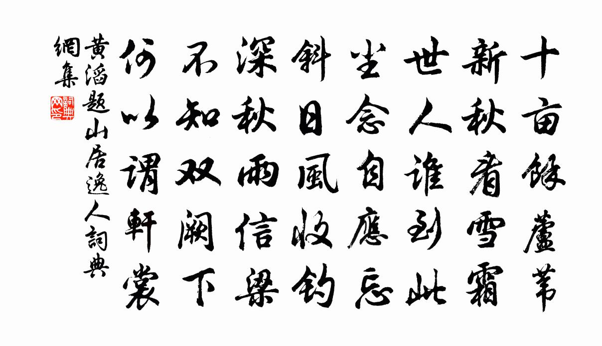 詩詞名句歷史字典書法欣賞書法字典國語詞典說文解字康熙字典古漢語字典標 題 作 者 詩 句 題山居逸人作者:黃滔 朝代:唐代題山居逸人原文十畝余蘆葦,新秋看雪霜。世人誰到此,塵念自應忘。斜日風收釣,深秋雨信梁。不知雙闕下,何以謂軒裳。詩詞問答問:題山居逸人的作者是誰?答:黃滔問:題山居逸人寫於哪個朝代?答:唐代問:題山居逸人是什麼體裁?答:五律黃滔題山居逸人書法欣賞題山居逸人書法作品注釋全唐詩:卷704-53詩詞推薦新籬陸游〔宋代〕新籬三面北通門,藤架陰中細路分。天宇淡青成卵色,水波微皺作靴紋。參差村舍穿林出,縹緲漁歌隔浦聞。忽覺晚泊江皋蔡戡〔宋代〕日暮西江遠,停橈傍水村。葉舟橫野渡,茅店掩柴門。牧笛隨風遠,漁燈帶雨昏。一權梅照水,行客總消魂。擬寒山拾得二十首王安石〔宋代〕有一種貧兒,不能自營生。若不作客走,即須隨賊行。復有一種貧,常時腹彭亨。若有亦不畜,若無亦不營。送別邢懷正直閣赴江西提舉二首周必大〔宋代〕二年疏懶累深知,喜見皇華授節時。歸里欲依東道主,登畿恰負北山移。黃間遙想前驅弩,白下空攀遠別枝。坐席琅邪山王禹偁〔宋代〕連袤復迢嶢,峰巒架泬寥。流名自東晉,積翠滿南譙。洞碧通仙界,溪明潤藥苗。古台臨海日,絕頂見江潮。杉影書廬山劉顗宮苑屋壁三絕蘇轍〔宋代〕當年五月訪廬山,山翠浮聲寢食間。藤杖復隨春色到,寒泉頓與客心閒。岩頭懸布煎茶足,峽口驚雷泛葉慳。待得喜王駕小儀重陽相訪司空圖〔唐代〕白菊初開臥內明,聞君相訪病身輕。樽前且撥傷心事,谿上還隨覓句行。幽鶴傍人疑舊識,殘蟬向日噪新晴。擬將九日與智叔鵰堂宴集夜歸陳師道〔宋代〕鵰堂從昔有惡客,酒盡不去仍復索。欲留歌舞盡客意,風雨和更作三厄。佳辰難得客更難,我窮無酒為君歡。只欲臨河道中黃庭堅〔宋代〕村南村北禾黍黃,穿林入塢岐路長。據鞍夢歸在親側,弟妹婦女笑兩廂。甥侄跳梁暮堂下,惟我小女始扶床。屋頭次韻答曹子方雜言黃庭堅〔宋代〕酺池寺,湯餅一齋盂,曲肱懶著書。騎馬天津看逝水,滿船風月憶江湖。往時盡醉冷卿酒,侍兒琵琶春風手。竹間滿江紅 懷岳忠武張煌言〔明代〕屈指興亡,恨南北黃圖消歇。便幾個孤忠大義,冰清玉烈。趙信城邊羌笛雨,李陵台上胡笳月。慘模糊吹出玉關情時事感慨王同祖〔宋代〕襄州蹀血荊州亂,千里金湯狐兔憑。未定攀城關羽死,漢民何日見中興。和邱提刑寄湖南賈度支蔡襄〔宋代〕何處多離感,山郵霽野光。清吟貫騷雅,遠意屬荊湘。霜樹呈秋色,風蘭生晚香。使軺偏倚望,摛藻寄迴腸。高車再過謝永叔內翰梅堯臣〔宋代〕世人重貴不重舊,重舊今見歐陽公。昨朝喜我都門入,高車臨岸進船逢。俯躬拜我禮愈下,騶徒竊語音微通。我公愛亭元絳〔宋代〕朱轓何事獨來頻,不為溪山只為民。最愛年年禾稻熟,時豐自有壤歌人。瑪瑙杯歌錢起〔唐代〕瑤溪碧岸生奇寶,剖質披心出文藻。良工雕飾明且鮮,得成珍器入芳筵。含華炳麗金尊側,翠斝瓊觴忽無色。詹弦寒食雨二首蘇軾〔宋代〕自我來黃州,已過三寒食。年年欲惜春,春去不容惜。今年又苦雨,兩月秋蕭瑟。臥聞海棠花,泥污胭脂雪。暗中題徐贊府不負堂方回〔宋代〕喔松人與職俱清,時見春郊雨又晴。所學政應如陸九,只消一語了平生。和張先輩見寄二首徐鉉〔唐代〕去國離群擲歲華,病容憔悴愧丹砂。溪連舍下衣長潤,山帶城邊日易斜。幾處垂鉤依野岸,有時披褐到鄰家。故人村郭寒食雨中作穆修〔宋代〕寂寥村郭見寒食,風光更著微雨遮。鞦千閒垂愁稚子,楊柳半濕眠春鴉。白社皆驚放狂客,青錢盡送沽酒家。眼前名句推薦歲暮陰陽催短景,天涯霜雪霽寒宵。杜甫《閣夜》 短景歸秋,吟思又接愁邊。史達祖《玉蝴蝶·晚雨未摧宮樹》 竹樹帶飛嵐,荇藻俱明麗。劉道著《湘江秋曉》 酒盞旋將荷葉當。蓮舟盪。時時盞里生紅浪。歐陽修《漁家傲·花底忽聞敲兩槳》 人皆可以為堯舜。孟子《孟子·告子章句下·第二節》 時不可再,機不可失魏徵《隋書·列傳·卷三》 竹籬茅舍,淡煙衰草孤村。白樸《天淨沙·冬》 常有江南船,寄書家中否。王維《雜詩三首》 縞素酬家國,戈船決死生!夏完淳《即事·復楚情何極》 宮中彩女顏如花,飄然揮手凌紫霞,從風縱體登鸞車。李白《飛龍引二首·其一》