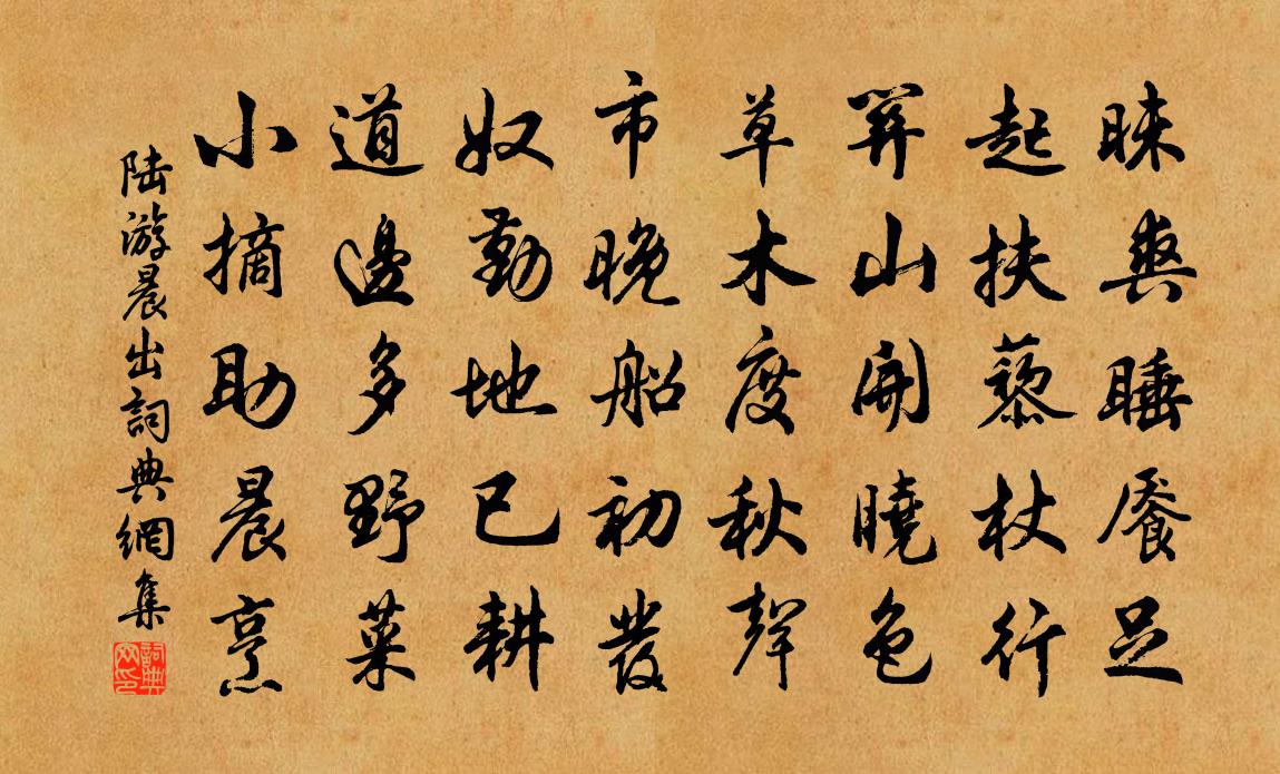 昧爽睡饜足,起扶藜杖行。關山開曉色,草木度秋聲。