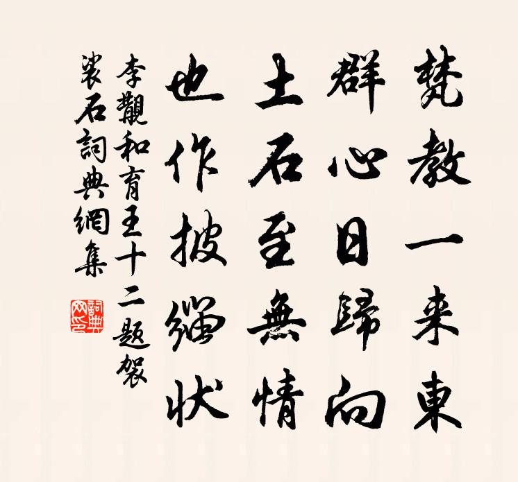 詩詞名句歷史字典書法欣賞書法字典國語詞典說文解字康熙字典古漢語字典標 題 作 者 詩 句 和育王十二題袈裟石作者:李覯 朝代:宋代和育王十二題袈裟石原文梵教一來東,群心日歸向。土石至無情,也作披緇狀。詩詞問答問:和育王十二題袈裟石的作者是誰?答:李覯問:和育王十二題袈裟石寫於哪個朝代?答:宋代李覯和育王十二題袈裟石書法欣賞和育王十二題袈裟石書法作品詩詞推薦賦愁魏扶〔唐代〕愁。迥野,深秋。生枕上,起眉頭。閨閣危坐,風塵遠遊。巴猿啼不住,谷水咽還流。送客泊舟入浦,思鄉望月登尋張司馬墓黃宗羲〔清代〕草荒樹密路三叉,下馬來尋日色斜。頑石嗚呼都作字,冬青憔悴未開花。夜台不敢留真姓,萍梗還來酹晚鴉。牡礪追和賈明叔侯陟明二侍郎瑞香二首王之道〔宋代〕深院重簾數尺牆,對花可必竟燒香。九齡風度高難挹,舉世紛紛漫笏囊。浣沙秋日五首周弼〔宋代〕清溪樓閣暮沉沉,不覺登臨夜欲深。幾處捲簾催酒笛,誰家閉戶搗衣砧。一朝野霧三朝濕,十日江天九日陰。暗喜山石韓愈〔唐代〕山石犖确行徑微,黃昏到寺蝙蝠飛。升堂坐階新雨足,芭蕉葉大梔子肥。僧言古壁佛畫好,以火來照所見稀。鋪床感皇恩毛滂〔宋代〕兩歲撫邦人,曾無恩意。別後何人更相記。題輿玉樹,愧與蒹葭相倚。殷勤猶念我,同吟醉。畫舸相追,孤城已閉九張機佚名〔宋代〕五張機。橫紋織就沈郎詩。中心一句無人會。不言愁恨,不言憔悴。只恁寄相思。題南浦萬乘寺瀑布曾豐〔宋代〕緬止銀崖瀉玉泉,似乎有以使之然。素虹挾雨斜搶地,澄練披風倒倚天。山不曾分青自斷,月猶未落白相連。掬清感舊寄上芸叟侍郎晁說之〔宋代〕於越茫茫羈旅久,函秦落落笑談中。曲江煙月新春夢,寒食人家故國風。此際一樽曾邂逅,他時相見更從容。丈人和張二十五游白龍溪甘水谷郊居雜詠七首范祖禹〔宋代〕君家瀟灑住園林,更入青山徑路深。唯有白云為得侶,祗應流水是知音。和劉後村梅花百詠方蒙仲〔宋代〕腸斷當年古吹台,酒酣欲叫謫仙回。夜深落月照顏色,端的宮袍入夢來。送熊主簿劉克莊〔宋代〕邑事多商榷,惟詩未暇論。母慈催扇枕,父老謾攀轅。新戌謀何地,初程宿某村。西風有來雁,書札儻相存。四月果王安石〔宋代〕一春強半勒花風,幾日園林幾樹紅。汲汲追攀常恨晚,紛紛吹洗忽成空。行看果下蒼苔地,已作人間白髮翁。豈惜漳蘭為丁竊貨其半紀實四首劉克莊〔宋代〕五十盆蒼翠,皆從異縣求。不能防狡窟,未免破鴻溝。慘甚兵初過,苛於吏倍抽。渠儂慕銅臭,肯為國香謀。逢僧文禮周弼〔宋代〕師說古香寮舊開,鮑照曾為惠休來。至今猿鶴猶知敬,靜對寒星禮碧苔。再和曾仲錫荔支蘇軾〔宋代〕柳花著水萬浮萍,荔實周天兩歲星。(柳至易成,飛絮落水中,經宿即為浮萍。荔支至難長,二十四五年乃實。)香山野步二首舒坦〔宋代〕空澗寒探月,高齊客聚星。霜分破窗白,山獻隔簾青。窺水知僧定,占雲識地靈。時時驚鶴夢,木葉下危亭。冬蘭薛嵎〔宋代〕出林詎為晚,知我歲寒心。不入離騷怨,來親冰雪吟。眾芳歸槁壤,獨乾長窮陰。為有幽人致,相看情倍深。江行五絕鄭獬〔宋代〕西江廟前飛來鳥,紫金作翅尾畢逋。翻空趁船接紅果,銜去卻哺林中雛。豐陵行(順宗陵也,在富平縣東北三十里)韓愈〔唐代〕羽衛煌煌一百里,曉出都門葬天子。群臣雜沓馳後先,宮官穰穰來不已。是時新秋七初,金神按節炎氣除。清風飄名句推薦千古英雄同一嘆,傷懷豈止為蛾眉沈約《昭君辭》 亂鴉三四點,愁坐話無憀。陳維崧《臨江仙·寒柳》 雪雲散盡,放曉晴池院。楊柳於人便青眼。李元膺《洞仙歌·雪雲散盡》 檳榔無柯,椰葉無陰。左思《三都賦》 人依遠戍須看火,馬踏深山不見蹤。王昌齡《從軍行七首》 半生已分孤眠過,山枕檀痕涴。納蘭性德《虞美人·曲闌深處重相見》 城邊有古樹,日夕連秋聲。李白《沙丘城下寄杜甫》 春朝秋夜思君甚,愁見繡屏孤枕。魏承班《滿宮花·雪霏霏》 雁來音信無憑,路遙歸夢難成。李煜《清平樂·別來春半》 寂寞尊前席上,唯愁海角天涯。李清照《轉調滿庭芳·芳草池塘》