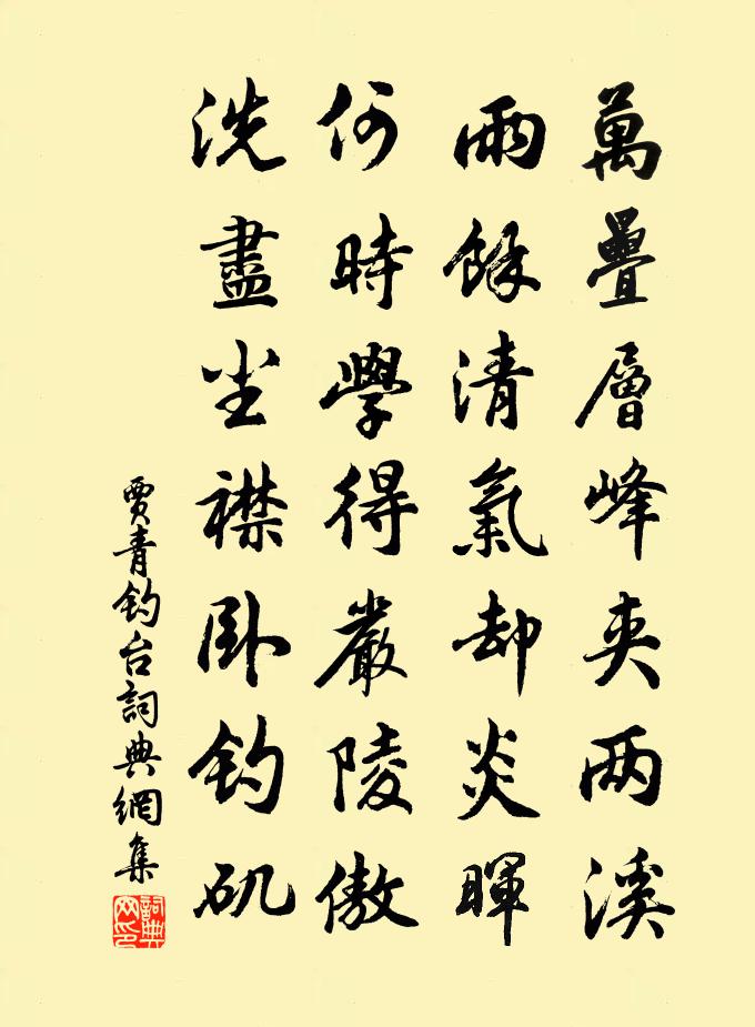 詩詞名句歷史字典書法欣賞書法字典國語詞典說文解字康熙字典古漢語字典標 題 作 者 詩 句 釣台作者:賈青 朝代:宋代釣台原文萬疊層峰夾兩溪,雨余清氣卻炎暉。何時學得嚴陵傲,洗盡塵襟臥釣磯。詩詞問答問:釣台的作者是誰?答:賈青問:釣台寫於哪個朝代?答:宋代賈青釣台書法欣賞釣台書法作品詩詞推薦既別晦庵復成二詩呈之近欲同游善權不果臨行趙蕃〔宋代〕既返山前棹,還斟枕上杯。雪飛如喚住,雁叫苦催回。金瀨半篙綠,石亭千樹梅。竟孤陪李郭,亦愧匪鄒枚。淘金山陳世卿〔宋代〕未覆一簣土,便作千仞觀。一自登巉岩,培塿視群山。乾道七年恭上太上皇帝太上皇后尊號十一首佚名〔宋代〕大哉堯乎,南鄉垂裳。君哉舜也,拜而奉觴。繅藉光華,鼓鍾鏗鏘。三事稽首,宋德無疆。汪給事太夫人程氏輓辭太恭人諭氏輓辭陸游〔宋代〕爵邑恩榮盛鄉閭譽望尊。儒科傳累葉,上壽萃高門。阡茂新栽柏,堂余舊樹萱。故民何以報,沾灑望秋原。耄齒人送果上人游五台林景熙〔宋代〕飄飄孤錫度風沙,南北由來本一家。參透五台峰頂雪,卻歸大庾看梅花。闕題舒岳祥〔宋代〕潮分船出浦,雪破馬行沙,去去三千里,疏疏 * 家。矮壺分乳酪,疏竹看梅花。虎豹方充斥,風林噪亂鴉。和劉晉父寒食日從郡掾游花光相祠絕江訪向園廖行之〔宋代〕不作春遊去,那能詩思佳。春山長在眼,白酒不謀家。泛泛一蓑釣,冥冥幾樹花。相從有真趣,無夢到京華。八聲甘州鄭子玉〔宋代〕漸鶯聲近也,探年芳、河畔扼輕輪。旋東風染綠,綿綿平野,無際煙春。最苦夕陽天外,愁損倚闌人。無奈瀟湘杳過賈誼舊居戴叔倫〔唐代〕楚鄉卑濕嘆殊方,鵩賦人非宅已荒。謾有長書憂漢室,空將哀些吊沅湘。雨餘古井生秋草,葉盡疏林見夕陽。過客王瞻叔參政寄惠雲笈經因成四韻奉酬吳芾〔宋代〕老來猶未返林泉,終日區區亦可憐。擬扣玄關求至道,喜披雲笈探真筌。他時使我離塵境,今日由君結妙緣。莫謂夏秀才江居五題斗碧亭文同〔宋代〕雨余山景鮮,風定水光好。晴陽破宿霧,秀色濃可掃。平時一樽酒,野客共傾倒。朝暮山水間,年華不知老。雲間張蘊〔宋代〕倦倚柁樓聞鶴唳,半生此地一經過。機雲故月荒涼宅,湖海新秋浩蕩波,曉{左舟右定}紅蓮商客市,夜窗白苧女別後讀鶴田李元暉新詩用其體方回〔宋代〕菊悴蘭摧憶別離,雪邊重映十年詩。淚凝紫篠湘靈怨,血迸紅英蜀魄悲。曠野虎狼喧寇暴,長途魚雁隔親知。莊生山居釋彥強〔宋代〕老矣毋能役,岩分草草綠。放渠藜六尺,銷得屋三椽。雪盡收茶早,雲晴拾菌鮮。有時臨近澗,揎手弄潺湲。送劉道士之山陰閱藏書四首章甫〔宋代〕破屋頻來叩戶,殘尊俄惜離群。揮翰他時說我,圍棋暇日思君。送丁鍊師歸福堂胡仲弓〔宋代〕易東流派遠,千載見斯人。金鼎烹龍虎,丹書役鬼神。形臞心更古,食淡語尤真。野鶴沖天去,空餘華表身。玉清昭應宮上尊號三首真宗〔宋代〕皇靈垂祐,洪福彌隆。祗率綿宇,潔祀真容。嚴恭奉冊,對越清躬。睟容肅穆,懿號尊榮。禮成樂舉,福祿來同。次韻徐何慊詠雪陳著〔宋代〕馮夷翦水暗中央,映帶同雲淺與黃。旋積層寒消宿瘴,平鋪一白洗時妝。行仙休羨王恭興,僵叟應關洛令腸。不覺譏裴休佚名〔宋代〕趙氏兒皆尼氏女,師翁兒即晉公兒。卻教術士難推算,胎月分張與阿誰。水龍吟蕭元之〔宋代〕人生何必求名,身閒便是名高處。臥雲衣袂,何因自染,修塗塵土。世路羊腸,人情狙賦,翻雲覆雨。把從前舊夢名句推薦對菱花、與說相思,看誰瘦損。陸叡《瑞鶴仙·梅》 月明星稀,烏鵲南飛。繞樹三匝,何枝可依?曹操《短歌行》 屈指數春來,彈指驚春去。高觀國《卜運算元·泛西湖坐間寅齋同賦》 一身報國有萬死,雙鬢向人無再青。陸游《夜泊水村》 閉心塞意,不高瞻覽者,死人之徒也哉。王充《論衡·卷十三·別通篇》 竹樹帶飛嵐,荇藻俱明麗。劉道著《湘江秋曉》 二秋葉神媛,七夕望仙妃。任希古《和長孫秘監七夕》 東風吹柳日初長,雨余芳草斜陽。秦觀《畫堂春·春情》 人皆有不忍人之心。孟子《孟子·公孫丑章句上·第六節》 匈奴草黃馬正肥,金山西見煙塵飛,漢家大將西出師。岑參《走馬川行奉送出師西征 / 走馬川行奉送封大夫出師西征》