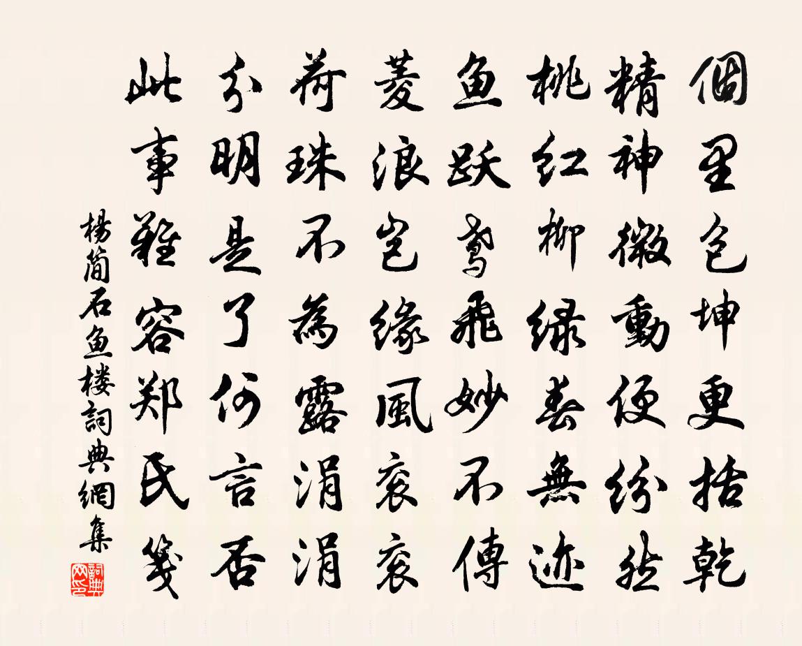 詩詞名句歷史字典書法欣賞書法字典國語詞典說文解字康熙字典古漢語字典標 題 作 者 詩 句 石魚樓作者:楊簡 朝代:宋代石魚樓原文個裡包坤更括乾,精神微動便紛然。桃紅柳綠春無跡,魚躍鳶飛妙不傳。菱浪豈緣風袞袞,荷珠不為露涓涓。分明是了何言否,此事難容鄭氏箋。詩詞問答問:石魚樓的作者是誰?答:楊簡問:石魚樓寫於哪個朝代?答:宋代楊簡石魚樓書法欣賞石魚樓書法作品詩詞推薦許州題觀察判官廳薛能〔唐代〕三載從戎類系匏,重遊全許尚分茅。劉郎別後無遺履,丁令歸來有舊巢。冬暖井梧多未落,夜寒窗竹自相敲。纖腰離鄞至菁江東望王安石〔宋代〕村落蕭條夜氣生,側身東望一傷情。丹樓碧閣無處所,只有溪山相照明。從拜陵登京峴詩鮑照〔南北朝〕孟冬十月交。殺盛陰欲終。風烈無勁草。寒甚有凋松。軍井冰晝結。士馬氈夜重。晨登峴山首。霜雪凝未通。息鞍蓬萊閣喻良能〔宋代〕絕知蓬島異塵寰,弱水相望萬裡間。爭似臥龍雲際閣,不勞跨海即鰲山。趙黃州寄示詩絕奇次韻蘇泂〔宋代〕書回聞道讀春秋,筆削餘功指顧收。魯國故知人有禮,周家那得聖無憂。非君著意扶公谷,似我何辭贊夏遊。會引寄桃源管明菩陶弼〔宋代〕野鶴孤雲無定蹤,桃花流水合相容。夜來月滿群山閣,知在秦人第幾峰。相國寺晚鐘李含章〔宋代〕高韻出重城,林梢鶴夢清。九衢方月曉,四野復霜晴。會有神仙聽,能無魍魎驚。寒山深洞口,依約片雲橫。柳梢青·錦樣江山張煌言〔明代〕錦樣江山,何人壞了,雨瘴煙巒。故苑鶯花,舊家燕子,一例闌珊。此身付與天頑。休更問、秦關漢關。白髮鏡中頌證道歌證道歌釋印肅〔宋代〕調古神清風自高,忘榮傲世性堅牢。示一往還無個事,見人搖手莫忉忉。唐享昊天樂第三武則天〔唐代〕乾儀混成沖邃,天道下濟高明,闓陽晨披紫闕,太一曉降黃庭。圜壇敢申昭報,方璧冀殿虔情。丹襟式敷衷懇,玄周元特詹事輓詞二首韓元吉〔宋代〕黃髮趨嚴詔,青宮啟太微。園公方入侍,疏傅已言歸。奏牘三千在,流年七十稀。無從奠難酒,老疾只沾衣。和沖卿雪詩並示持國王安石〔宋代〕地卷江海浮,天吹河漢涌。北風散作花,巧麗世無種。霾昏得照曜,塵滓歸掩擁。荒林無空枝,幽瓦有高隴。分才曉枕陸游〔宋代〕殘漏冬冬急,明星磊磊高。一從安枕臥,無復攬衣勞。熨斗生晨火,熏籠覆縕袍。一杯山藥酒,紅日滿亭皋。題張明府清風堂三首方回〔宋代〕萬疊春山積雨晴,新茶處處煮車聲。不應獨送月團片,偏與盧仝兩腋生。游華嚴寺柯舉〔宋代〕舊遊曾記此山川,萬事回頭一夢然。蚤歲不知人易老,晚年方信世無禪。樵歌牧唱千村暮,鶯語花香二月天。人境次韻康慶之秋雨喜涼書懷五首方回〔宋代〕躁求慾火熾,寂守德宇涼。期人老世故,秋雨鋤驕陽。季郈雞浪斗,臧谷羊俱亡。矢詩寫高懷,聳如見清揚。均台辭二首陳與義〔宋代〕東家西家爾盍來,聽說空圄如春台。決曹高臥印生綠,叢棘化為交遜木。策勛此木那可遺,動地風搖枝不曲。願我留守待制視學石介〔宋代〕演道開談席,觀文降使轓。水寒芹葉薄,春早杏陰繁。喜動青青佩,新聞亹亹言。孤生荷樂育,終始詫丘關。壬子偶題王安石〔宋代〕黃塵投老倦匆匆,故繞盆池種水紅。落日欹眠何所憶,江湖秋夢櫓聲中。【雙調】沉醉東風_有所感流水周德清〔元代〕有所感流水桃花鱖美,秋風蓴菜鱸肥。不共時,皆佳味,幾個人知?記得荊公舊日題:何處無魚羹飯吃?羊續高高名句推薦宿空房,秋夜長,夜長無寐天不明。白居易《上陽白髮人》 與朋友交,言而有信。孔子弟子《論語·學而篇》 紅板橋空,濺裙人去,依舊曉風殘月。納蘭性德《淡黃柳·詠柳》 歡笑情如舊,蕭疏鬢已斑。韋應物《淮上喜會梁川故人 / 淮上喜會梁州故人》 佳期悵何許,淚下如流霰謝朓《晚登三山還望京邑》 胡未滅,鬢先秋。淚空流。陸游《訴衷情·當年萬里覓封侯》 幸災不仁,乘危不武張廷玉《明史·列傳·卷一百三十六》 影孤憐夜永,永夜憐孤影蘇軾《菩薩蠻·回文秋閨怨》 長條短葉翠濛濛,才過西風,又過東風。夏完淳《一剪梅·詠柳》 廉者常樂無求,貪者常憂不足。王通《中說·卷一·王道篇》