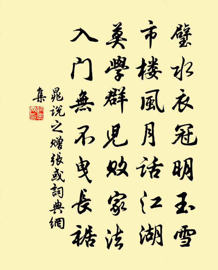 詩詞名句歷史字典書法欣賞書法字典國語詞典說文解字康熙字典古漢語字典標 題 作 者 詩 句 贈張或作者:晁說之 朝代:宋代贈張或原文璧水衣冠明玉雪,市樓風月話江湖。莫學群兒敗家法,入門無不曳長裾。詩詞問答問:贈張或的作者是誰?答:晁說之問:贈張或寫於哪個朝代?答:宋代晁說之贈張或書法欣賞贈張或書法作品詩詞推薦頌古一○一首釋子淳〔宋代〕法爾非修本十成,平常酬答最分明。端然指出長安道,無奈遊人不肯行。洛中感事雍陶〔唐代〕洛城今古足繁華,最恨喬家似石家。行到窈娘身沒處,水邊愁見亞枝花。寒雀爭松圖唐寅〔明代〕頭如蒜顆眼如椒,雄逐雌飛向葦蕭。莫趁螳螂失巢穴,有人拈彈不相鐃。寄題太和陳氏益龜堂周必大〔宋代〕講堂昔日飛三鱣,學館如今益十龜。文字上神君勿卜,明年春榜印累累。和遯澤韻取臨江叔父墨梅王柏〔宋代〕我翁久駕白雲歸,誰寶冰綃一舊枝。疎影暗香浮戱墨,光風霽月惠仙姿。只疑和靖舊爭長,縱是逃禪 * 雌。寄語郴江百詠並序孝婦冢阮閱〔宋代〕國史班班有舊聞,欲將重說與郴人。教知蔡婦潸然意,可比神仙噀酒神。日長至寓杭方回〔宋代〕自從草角至童顛,是事無心總聽天。今日喜逢長至日,來年恰遇古希年。一官三紀閒居半,萬馬千軍命偶全。適有新荔枝四絕范成大〔宋代〕海北天西兩鬢蓬,閩山猶欠一枝筇。鄞船荔子如新摘,行腳何須更雪峰?次韻戴石屏見寄高斯得〔宋代〕霞嶠詩人窟,夫君獨擅場。太羹無厚味,嘉稷有真香。投老安逢戶,平生似草堂。遙知道機熟,尊酒百憂忘。偈頌二十二首釋道生〔宋代〕時節循環四月一,大道何曾有得失。夜來針眼魚兒,吞卻新昌石佛。阿呵呵,識不識,明眼衲僧跳不出。宮中調笑·團扇王建〔唐代〕團扇,團扇,美人病來遮面。玉顏憔悴三年,誰復商量管弦。弦管,弦管,春草昭陽路斷。陳文懿公輓詞樓鑰〔宋代〕宅相惟公久,伊余忝後塵。十年追桂籍,兩禁踵詞臣。接武參吾舅,承顏奉老親。幸成三學士,何意失斯人。句卓祐之〔宋代〕山色列屏分左右,水聲鳴玉繞西東。南園雜詠松亭陳宓〔宋代〕天生棟樑質,挺挺自幽倫。斧斤渾不施,繞柱起龍鱗。喜遷鶯(福唐平盪海寇宴犒將士席上作)曾覿〔宋代〕七閩形勝。鎮南紀會府,山川交映。簫鼓喧天,綺羅盈市,不負四時風景。共喜太平無事,豈料潢池不逞。殄群醜里閭詛語佚名〔唐代〕若違教,值三豹。和陳朝議見寄二首曹勛〔宋代〕念公事業未能歸,莫厭京塵化客衣。遊子固聞懷楚玉,垂堂應每倚荊扉。仲舒正爾宜投策,丘嫂從渠不下機。他日布袋贊釋了惠〔宋代〕捫腹一笑,笑裹戈矛。背手牽囊,囊中錐刺。將謂渠儂有底聱,元來奉化只如此。泛淮陳師道〔宋代〕冬暖仍初日,潮回更下風。鳥飛雲水裡,人語櫓聲中。平野容回顧,無山會有終。倚檣聊自逸,吟嘯不須工。寄題峽州楚塞樓王之道〔宋代〕江向西陵勢漸平,萬山環合翠崢嶸。須知楚國嘗為塞,不為涪翁浪得句。人若此賢真俊傑,樓還舊觀煥神明。臨風名句推薦激濁揚清,嫉惡好善吳兢《貞觀政要·卷二·論任賢》 楚江湄,湘娥乍見,無言灑清淚周密《繡鸞鳳花犯·賦水仙》 群臣見素,則大君不蔽矣。韓非及後人《韓非子·二柄》 蜂兒不解知人苦,燕兒不解說人愁。程垓《最高樓·舊時心事》 嗟險阻,嘆飄零。關山萬里作雄行。劉克莊《玉樓春·戲林推》 美人結長想,對此心悽然。李白《折楊柳》 修己而不責人左丘明《左傳·閔公·閔公二年》 水深橋樑絕,中路正徘徊曹操《苦寒行》 小男供餌婦搓絲,溢榼香醪倒接罹。李郢《南池》 天上星河轉,人間簾幕垂。涼生枕簟淚痕滋。李清照《南歌子·天上星河轉》