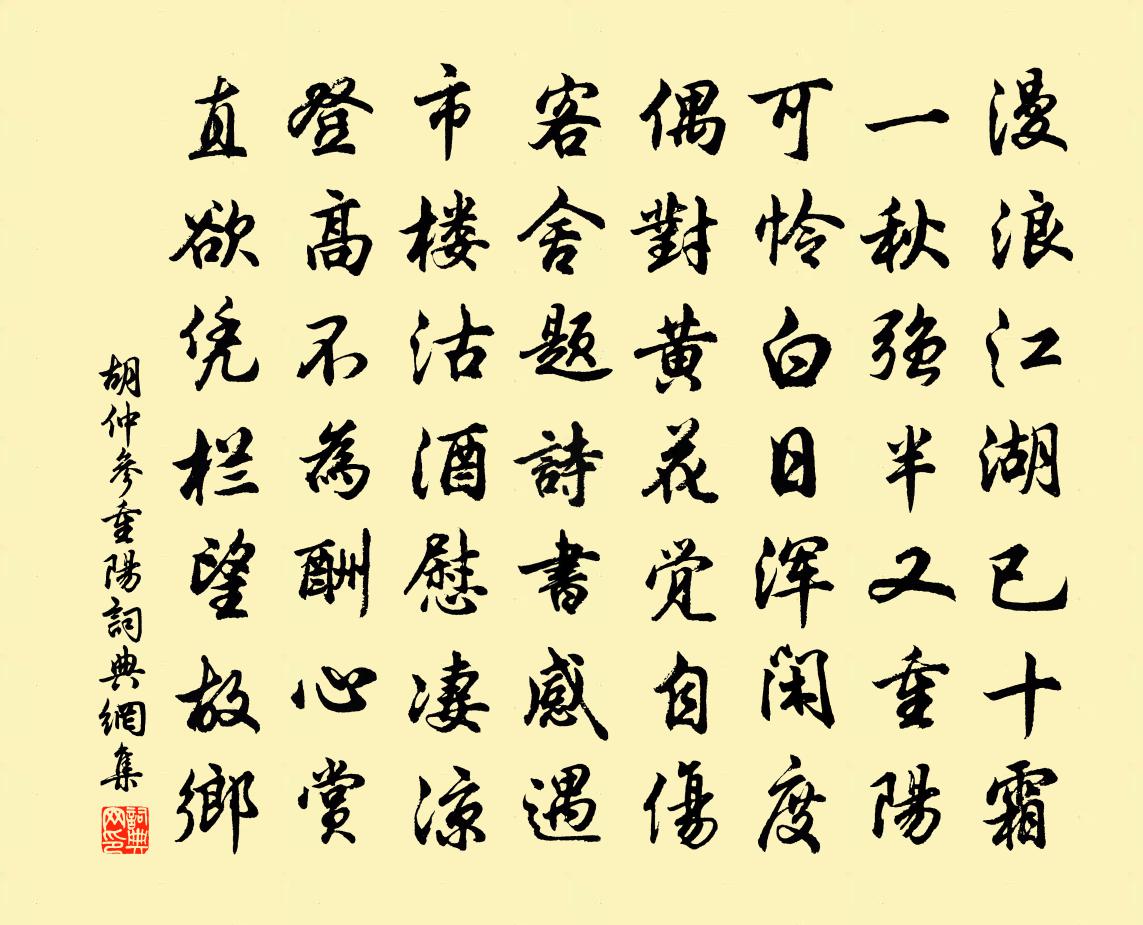 詩詞名句歷史字典書法欣賞書法字典國語詞典說文解字康熙字典古漢語字典標 題 作 者 詩 句 重陽作者:胡仲參 朝代:宋代重陽原文漫浪江湖已十霜,一秋強半又重陽。可憐白日渾閒度,偶對黃花覺自傷。客舍題詩書感遇,市樓沽酒慰淒涼。登高不為酬心賞,直欲憑欄望故鄉。詩詞問答問:重陽的作者是誰?答:胡仲參問:重陽寫於哪個朝代?答:宋代胡仲參重陽書法欣賞重陽書法作品詩詞推薦懷詹伯遠謝應芳〔元代〕蝌蚪殘書補未全,齋居一榻坐來穿。楊花繞屋白如雪,溪水出湖青接天。冠蓋不來騎馬客,鷗鳧長傍釣魚船。多時後答吳尚書胡如壎〔宋代〕渥窪困鹽車,帖耳聲復吞。駑駘飽棧豆,嘶鳴尚軒軒。向來溝中斷,青黃即犧樽。薰蕕既同器,玉石且俱燔。物理睡起遣懷陸游〔宋代〕百事不能能荷鋤,不鋤菜畦鋤芋區;身存那用十年相,陂壤且為凶歲儲。百事不學學作詩,不作白紵作竹枝;黃陵尋僧趙嘏〔唐代〕斜日橫窗起暗塵,水邊門戶閉閒春。千竿竹里花枝動,只道無人似有人。同德麟仲寶過謝公定酌酒賞菊以悲哉秋之為氣李廌〔宋代〕葳蕤晚秋菊,芬菲忽齊開。緣階上古壘,粲若黃金台。搔首念霜發,擷英泛羽杯。頹齡恐能制,壽侯安在哉。酬敬上人釋紹嵩〔宋代〕浙界殘零處,相尋聊解顏。別橋連白石,移榻對青山。有恨春將晚,無機性自閒。天涯將野眼,時見一舟還。紹興釋奠武成王七首佚名〔宋代〕於赫烈武,光昭古今。載嚴祀事,敕畫惟欽。既潔其牲,毀諸其音。神之格思,來顧來歆。厭花落韓偓〔唐代〕厭花落,人寂寞,果樹陰成燕翅齊,西園永日閒高閣。後堂夾簾愁不捲,低頭悶把衣襟捻。忽然事到心中來,四肢西湖懷古胡仲弓〔宋代〕水拍平堤欲蘸天,濯纓人在小橋邊。古今塵世知多少,滄海桑田幾變遷。駝巘勛名無竹寫,孤山衣缽有梅傳。誰能送邃悟上人之會稽釋重顯〔宋代〕百越江山冠九州,如屏還愧謾相褒。惠休此去多吟賞,贏得清風價轉高。步月吟邵雍〔宋代〕林罅天尤碧,風餘月更明。人間無事日,得向此中行。山行觀紫雲洞胡仲弓〔宋代〕浪遊知幾載,久不到山巔。泉石曾留意,煙霞未有緣。松陰長匝地,塔穎欲鑽天。待洗塵埃腳,重來訪紫仙。聞少華崩邵雍〔宋代〕變化無蹤倐忽間,力回天地不為難。若教施展巨靈手,豈止軒騰少華山。六社居民皆覆沒,九泉磐石盡飛翻。芻蕘游青城山楊可弼〔宋代〕我笑羊叔子,峴首矜一生。又怪謝阿客,伐山覓崢嶸。豈如銅梁守,出門便赤城。桂林嘆雁李渤〔唐代〕三朝四黜倦遐征,往復皆愁萬里程。爾解分飛卻回去,我方從此向南行。雜曲歌辭妾薄命劉元淑〔唐代〕自從離別守空閨,遙聞征戰起雲梯。夜夜愁君遼海外,年年棄妾渭橋西。陽春白日照空暖,紫燕銜花向庭滿。彩鸞次知縣花名詩韻曹彥約〔宋代〕天不長春又入冬,可能含笑拒霜風。凌霄器宇隨時見,茉莉生涯到處窮。但可憐花成後約,莫將豆蔻掩前功。人生衡陽龐居士庵釋智愚〔宋代〕居士當年錯用心,渾家不睦到如今。摝籬柄短無人買,空自蕭蕭風滿林。詠史宋祁〔宋代〕一馬浮江擁瑞圖,青規群彥掎長裾。本緣獻替居門下,不為江蝦與{上制下魚}魚。休日城上三首楊萬里〔宋代〕望中遠樹各依行,春後新晴未斷霜。池面得風呈縐碧,梅須經雨褪危黃。名句推薦任是春風吹不展。困倚危樓。秦觀《減字木蘭花·天涯舊恨》 南山與秋色,氣勢兩相高。杜牧《長安秋望》 人間有味是清歡。蘇軾《浣溪沙·細雨斜風作曉寒》 天子臨軒賜侯印,將軍佩出明光宮。王維《少年行四首》 長風連日作大浪,不能廢人運酒舫。元結《石魚湖上醉歌》 裊裊城邊柳,青青陌上桑。張仲素《春閨思》 民之無良,相怨一方,受爵不讓,至於己斯亡。荀子《荀子·儒效》 雲物不殊鄉國異,教兒且覆掌中杯。杜甫《小至》 花枝出建章,鳳管發昭陽。皇甫冉《婕妤怨》 舉頭西北浮雲,倚天萬里須長劍。辛棄疾《水龍吟·過南劍雙溪樓》