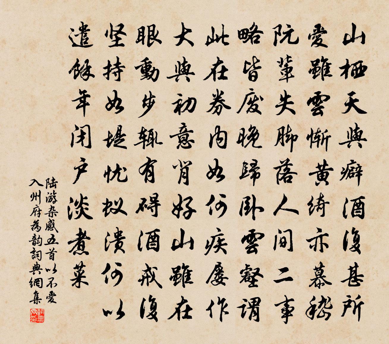 陸游雜感五首以不愛入州府為韻書法欣賞