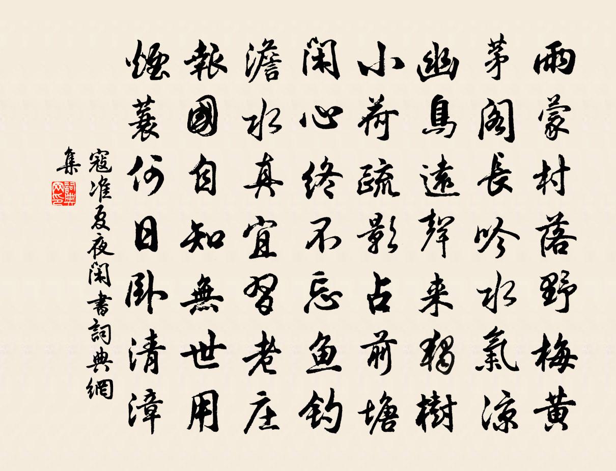雨蒙村落野梅黃,茅閣長吟水氣涼。幽鳥遠聲來獨樹,小荷疏影占前塘。
