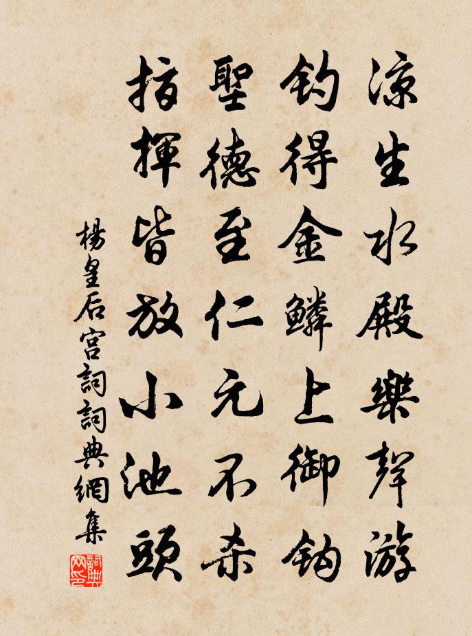 詩詞名句歷史字典書法欣賞書法字典國語詞典說文解字康熙字典古漢語字典標 題 作 者 詩 句 宮詞作者:楊皇后 朝代:宋代宮詞原文涼生水殿樂聲游,釣得金鱗上御鉤。聖德至仁元不殺,指揮皆放小池頭。詩詞問答問:宮詞的作者是誰?答:楊皇后問:宮詞寫於哪個朝代?答:宋代楊皇后宮詞書法欣賞宮詞書法作品詩詞推薦直中書省詩謝朓〔南北朝〕紫殿肅陰陰。彤庭赫弘敞。風動萬年枝。日華承露掌。玲瓏結綺錢。深沈映朱網。紅藥當階翻。蒼苔依砌上。茲言避暑入古寺鄭思肖〔宋代〕避暑入古寺,暫爾遣騷屑。心靜涼於秋,倏然適清悅。彼哉誰氏子,對弈氣爭傑。惜其二低手,彼此蔑奇著。帝觀哭譚戶錄二首劉克莊〔宋代〕胸次有千年,囊中乏一錢。客來臨旅殯,官為雇歸船。通德梳新髻,童烏拾舊編。傷心鄰巷裡,廢宅鎖塞煙。東陽郡齋中詣南山招韋十(一作東陽郡齋書事)錢起〔唐代〕霽來海半山,隱映城上起。中峰落照時,殘雪翠微里。同心久為別,孤興那對此。良會何遲遲,清揚瞻則邇。漁家陸游〔宋代〕江上漁家水蘸扉,閒雲片片傍苔磯。釣收鷺下虛舟立,橋斷僧尋別徑歸。海近岡巒多迤邐,天寒霧雨正霏微。羊裘君用致紅梅雲不開數年矣方岳〔宋代〕山家已作枯槎看,帶雪移來卻自春。一夜揣摩花意思,寧將醉面向村人。探禹穴感懷趙興緡〔宋代〕神禹宏疏鑿,流傳山海經。披覽未為足,時騎李白鯨。是日輕飆起,翛然天籟鳴。孤峰帶江浙,突兀地軸橫。振交謝少微兄惠牡丹樓鑰〔宋代〕簫鼓聲中醉九旬,落紅萬點正愁人。眼明忽見傾城色,更向尊前作好春。留別王元治師中譚純益三首胡寅〔宋代〕幸不當官也去思,春江風日正舒遲。少留畫鷁呼桃葉,卷盡紅螺看柘枝。三爵勸酬三益友,四並除掃四愁詩。渭城海棠姜特立〔宋代〕絢麗繁霞彩,熒煌瑞錦堆。夜深疑睡去,日暖怕慵來。次劉坦見和胡寅〔宋代〕君以苛留我罪遷,鄉情相值且忘年。歸心莫共孤雲遠,定性當如皓月圓。沂水舞雩方有詠,曹溪尋派即無緣。向來車載板二首王安石〔宋代〕荒哉我中園,珍果所不產。朝暮惟有鳥,自呼車載板。楚人聞此聲,莫有笑而莞。而我更歌呼,與之相往返。視遇山居十二首淳藏王〔宋代〕幽嚴靜坐來馴虎,古潤經行自狎鷗。不時忘機能絕念,大都投老得心休。踏莎行張孝祥〔宋代〕楊柳東風,海棠春雨。清愁冉冉無來處。曲徑驚飛峽蝶叢,回塘凍濕鴛鴦侶。舞徹霓裳,歌殘金縷。蘼蕪白芷愁煙建隆寺北池亭宋庠〔宋代〕寶剎開初地,滄浪繞故城。芰蓮俱野色,鳧鴇各秋聲。岸闊煙無著,窗虛日易明。歸驂誰訝久,正為濯塵纓。莊鵾辭海鄭獬〔宋代〕歸路漸驚紅葉老,舊山已落白雲深。莊鵾聊欲辭滄海,越鳥終須憶故林。皇后閣端午貼子詞五首真德秀〔宋代〕瑤池十丈藕花香,清賞尤便水殿涼。聞說內家多樂事,前星親自捧霞觴。次程平叔韻二首陳造〔宋代〕詩情對景可勝長,酒與鵝兒鬧嫩黃。忠貫主人真好事,肯來訾省沈東陽。過酒泉,憶杜陵別業岑參〔唐代〕昨夜宿祁連,今朝過酒泉。黃沙西際海,白草北連天。愁里難消日,歸期尚隔年。陽關萬里夢,知處杜陵田。請佛閣晚望,雪山數十峰如爛銀,晁耀暑光中范成大〔宋代〕壘塊蒼然是九州,大千起滅更悠悠。雪興正照天西角,日影長浮雨上頭。峰頂何曾知六月,塵間想已別三秋。佛毫名句推薦澄江平少岸,幽樹晚多花。杜甫《水檻遣心二首》 又疑瑤台鏡,飛在青雲端。李白《古朗月行》 竹塢無塵水檻清,相思迢遞隔重城。李商隱《宿駱氏亭寄懷崔雍崔袞》 且看欲盡花經眼,莫厭傷多酒入唇。杜甫《曲江二首》 夜中不能寐,起坐彈鳴琴。阮籍《詠懷八十二首·其一》 何當共剪西窗燭,卻話巴山夜雨時。李商隱《夜雨寄北》 綺席象床寒玉枕,美人何處醉黃花。汪元量《望江南·幽州九日》 不是誠齋無月,隔一林修竹。楊萬里《好事近·七月十三日夜登萬花川谷望月作》 明月樓高休獨倚。酒入愁腸,化作相思淚。范仲淹《蘇幕遮·懷舊》 一霎荷塘過雨,明朝便是秋聲。項鴻祚《清平樂·池上納涼》